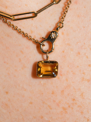 Citrine Triple Cushion Cut Charm in Yellow 14k Gold