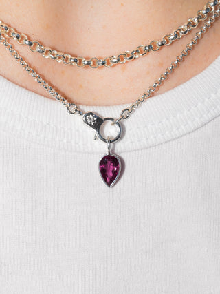 Love Dagger Pink Tourmaline Inverted Pear Cut Charm in Sterling Silver
