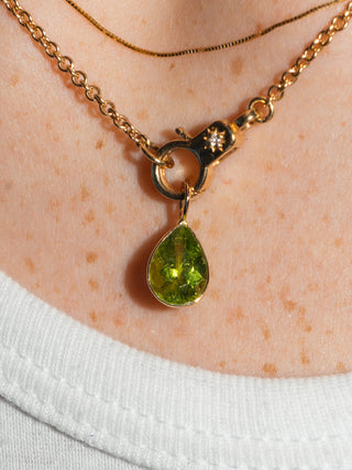 Dewy Green Tourmaline Teardrop Cut Charm in Yellow 14k Gold