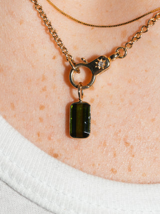 Mossy Mama Green Tourmaline Triple East to West Emerald Cut Charm in Yellow 14k Gold