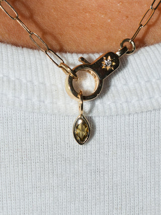 White Topaz Lobby Clasp in Yellow 14k Gold