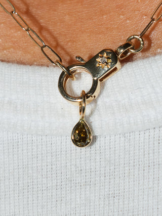 Cantalope Yellow-Green Diamond Teardrop Cut Charm in Yellow 14k Gold