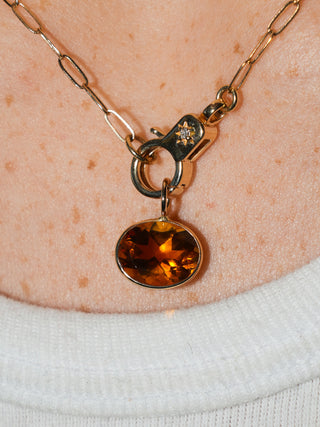 Sunset Brandy Citrine East West Oval Cut Charm in Yellow 14k Gold