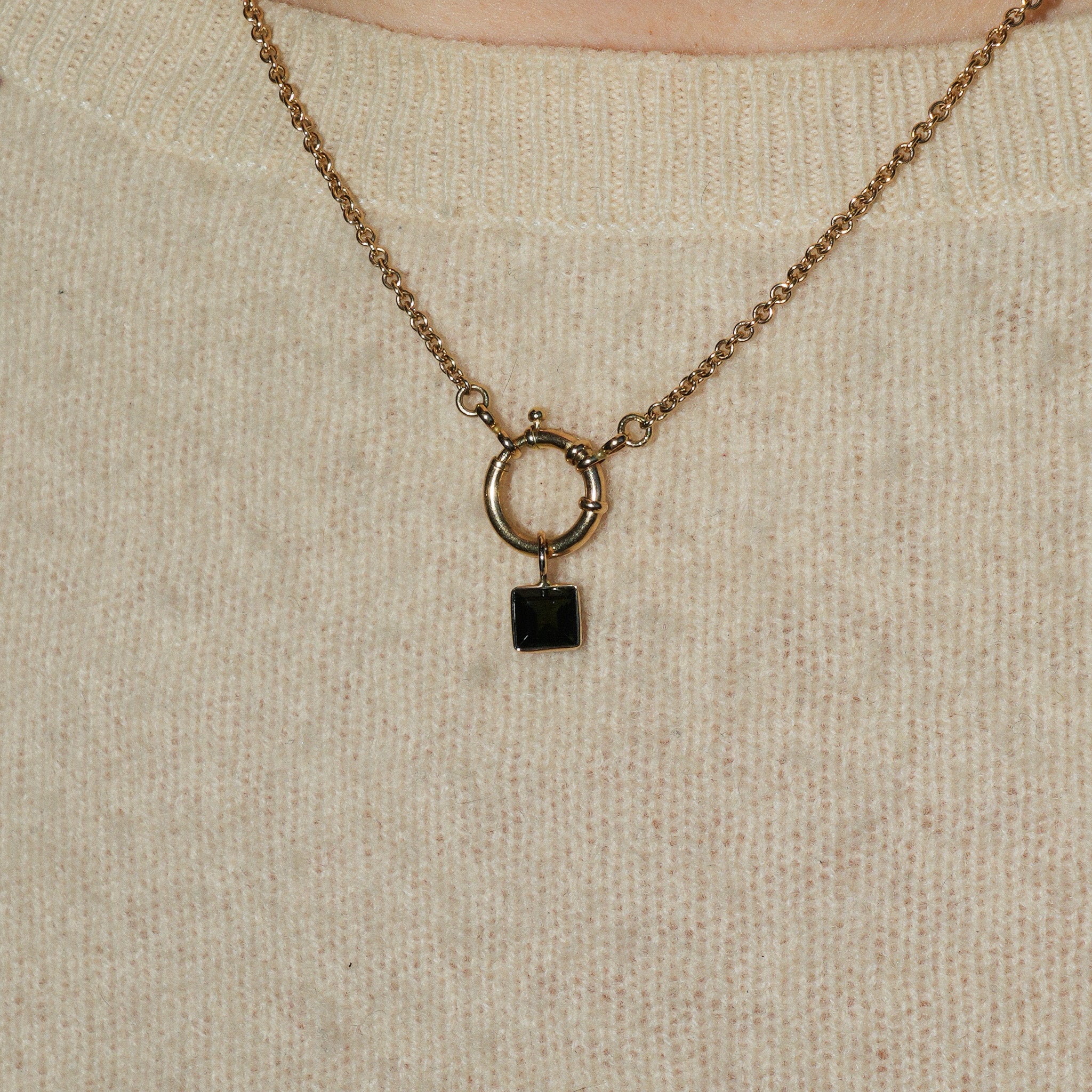 Mountain View Tourmaline Square Cut Charm in 14k Yellow Gold