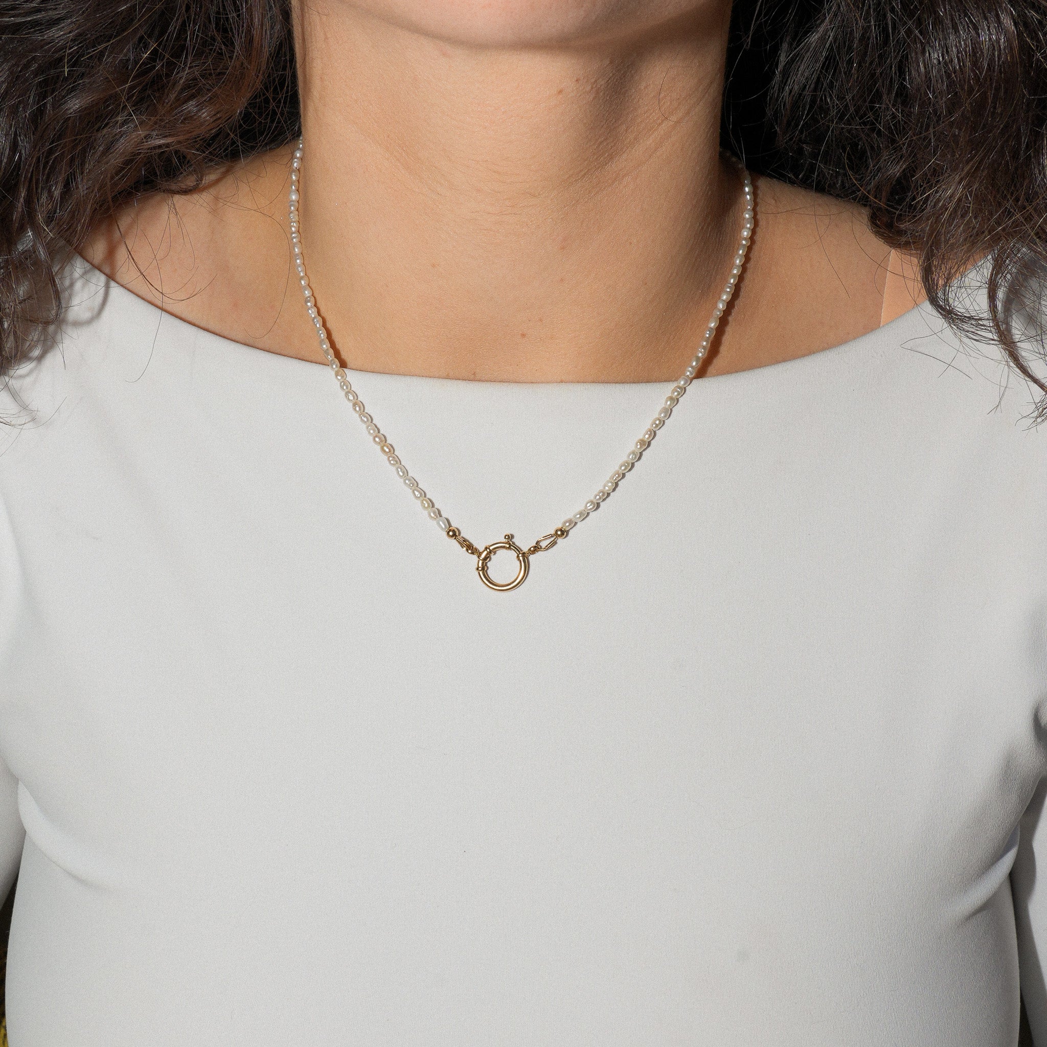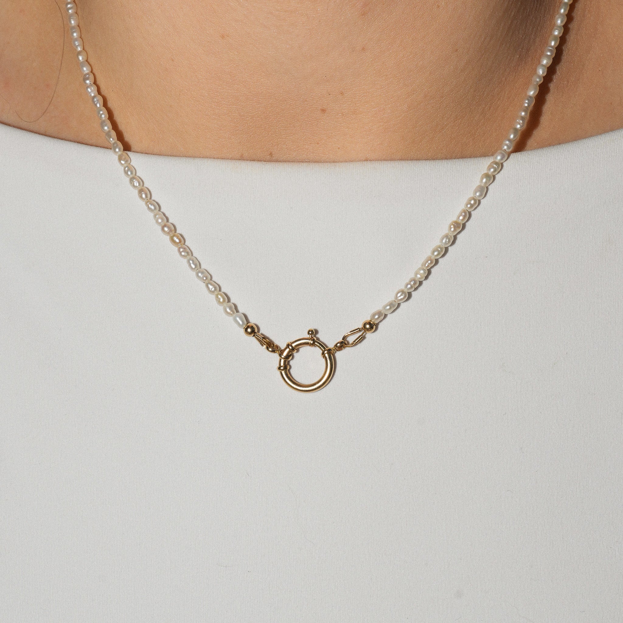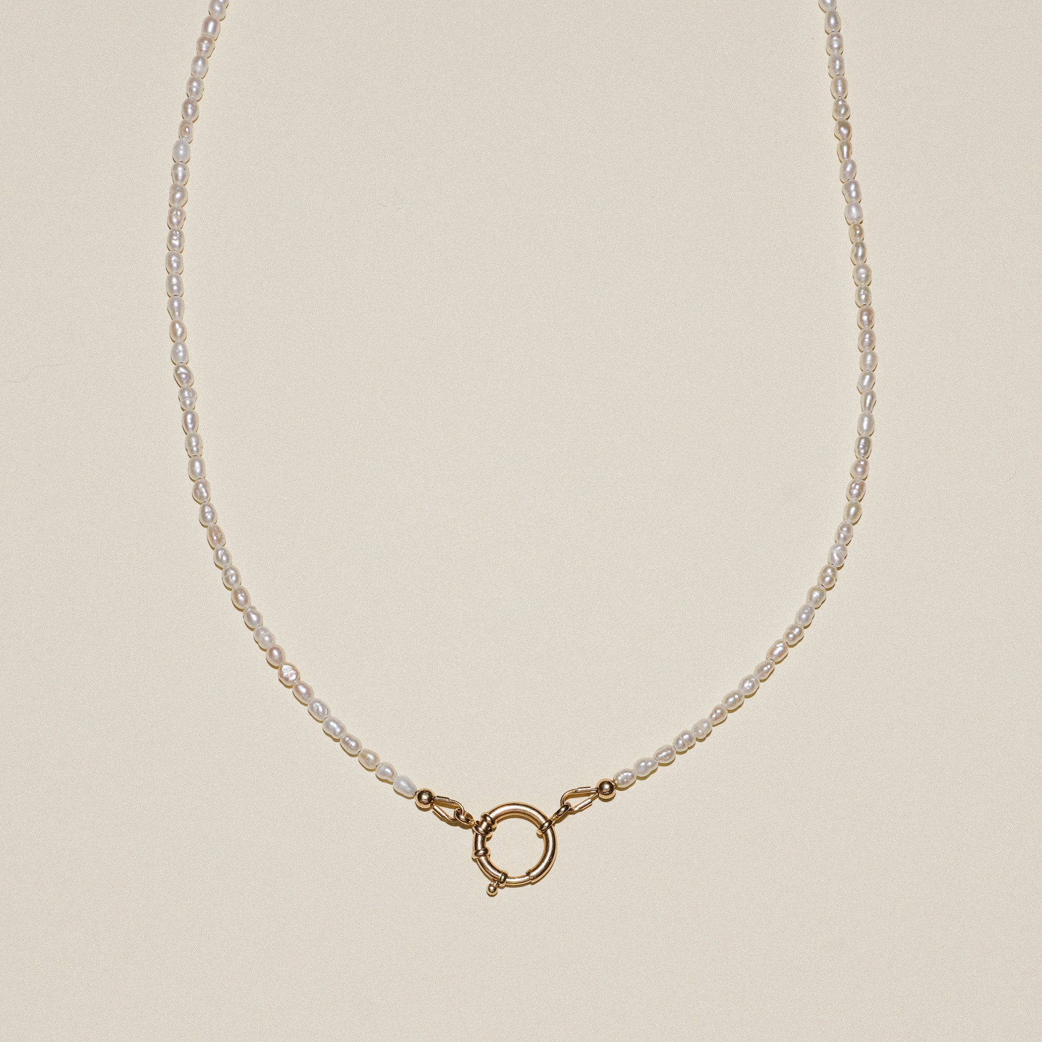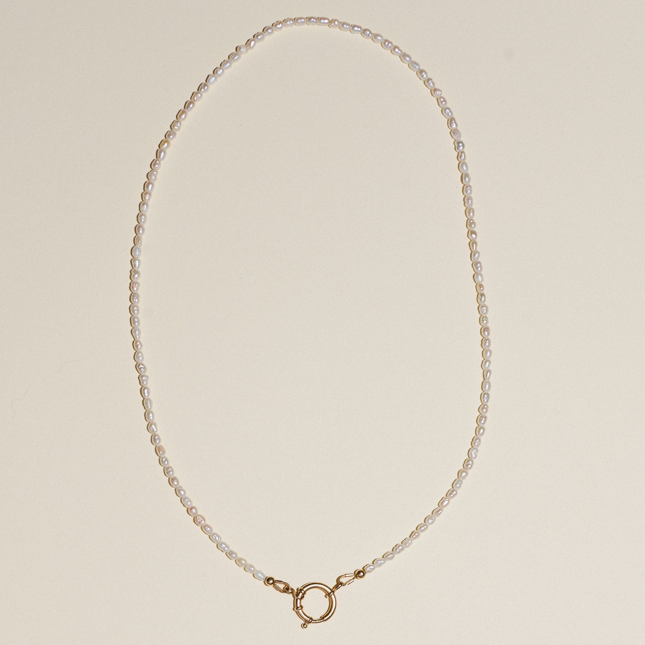 Freshwater pearl necklace finished with 14k yellow gold findings.