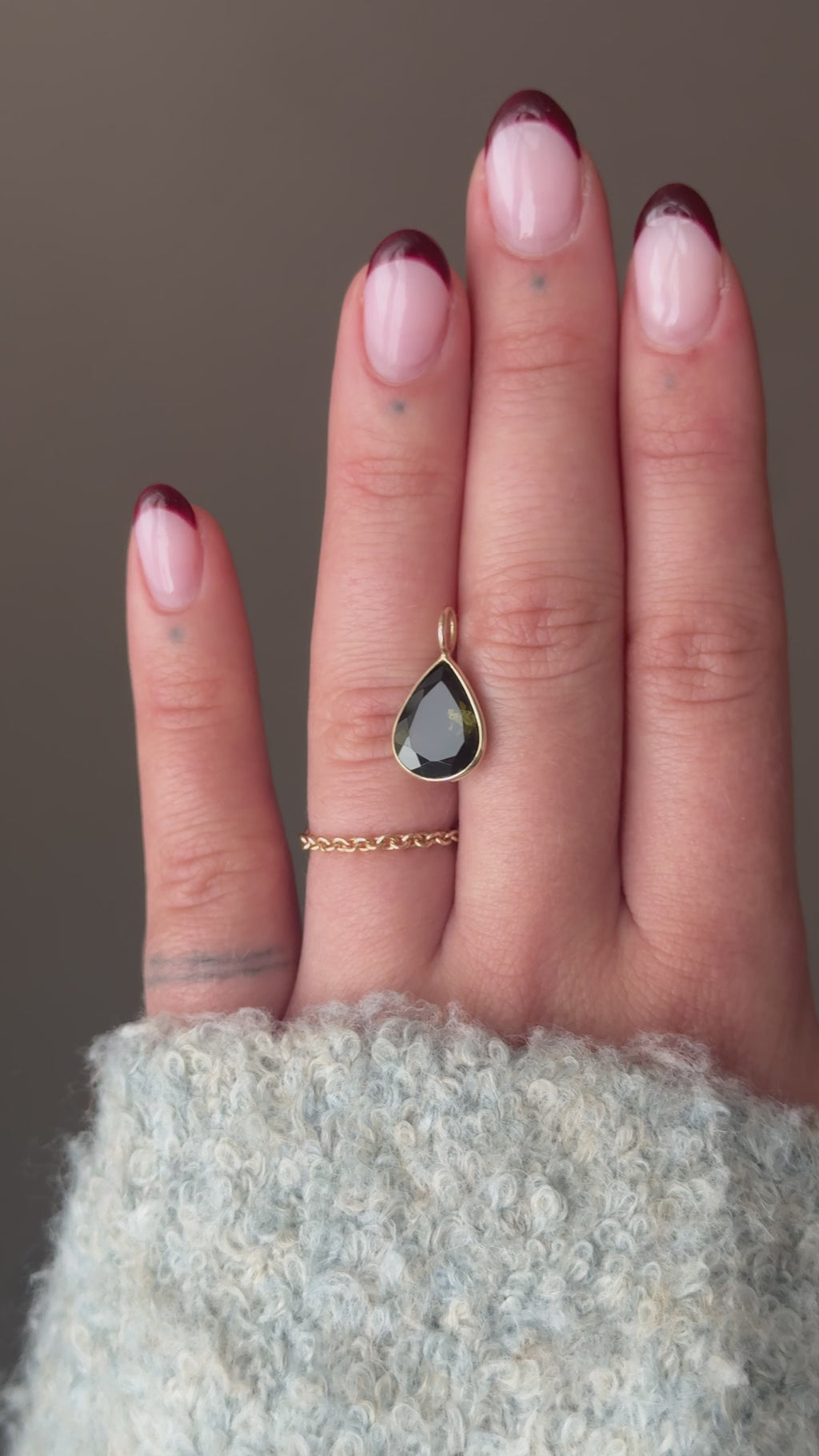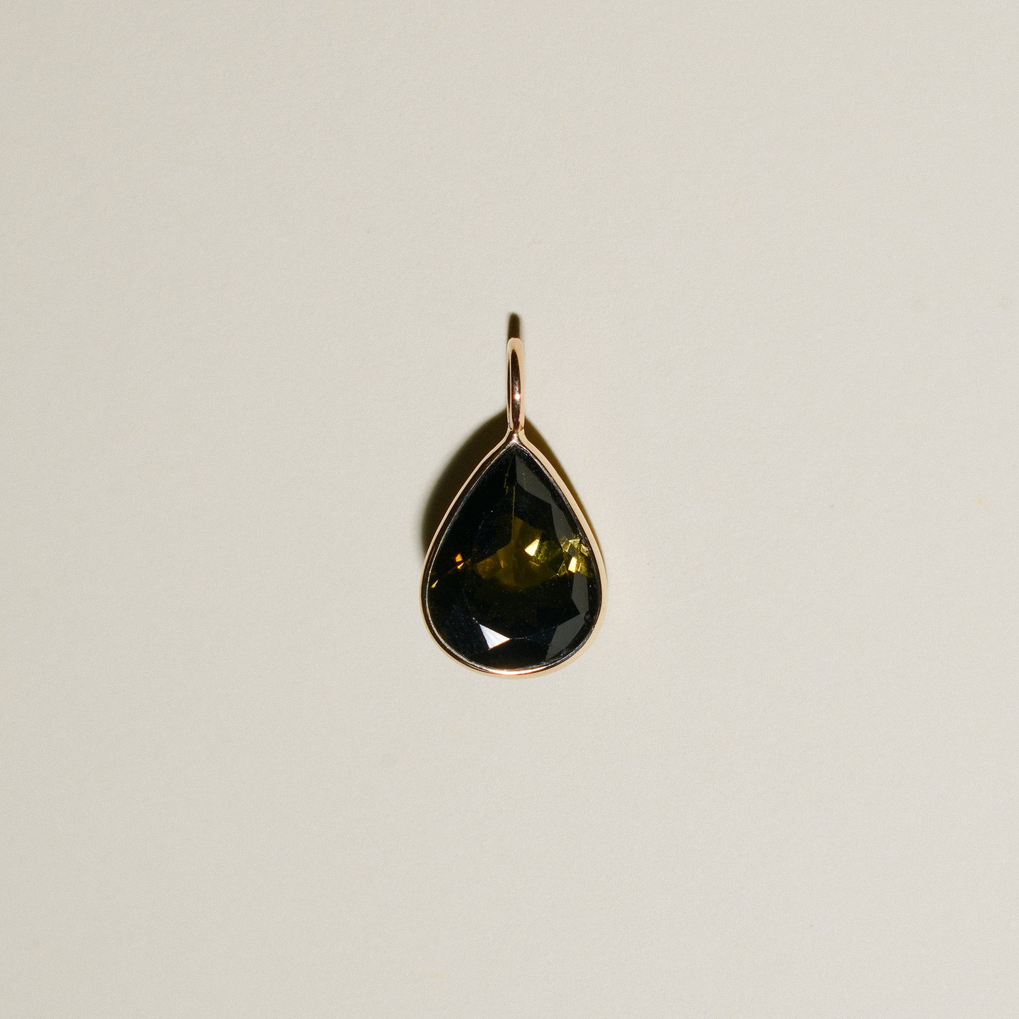 Rosin Tourmaline Pear Cut Charm in 14k Yellow Gold