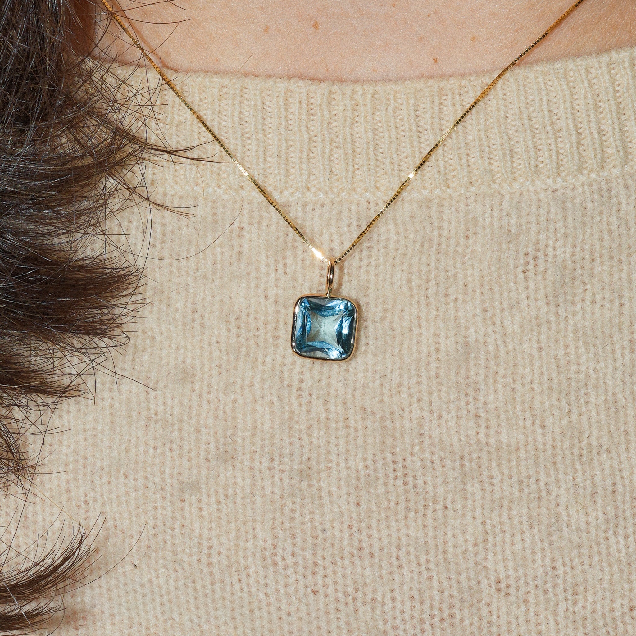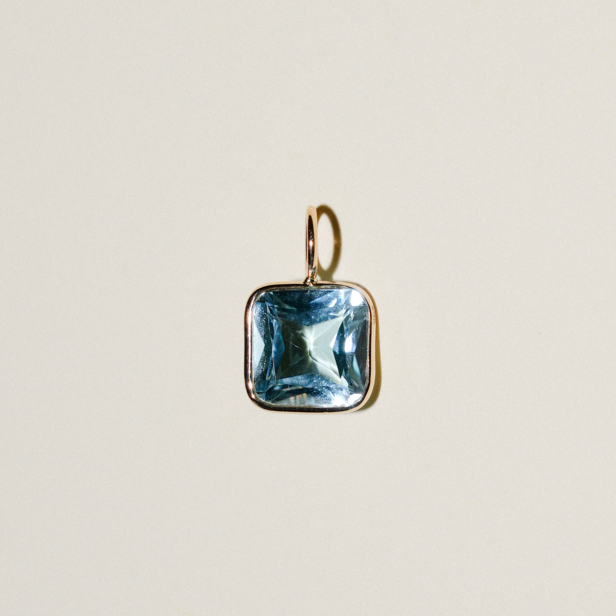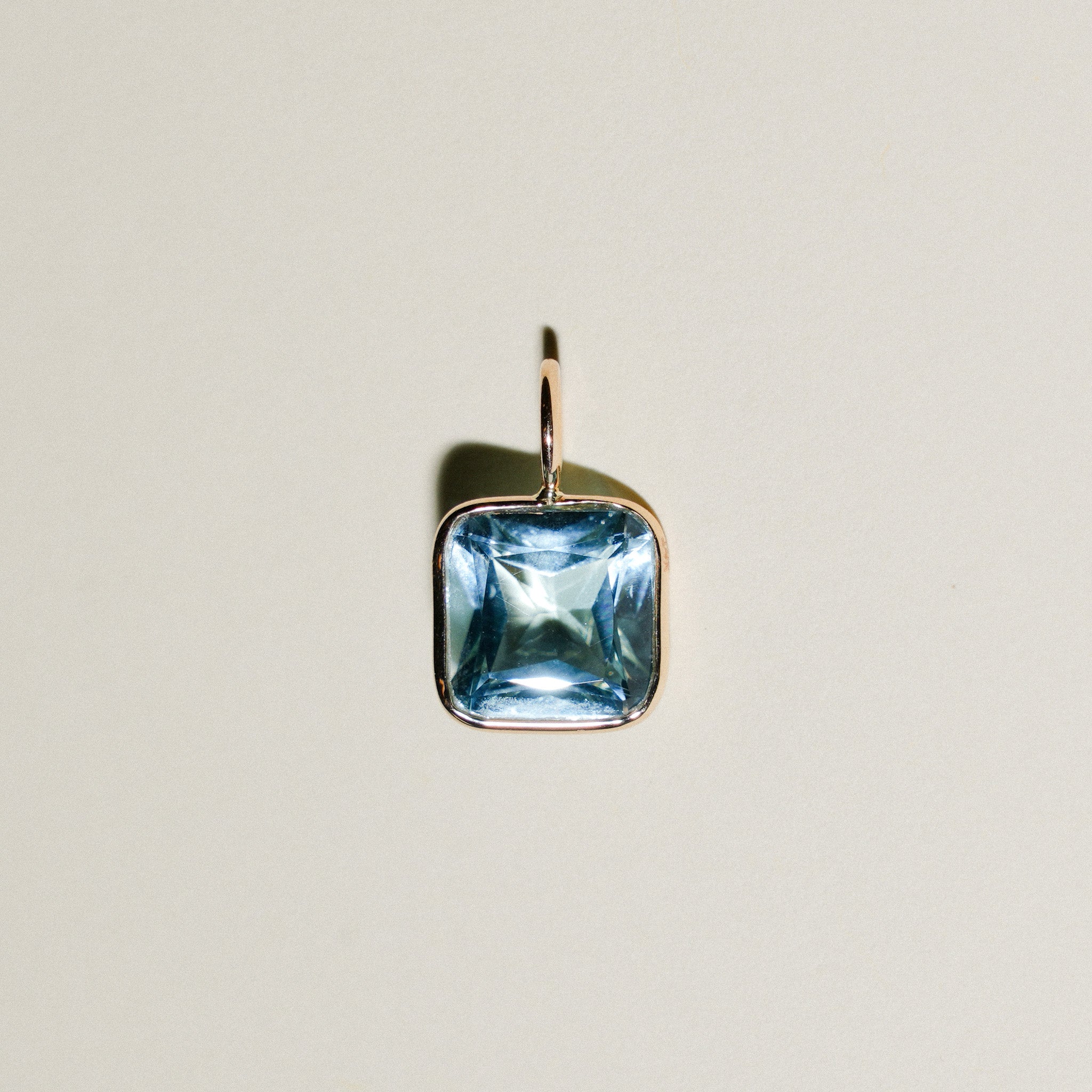 Sky Blue Topaz Square Cut Charm in 14k Yellow Gold