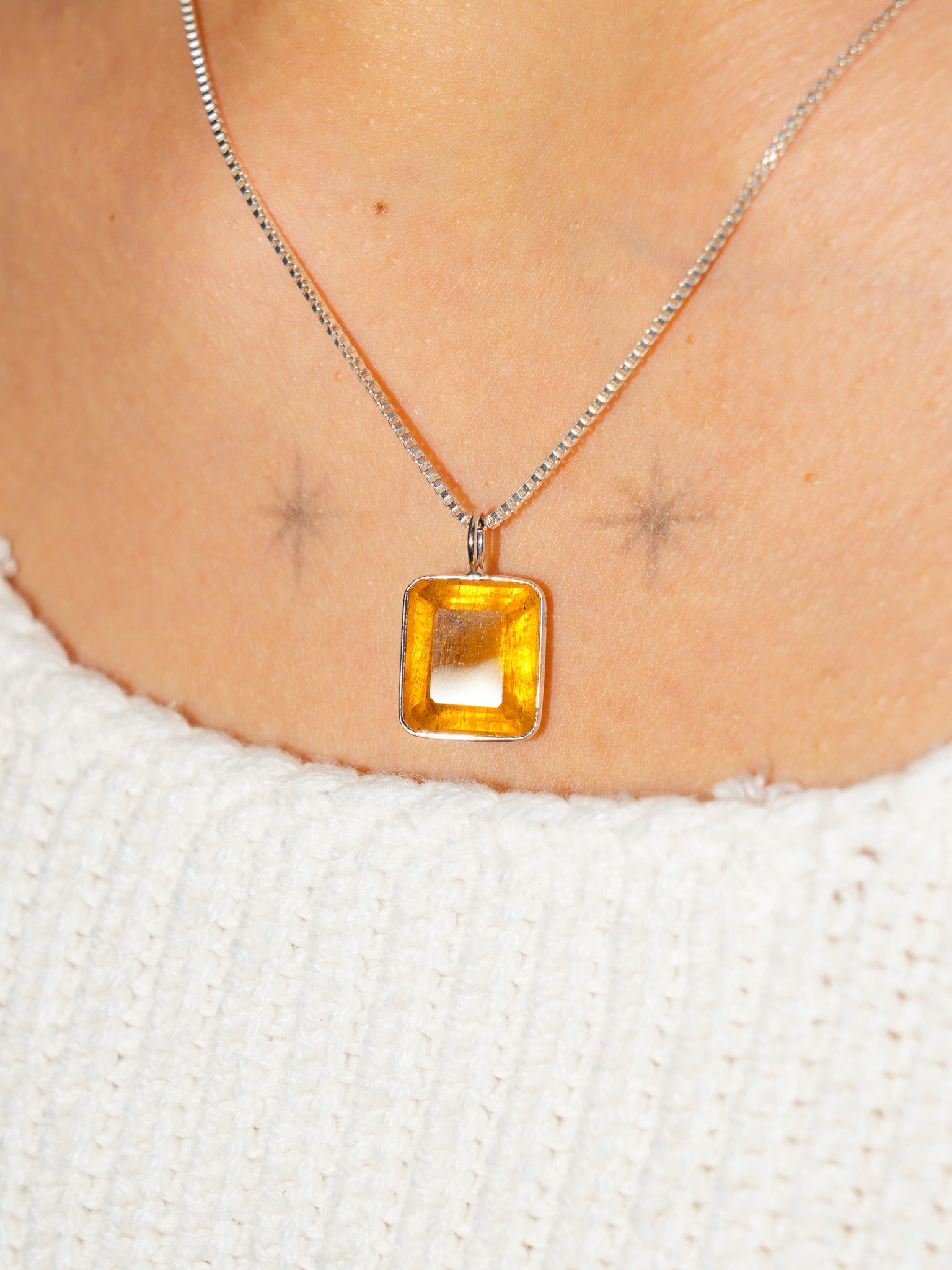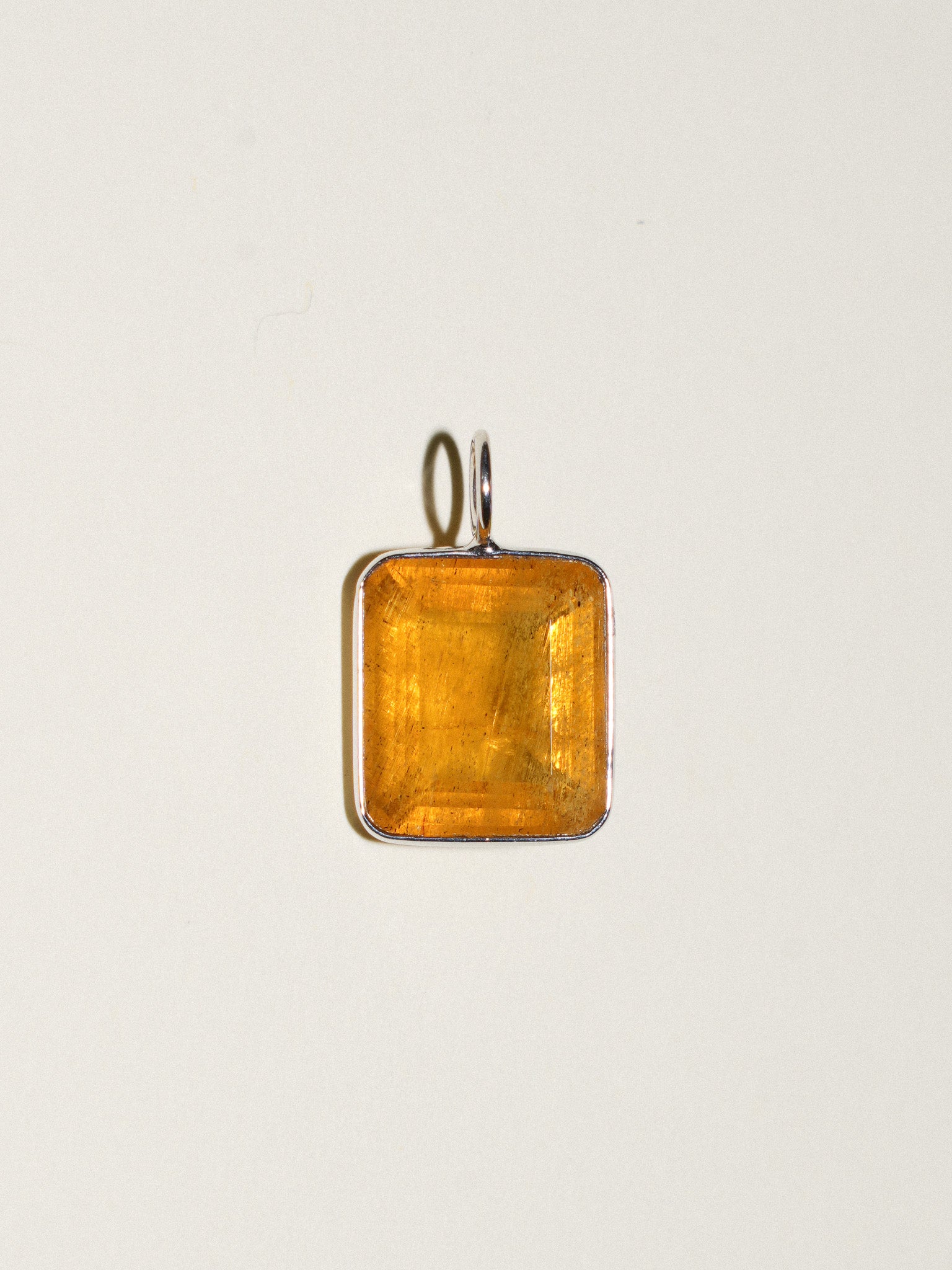 Mystic Bronze Yellow Beryl Emerald Cut Charm in White 14k Gold