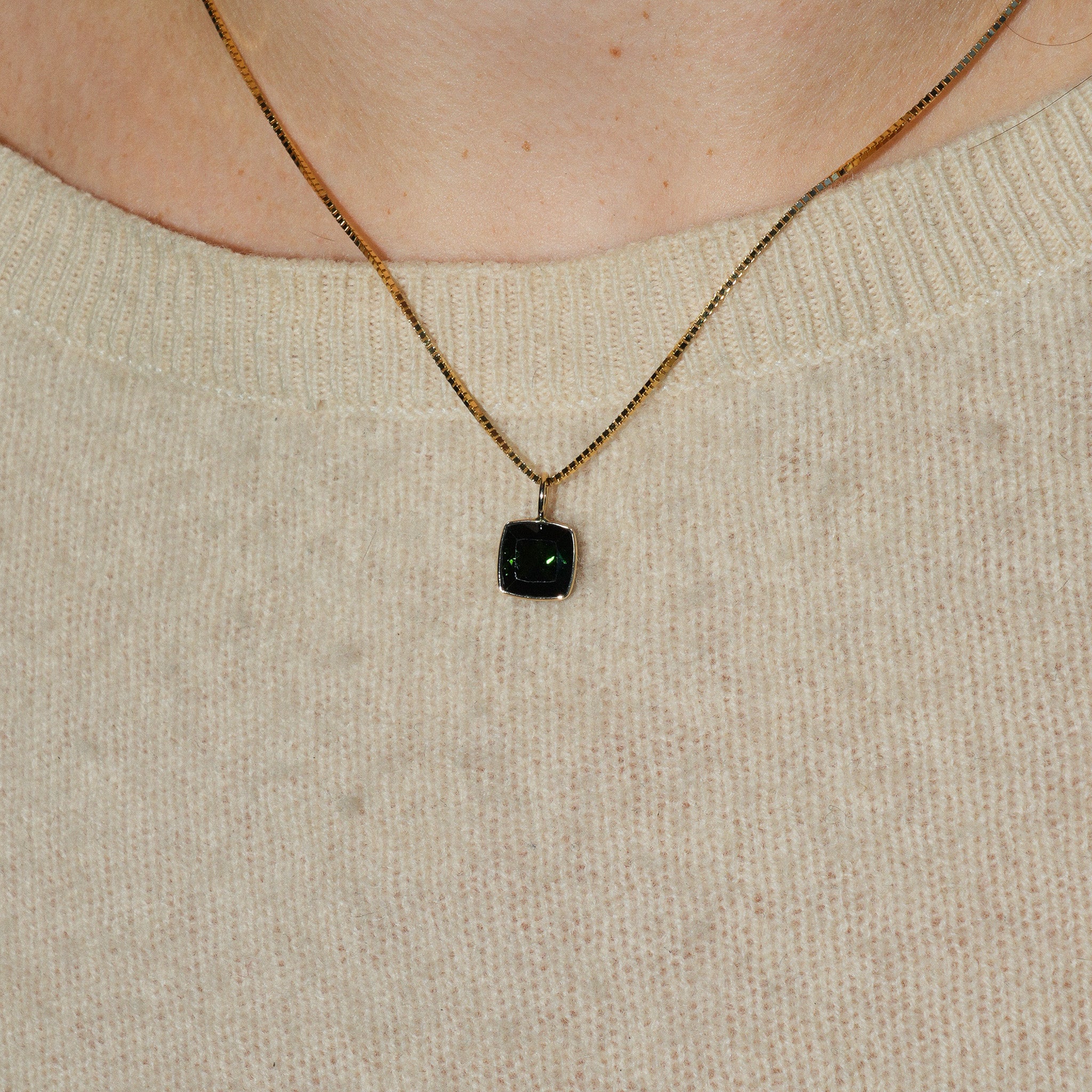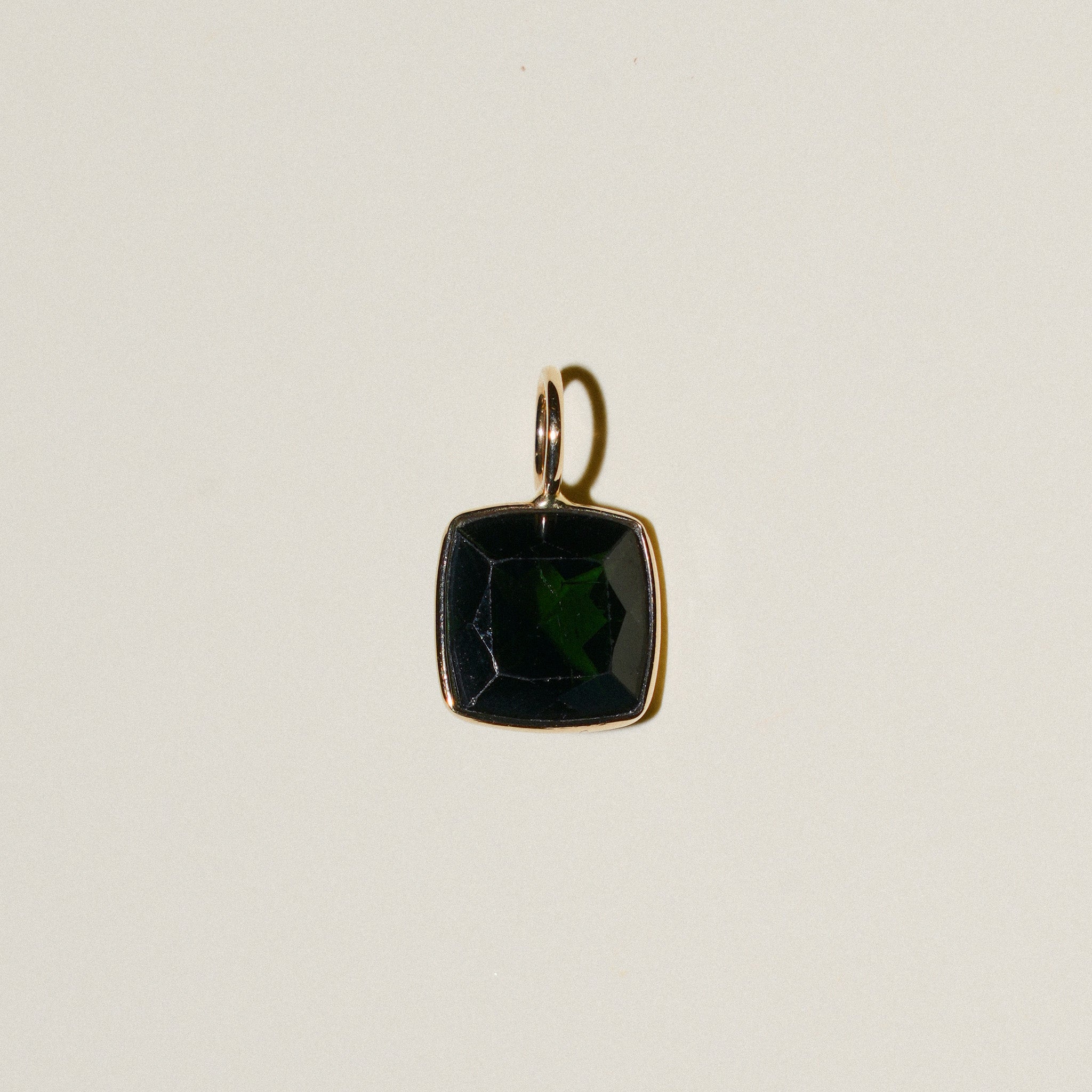 Beauty Black Tourmaline Cushion Cut Charm in 14k Yellow Gold