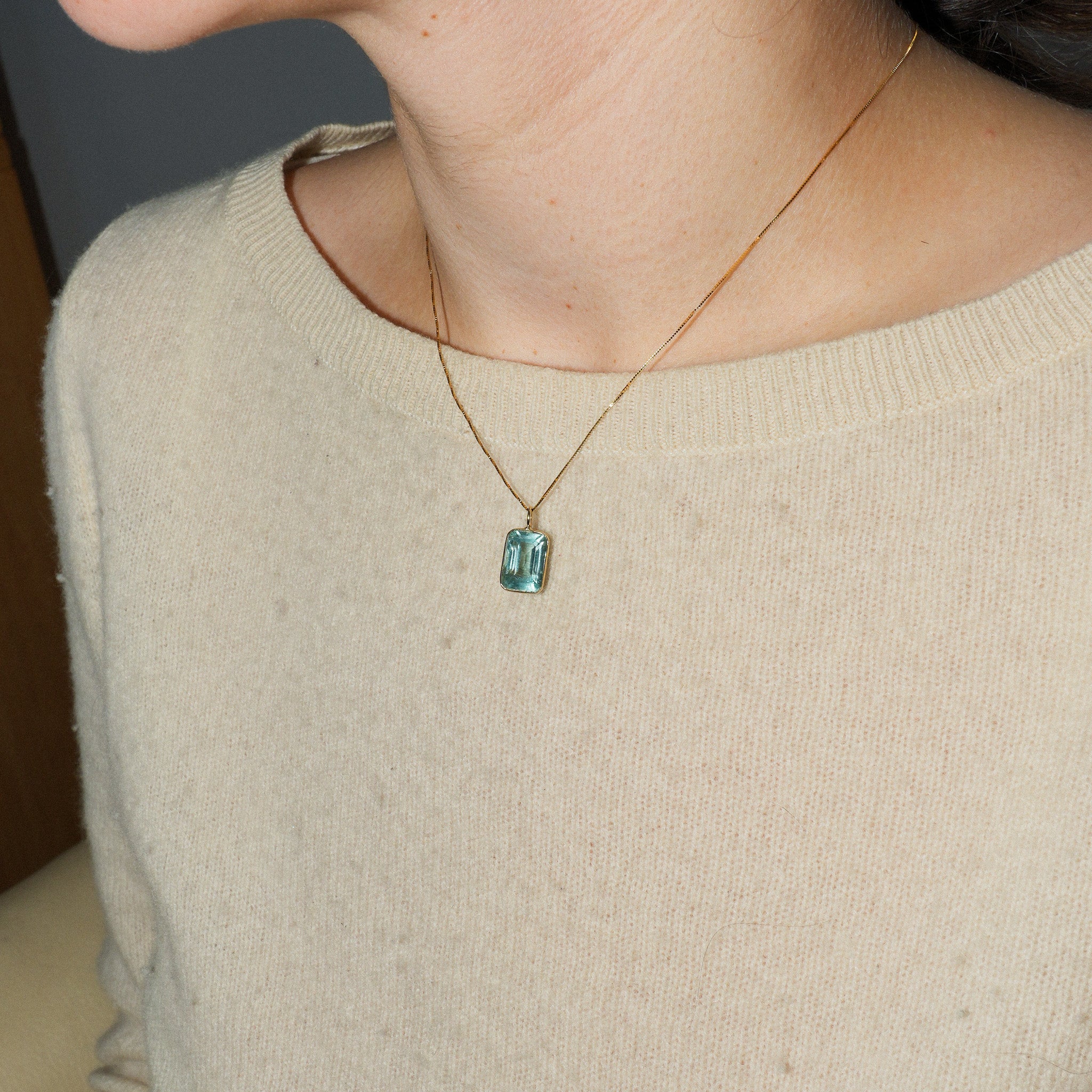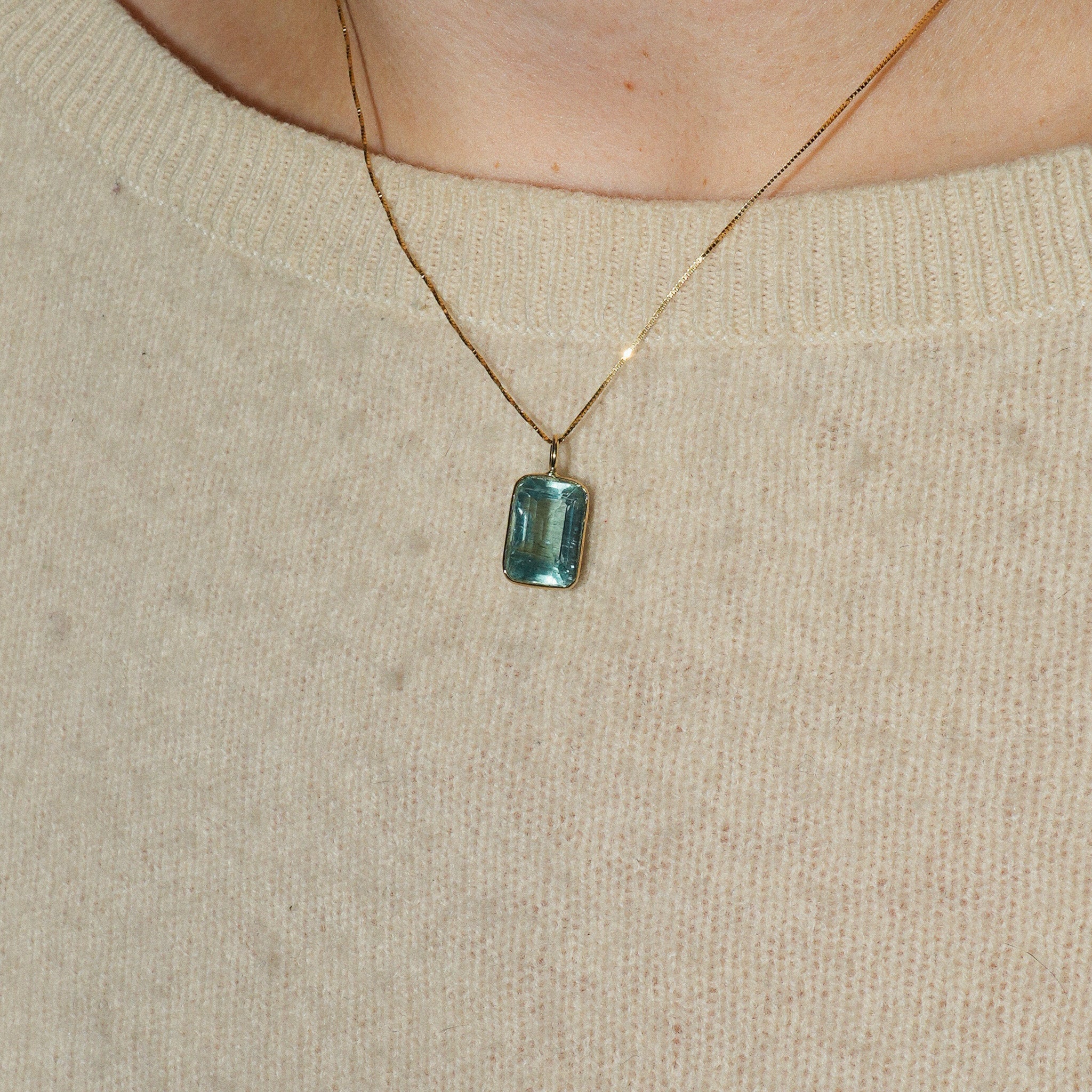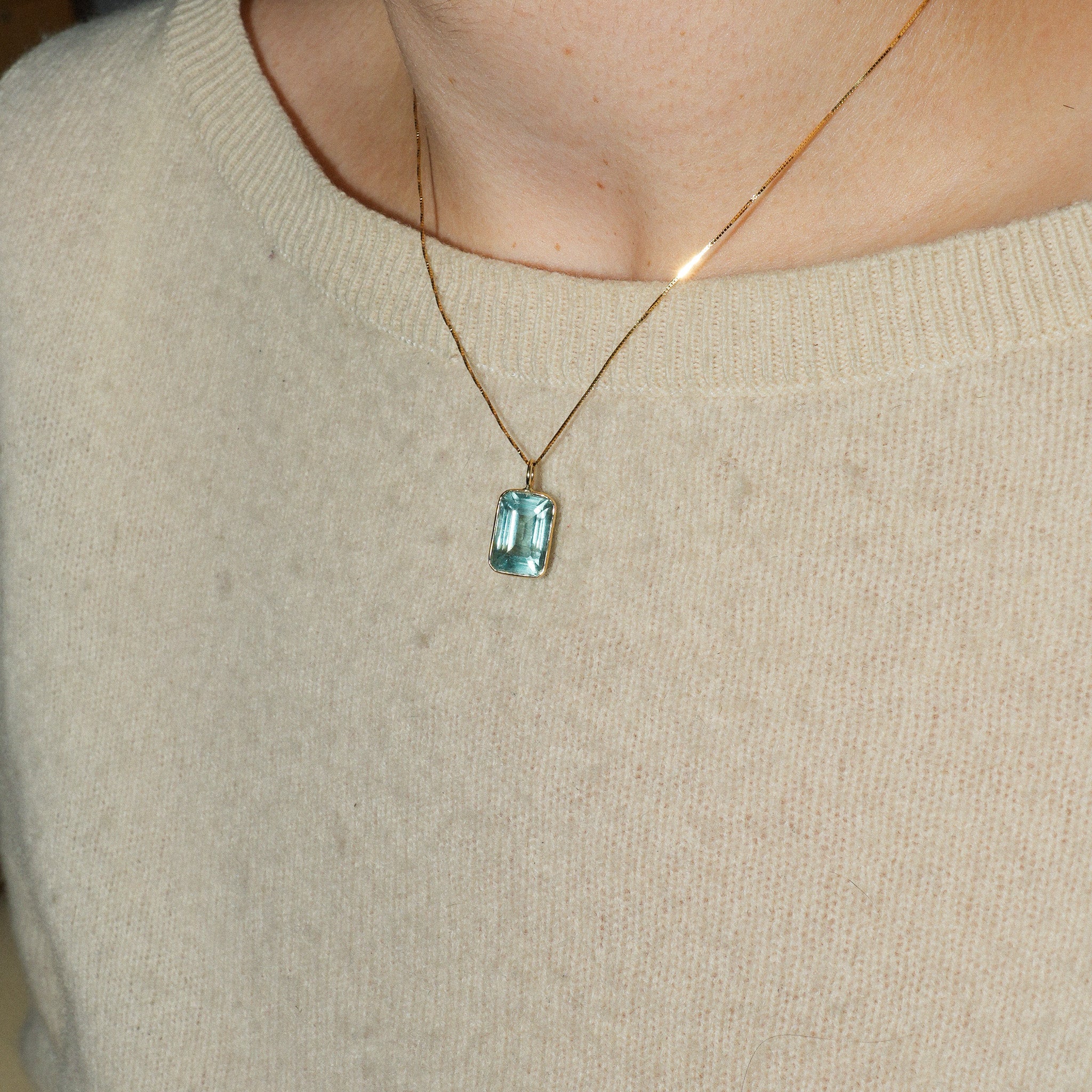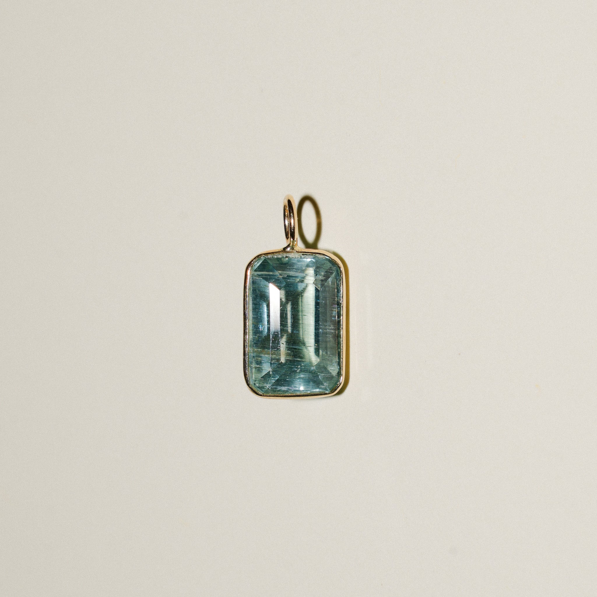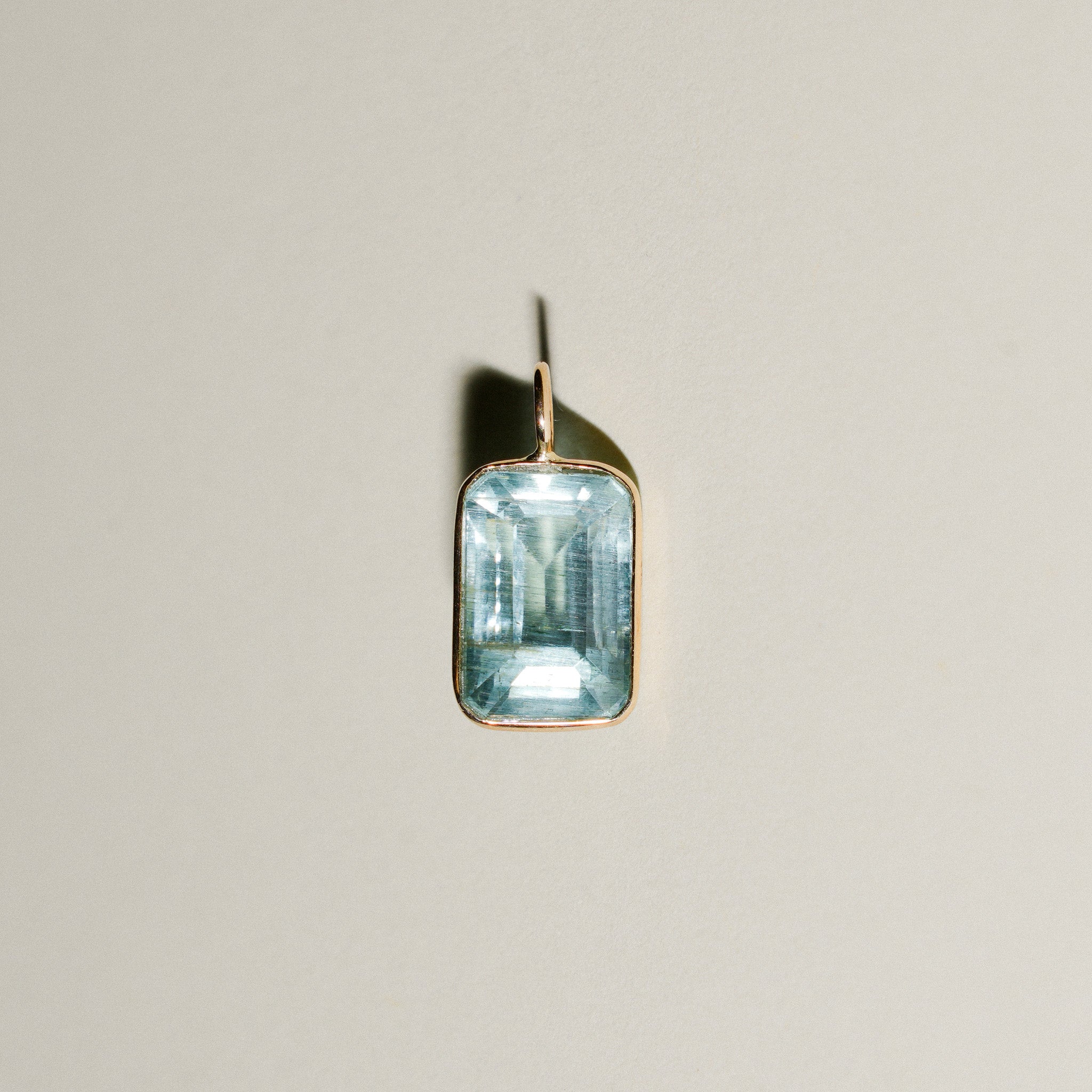 Dewdrop Blue Aquamarine Emerald Cut Charm in 14k Yellow Gold