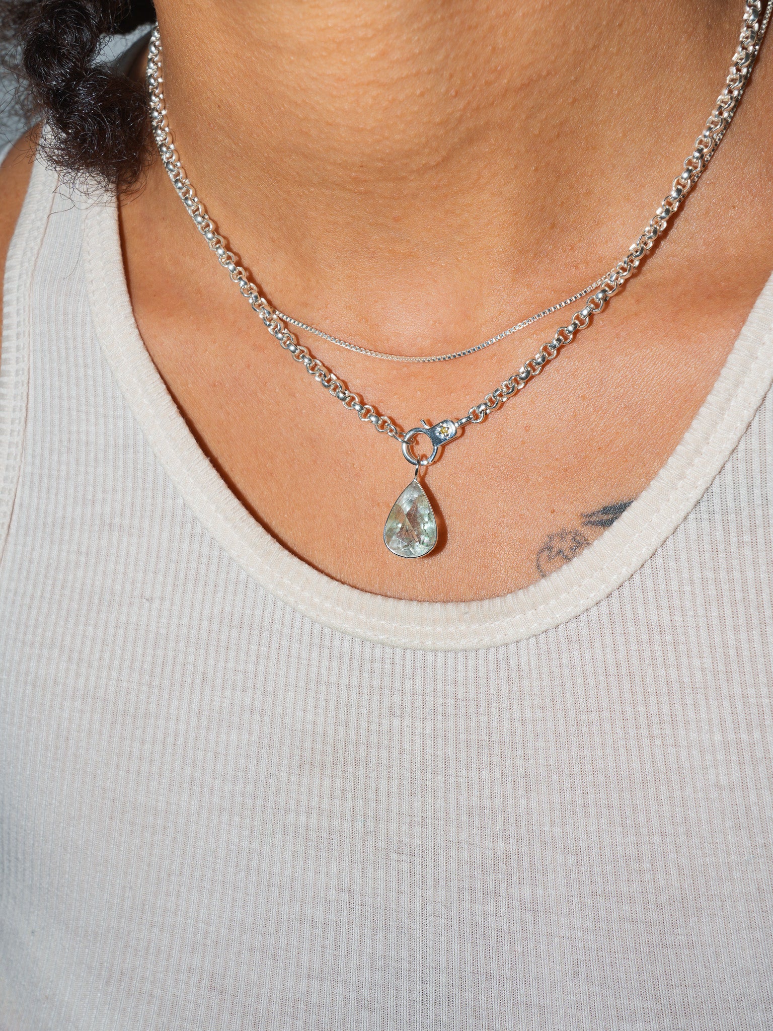 Sailing East Fluorite Teardrop Cut Charm in Sterling Silver