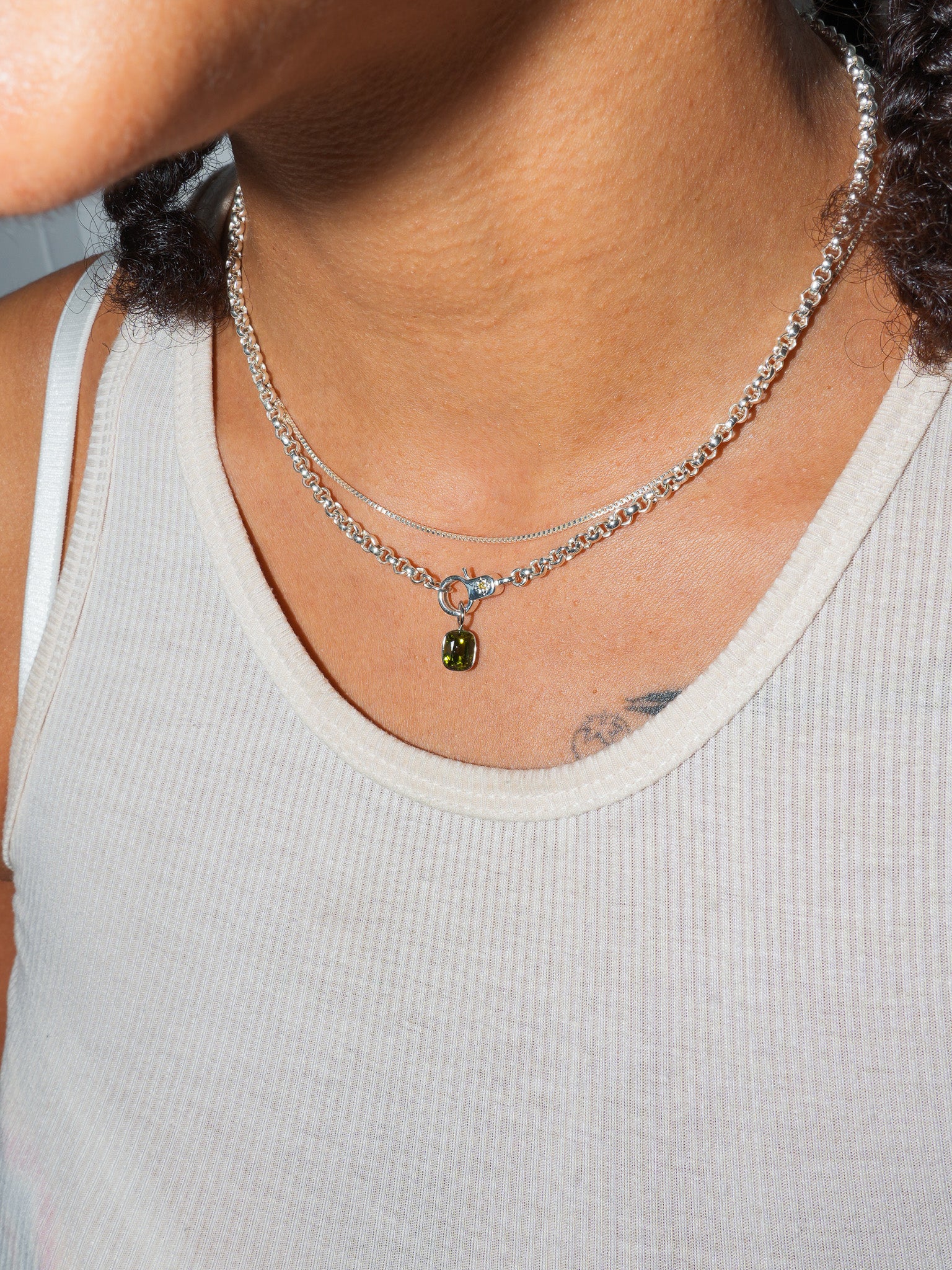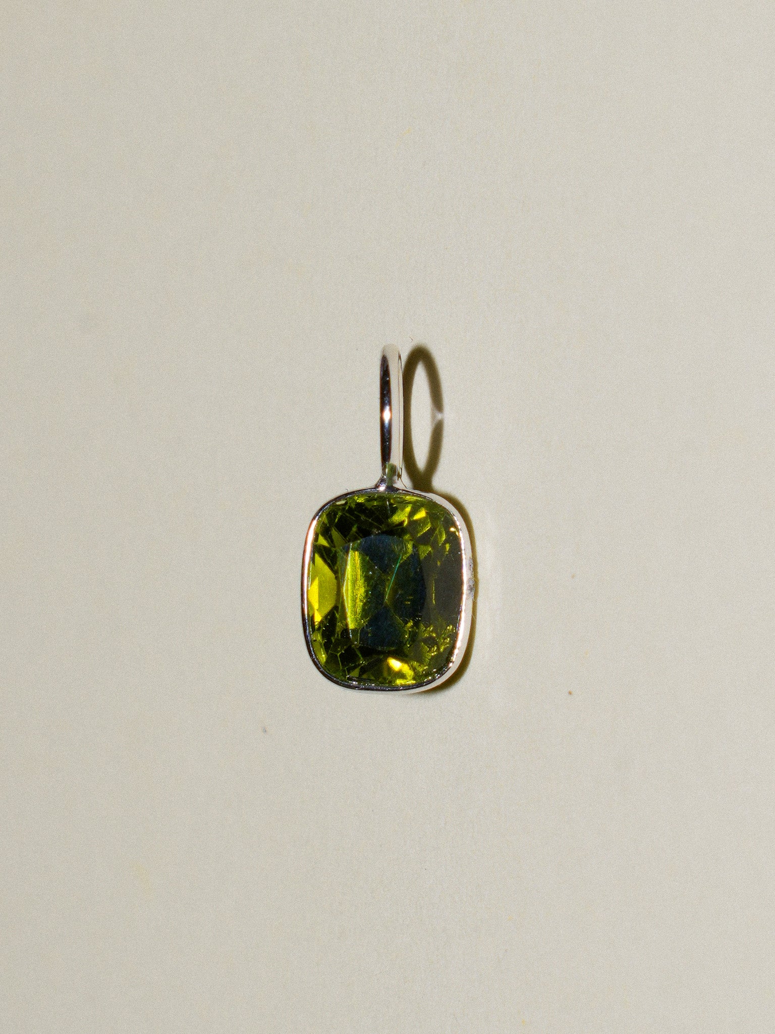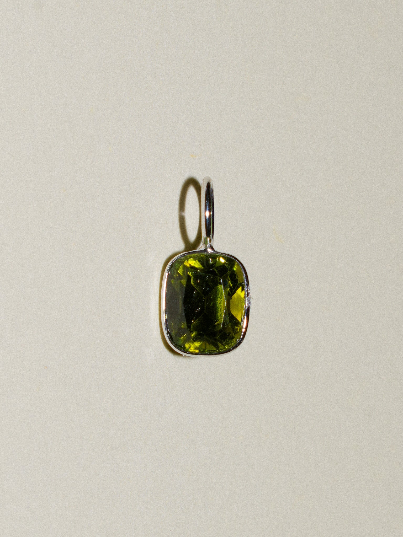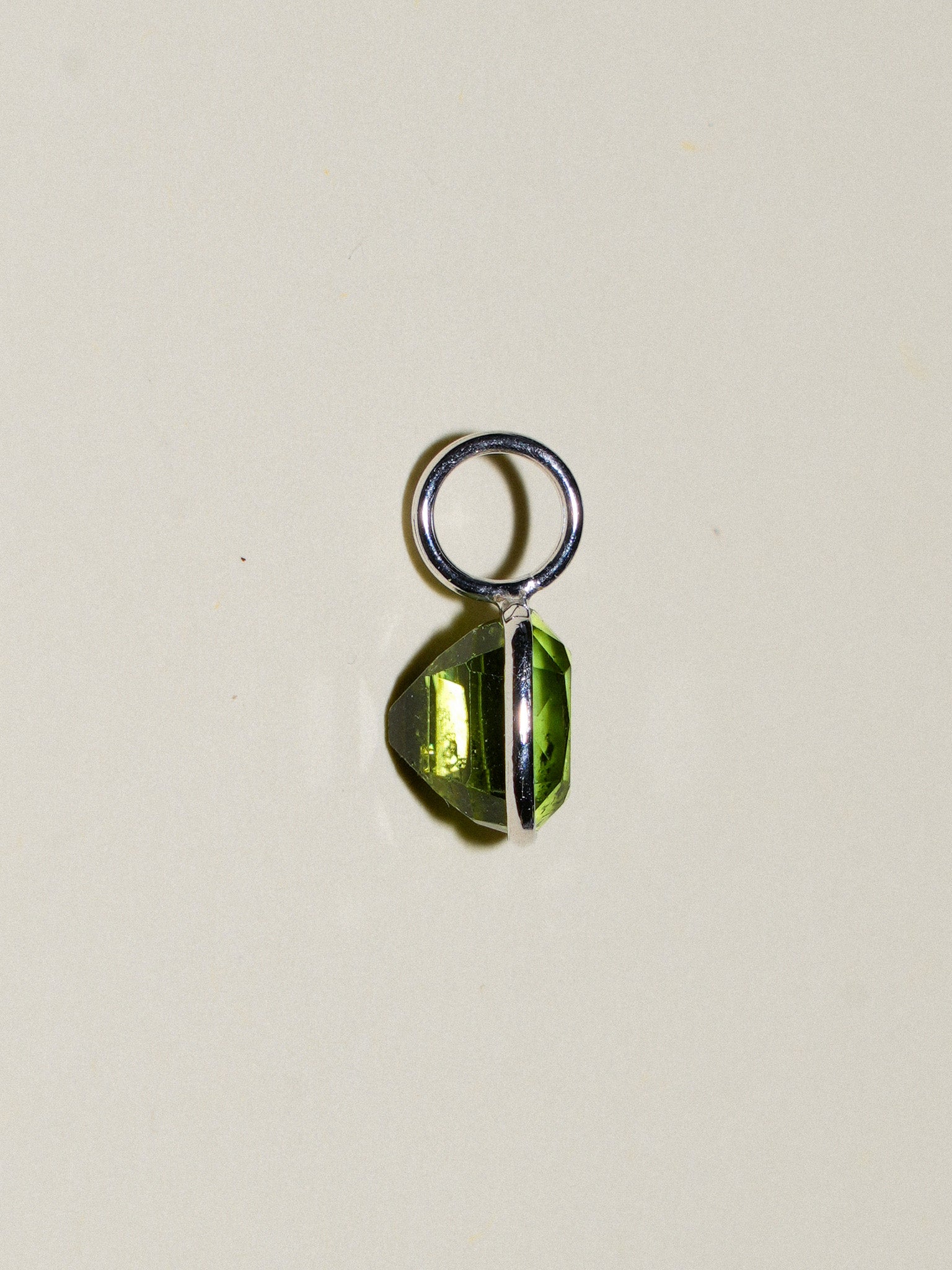 Wintergreen Tourmaline Emerald Cut Charm in White 14k Gold