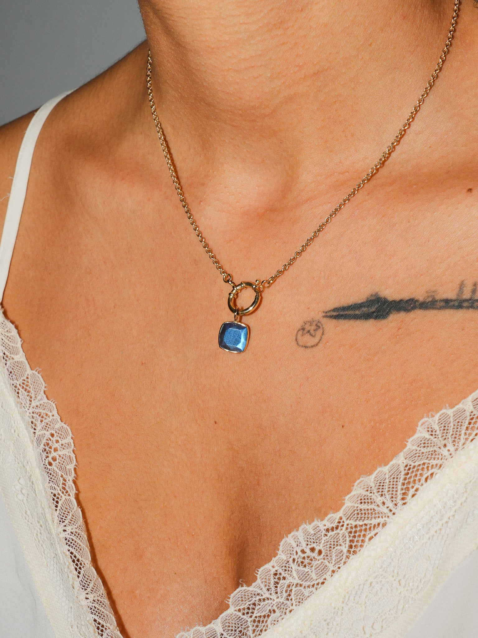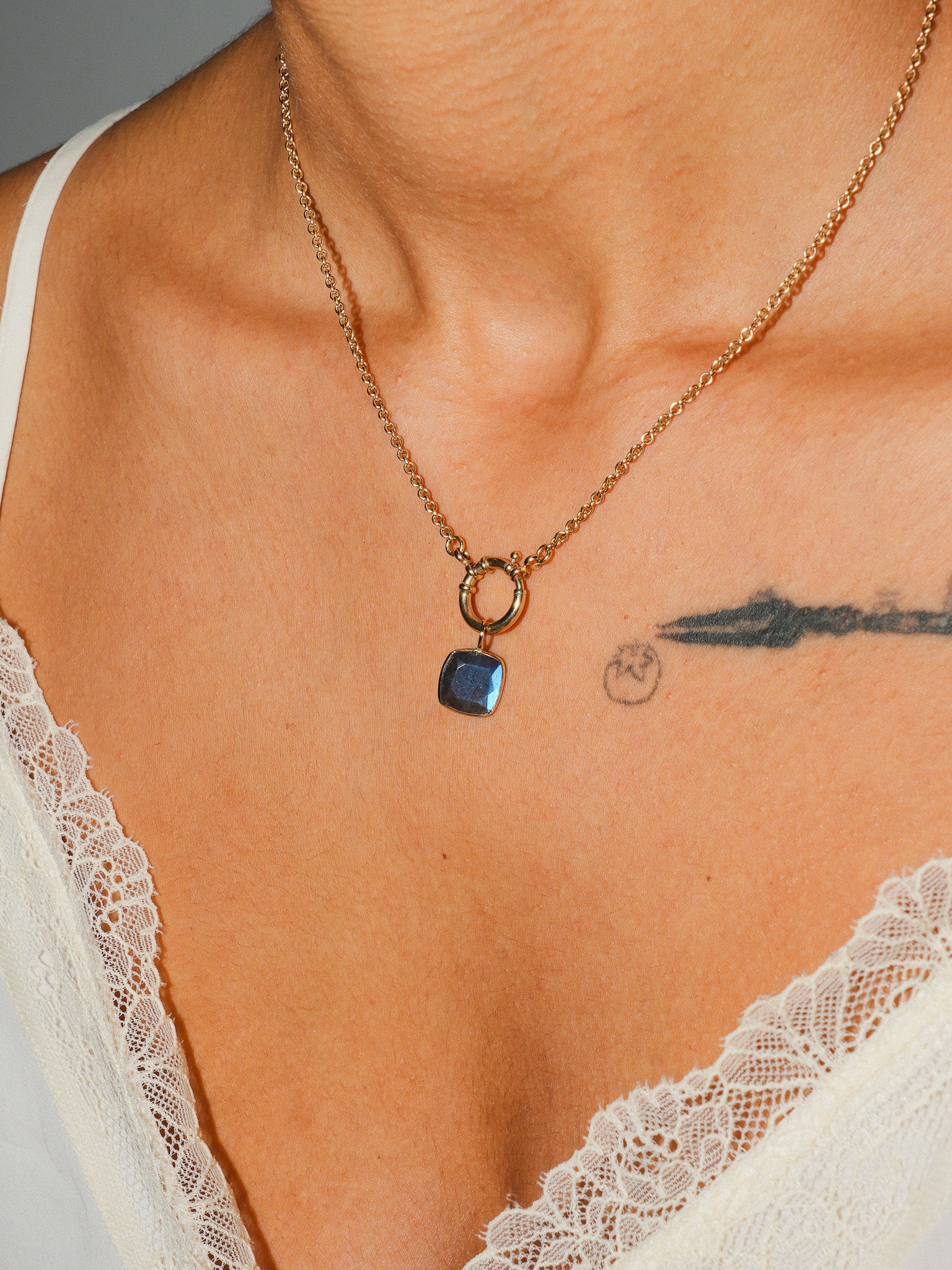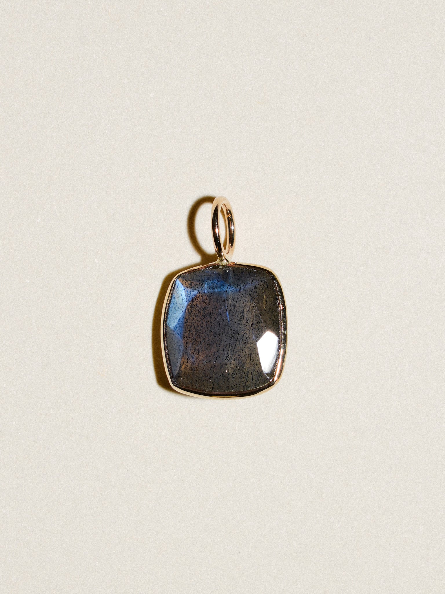 Cosmic Labradorite Cushion Cut Charm in 14k Yellow Gold