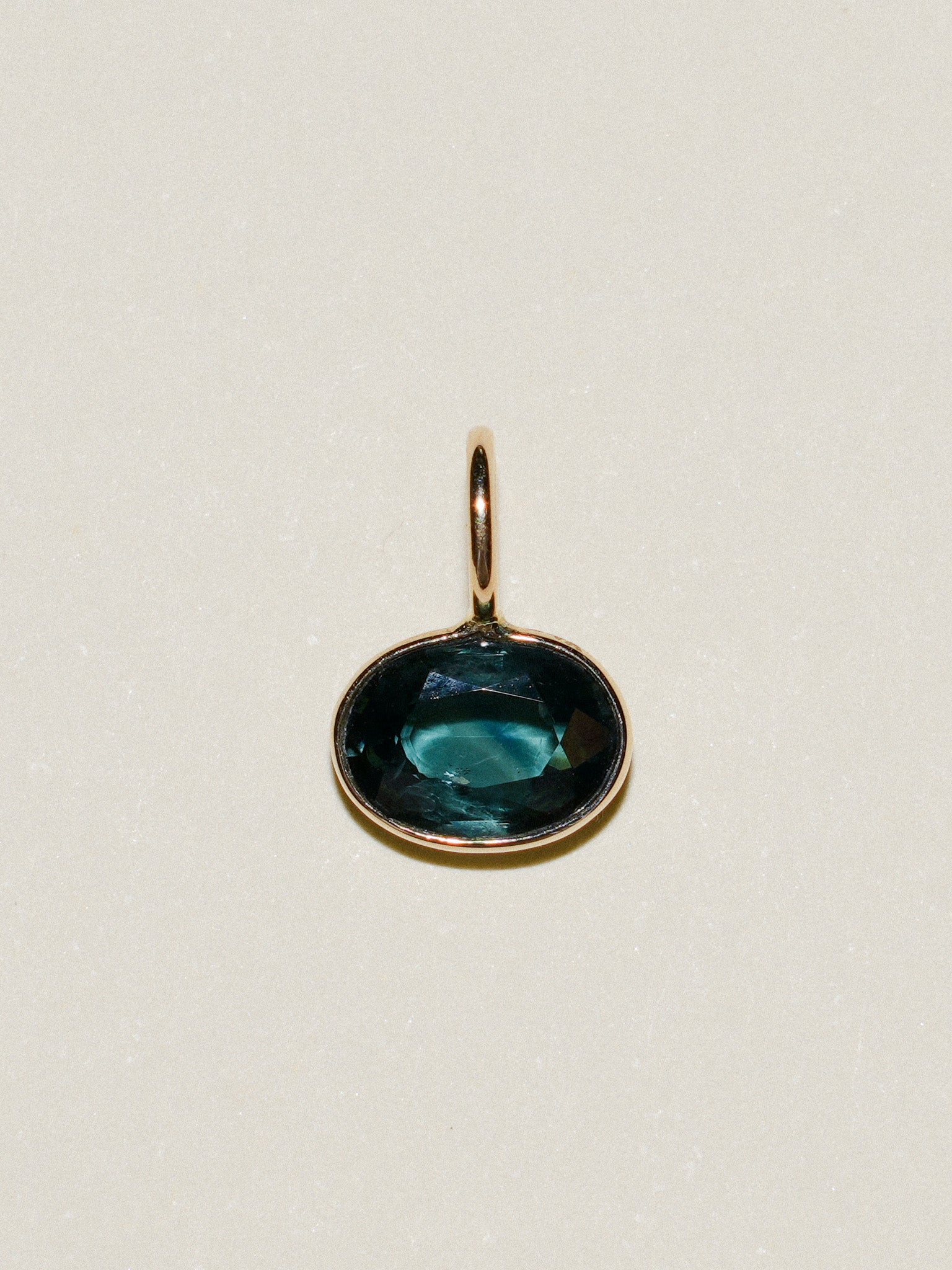 Dark Sea Sapphire East West Oval Cut Charm in 14k Yellow Gold