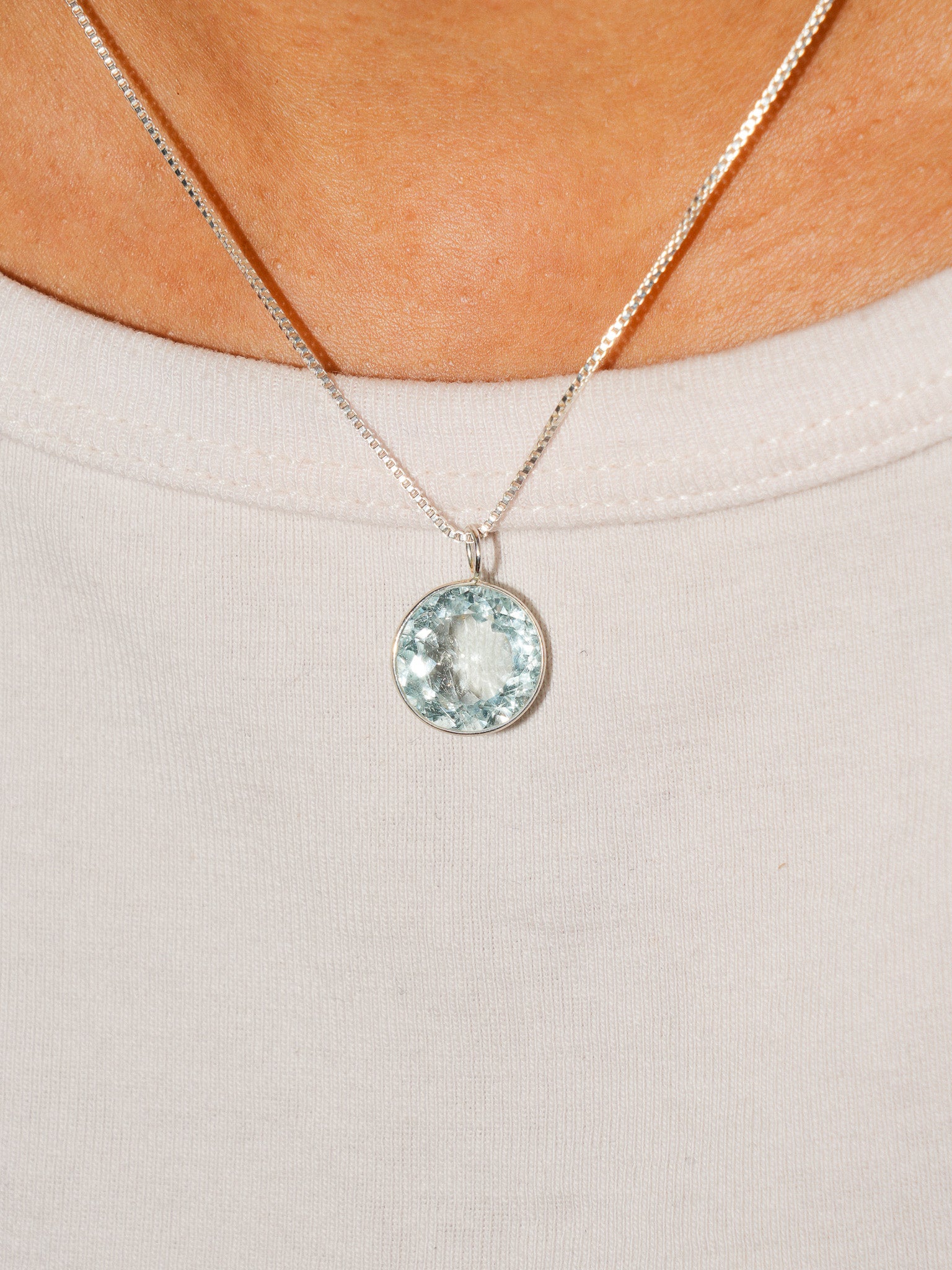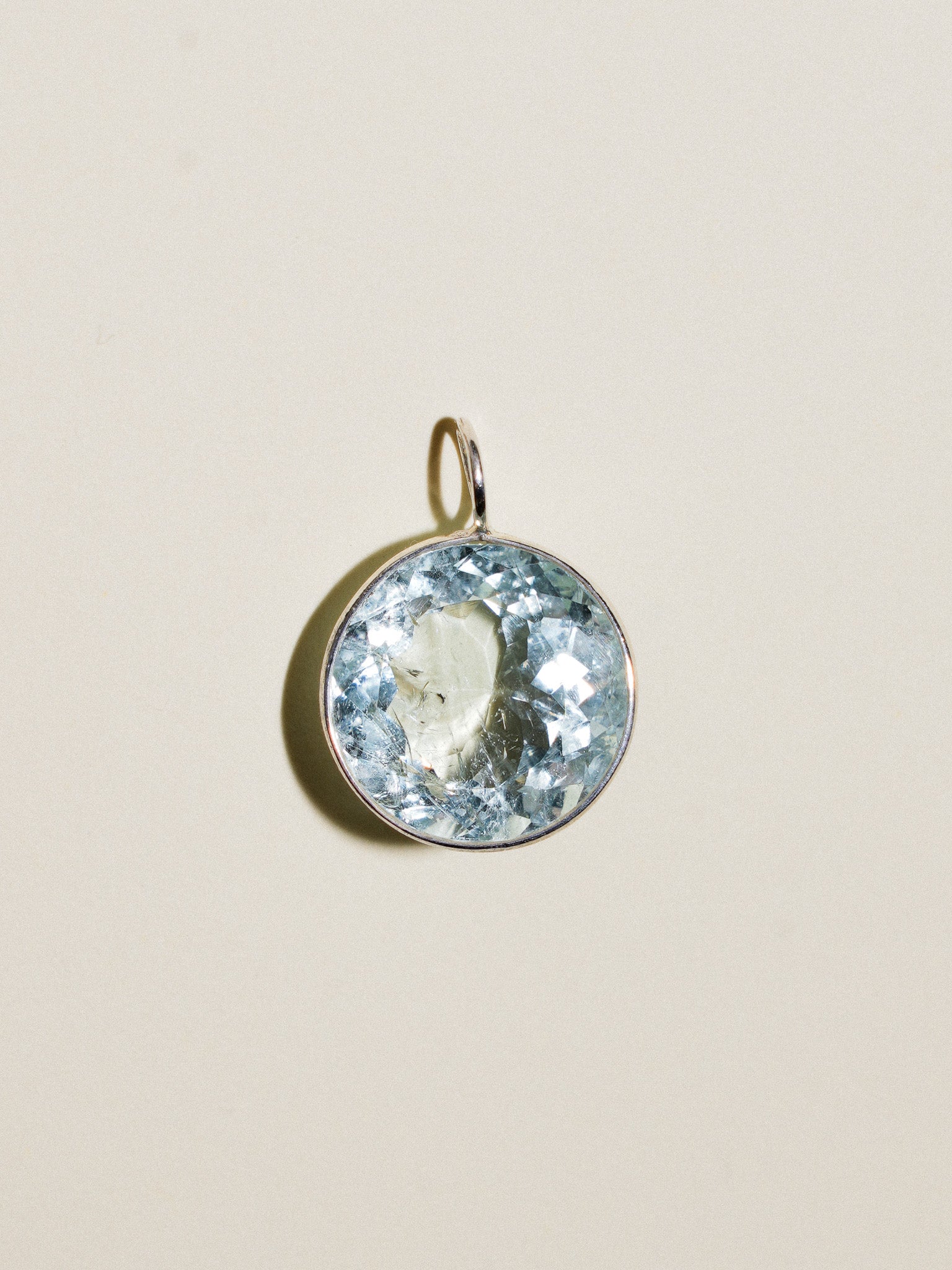 Snowflake Aquamarine Round Cut Charm in Sterling Silver