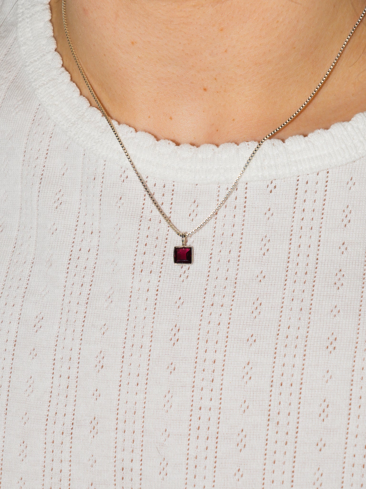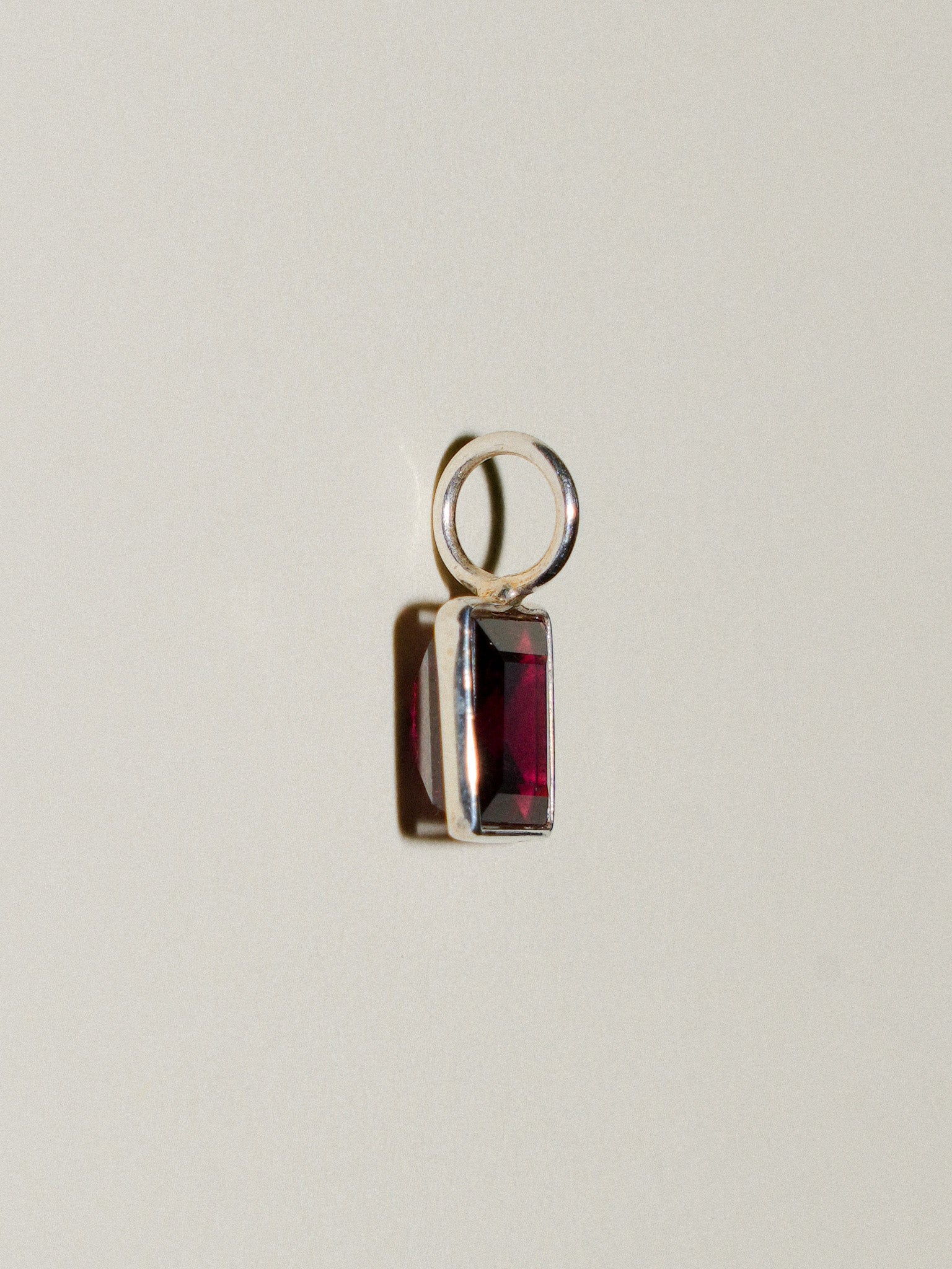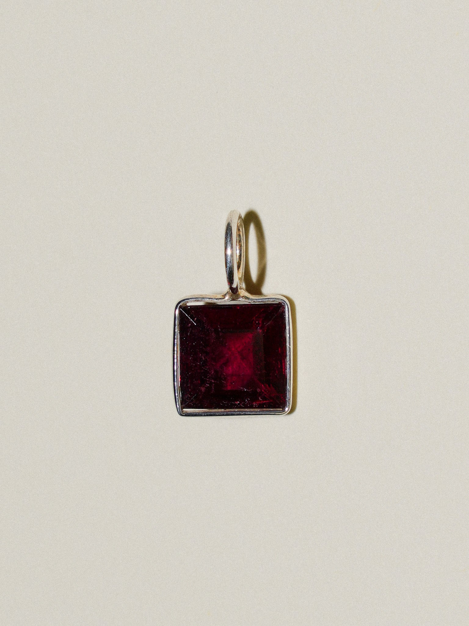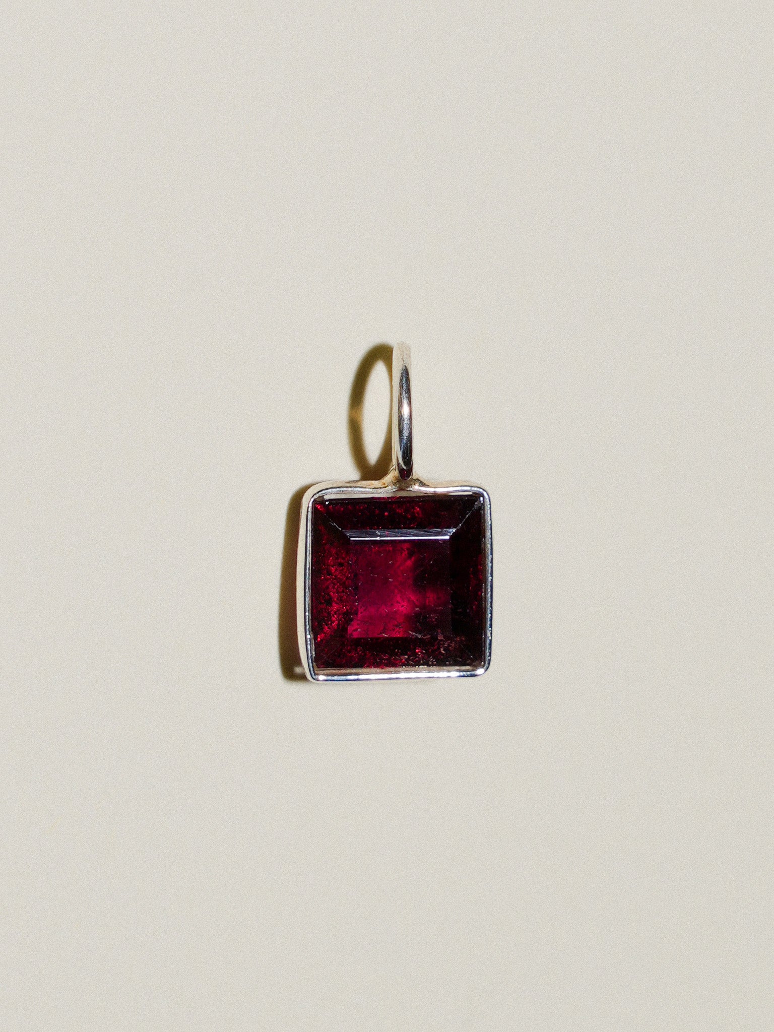Dripping Red Rhodolite Square Cut Charm in Sterling Silver
