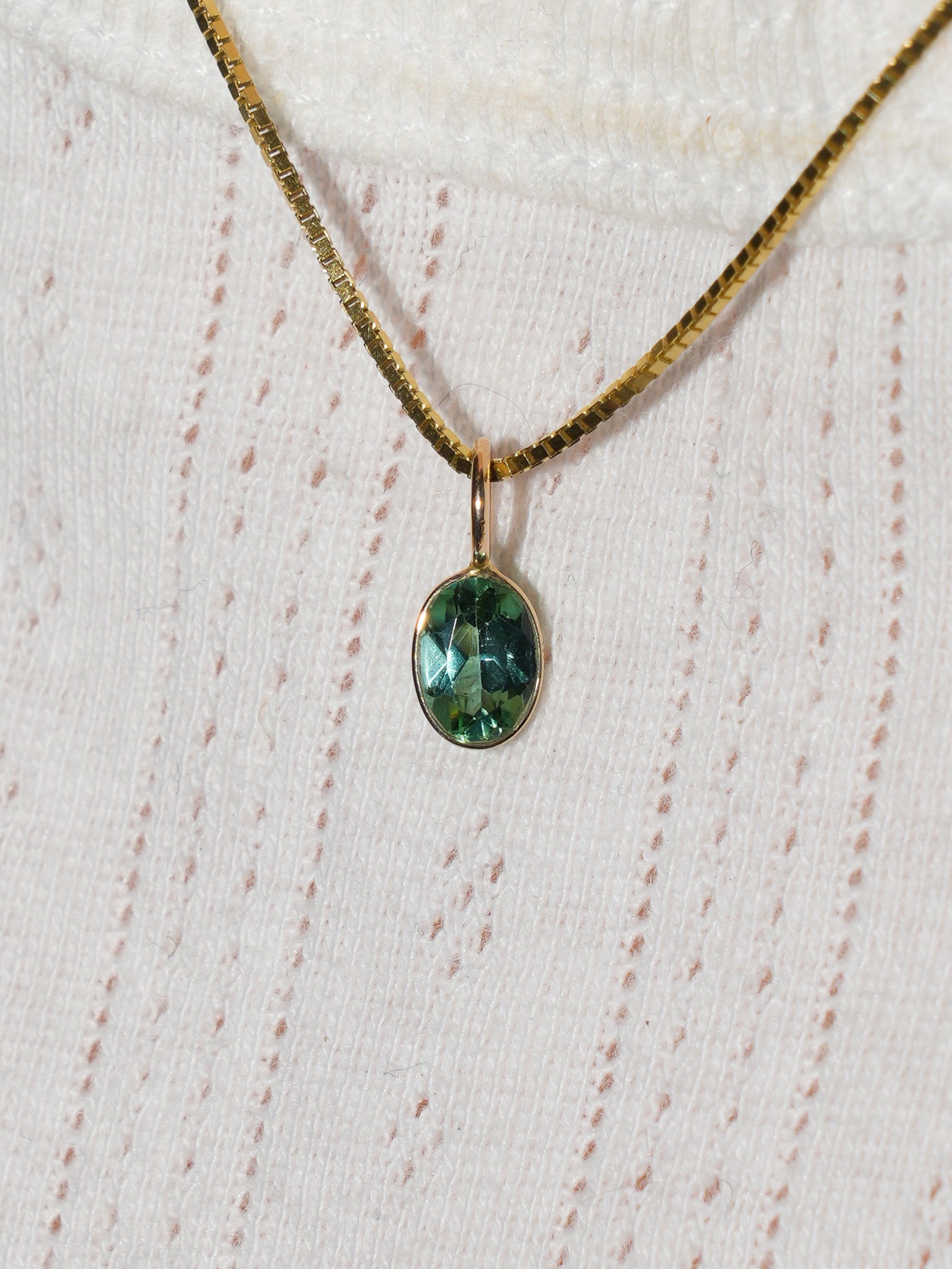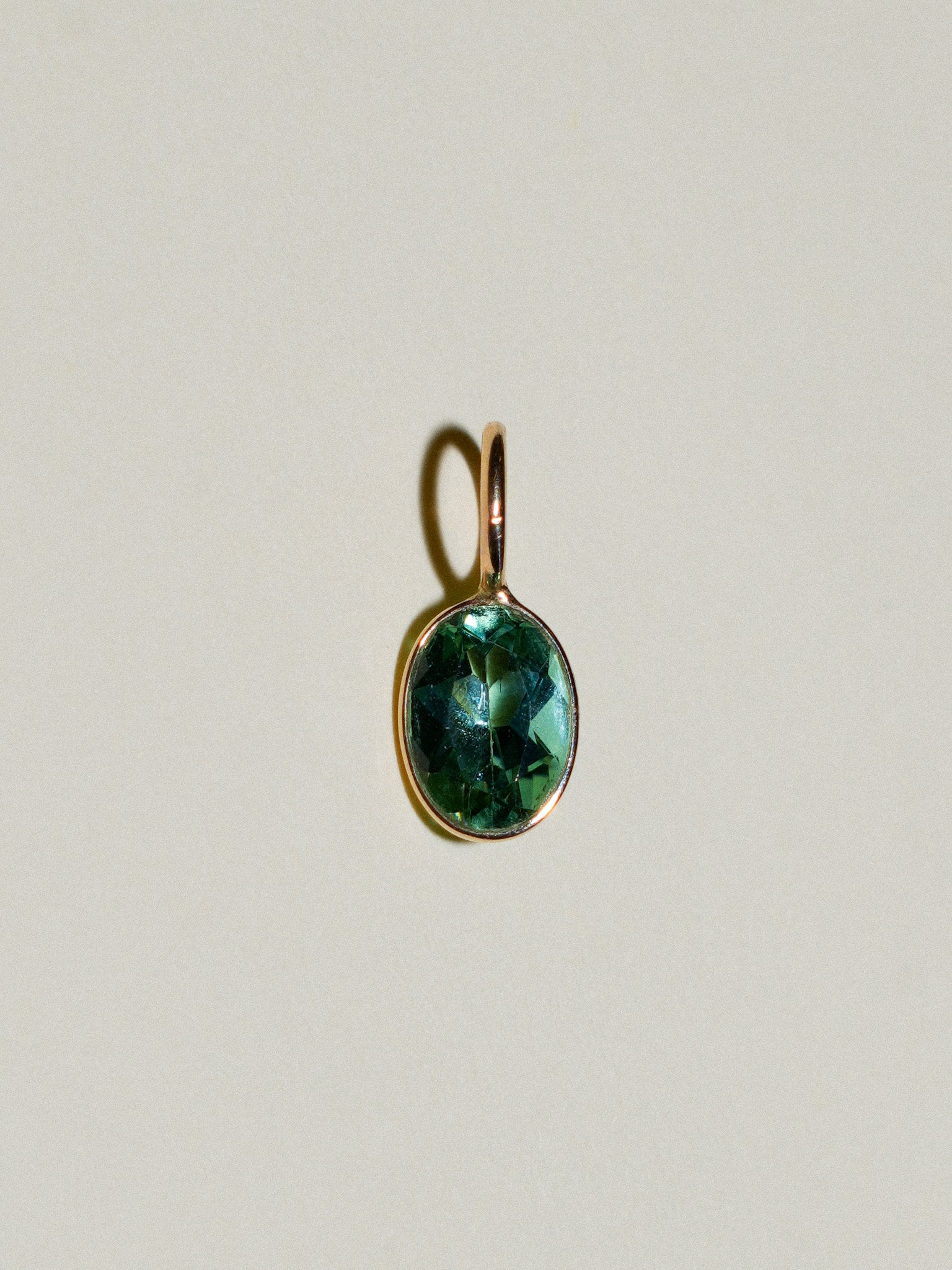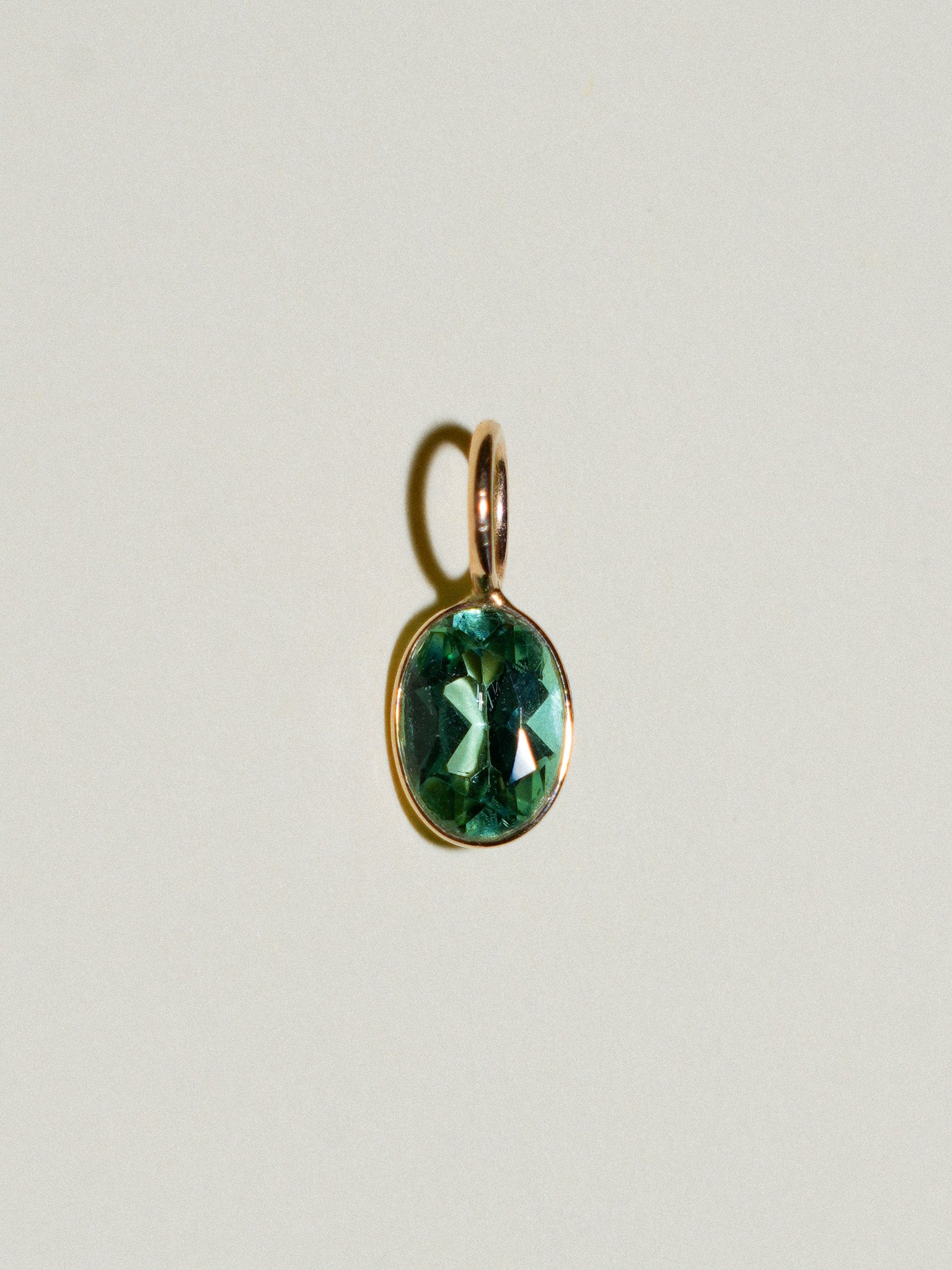 Discus Tourmaline Oval Cut Charm in Yellow 14k Gold