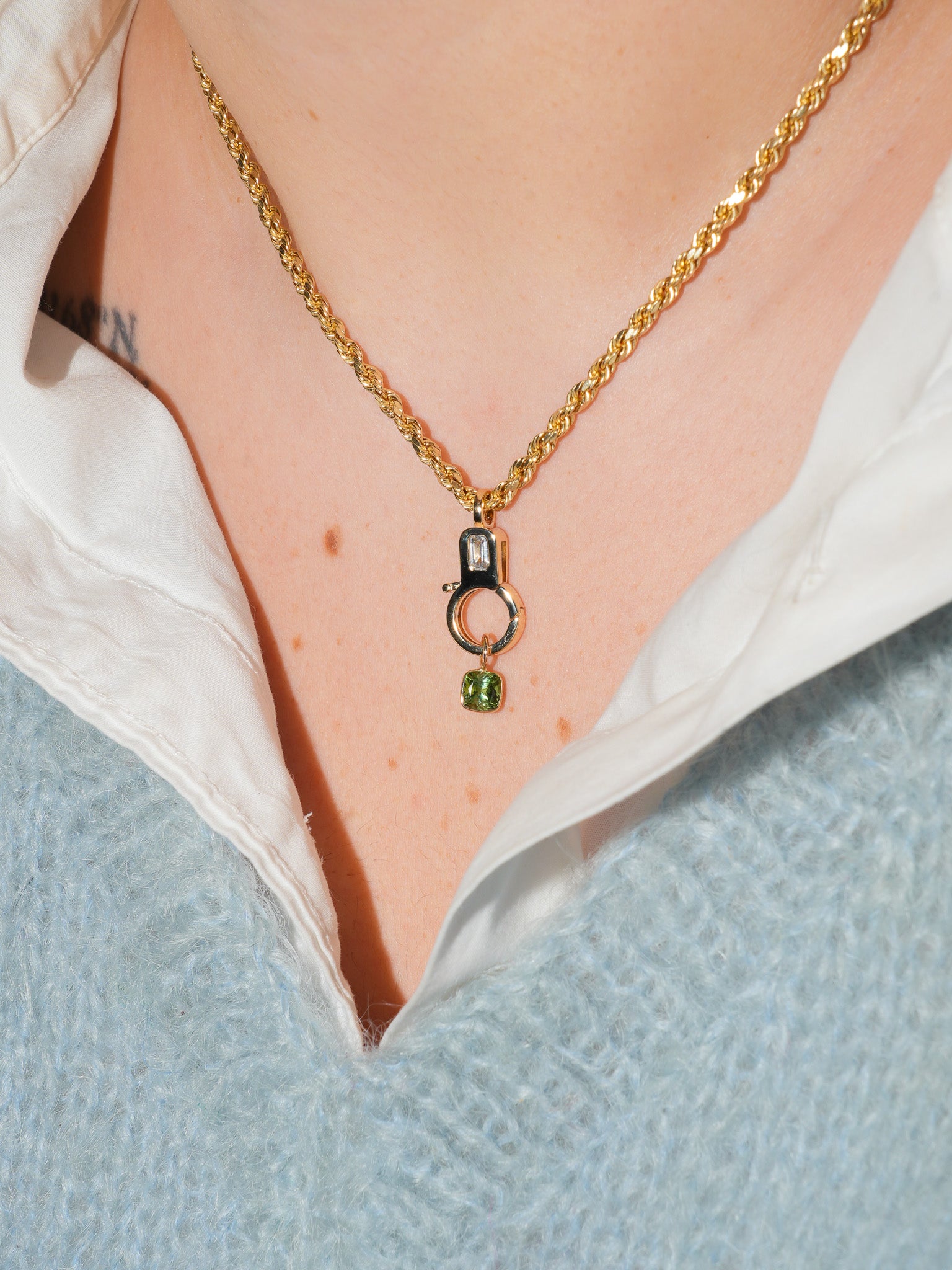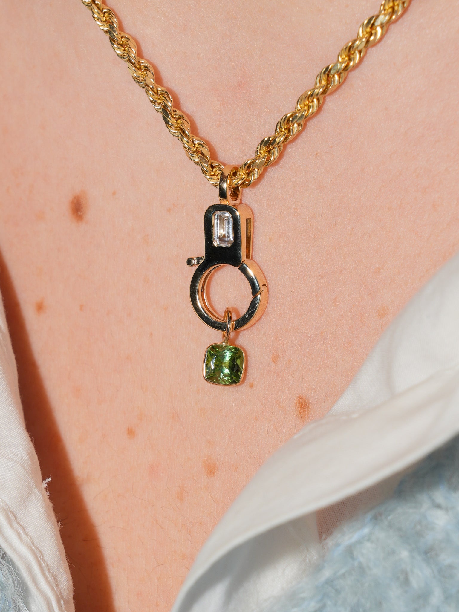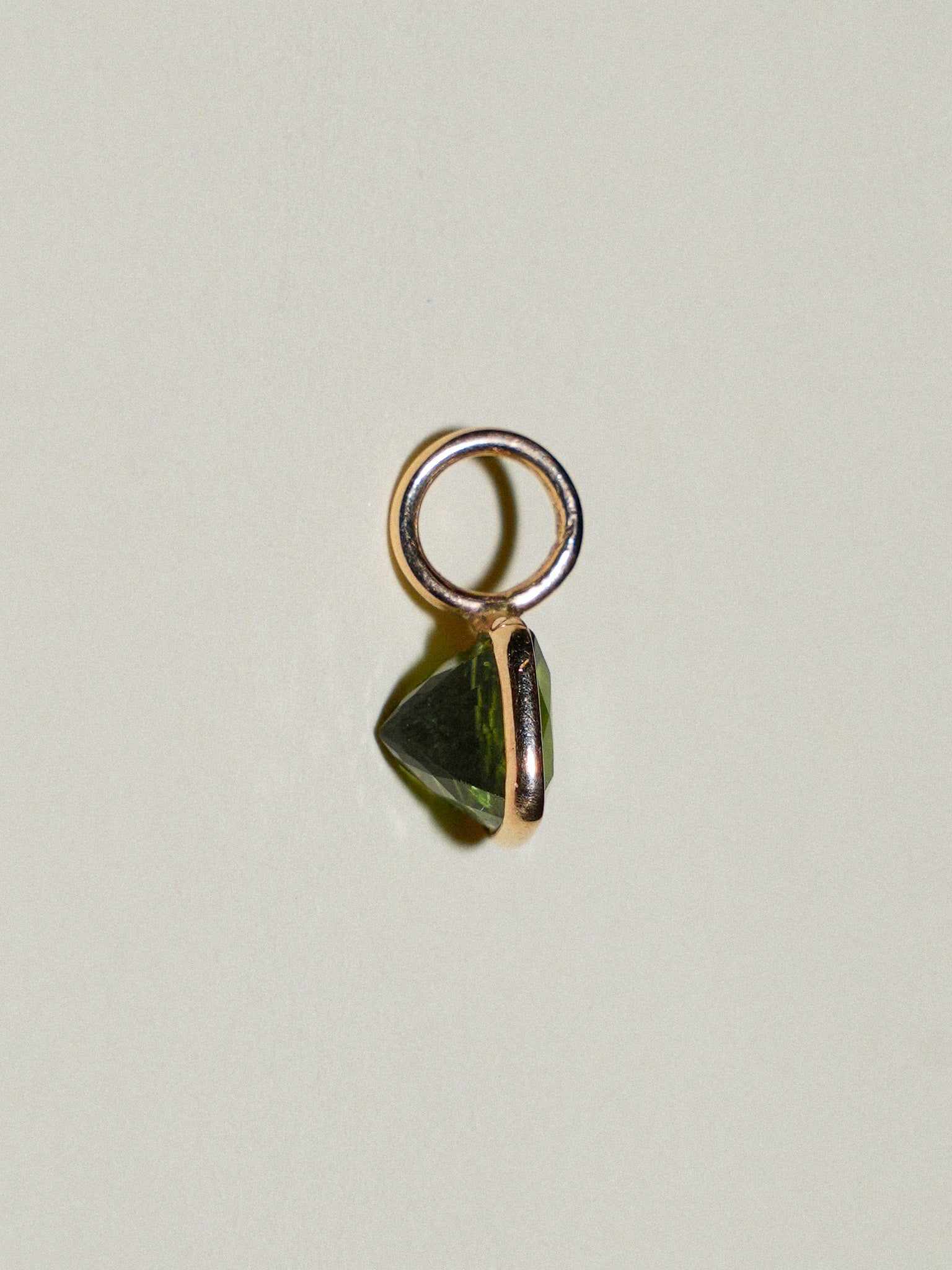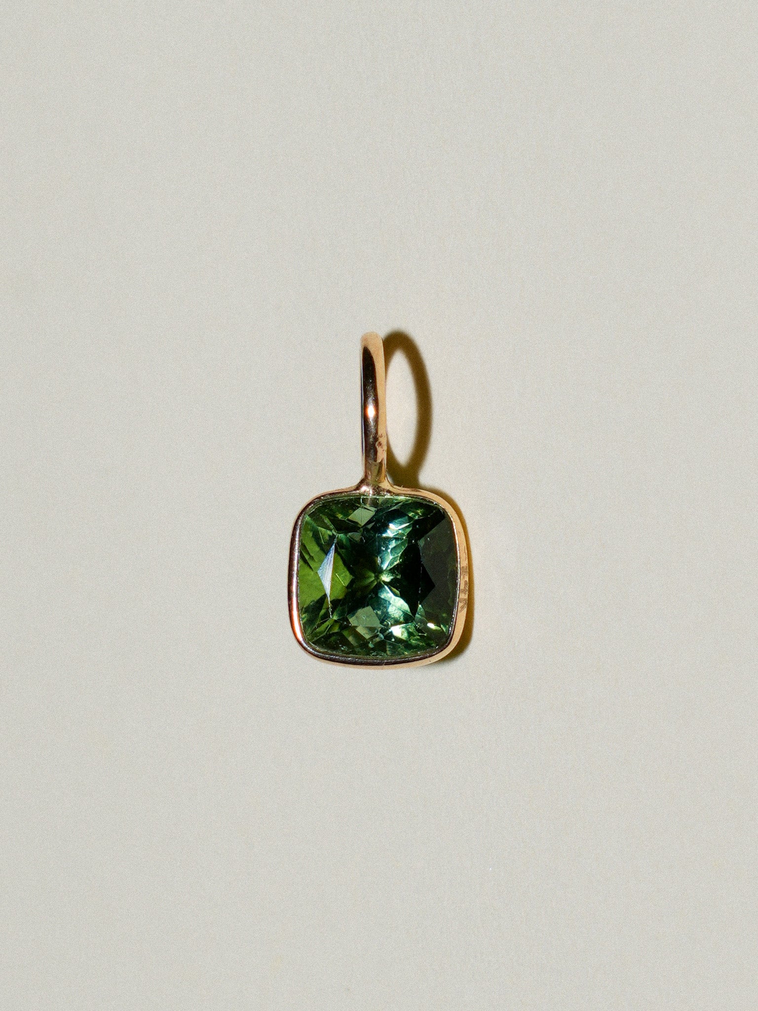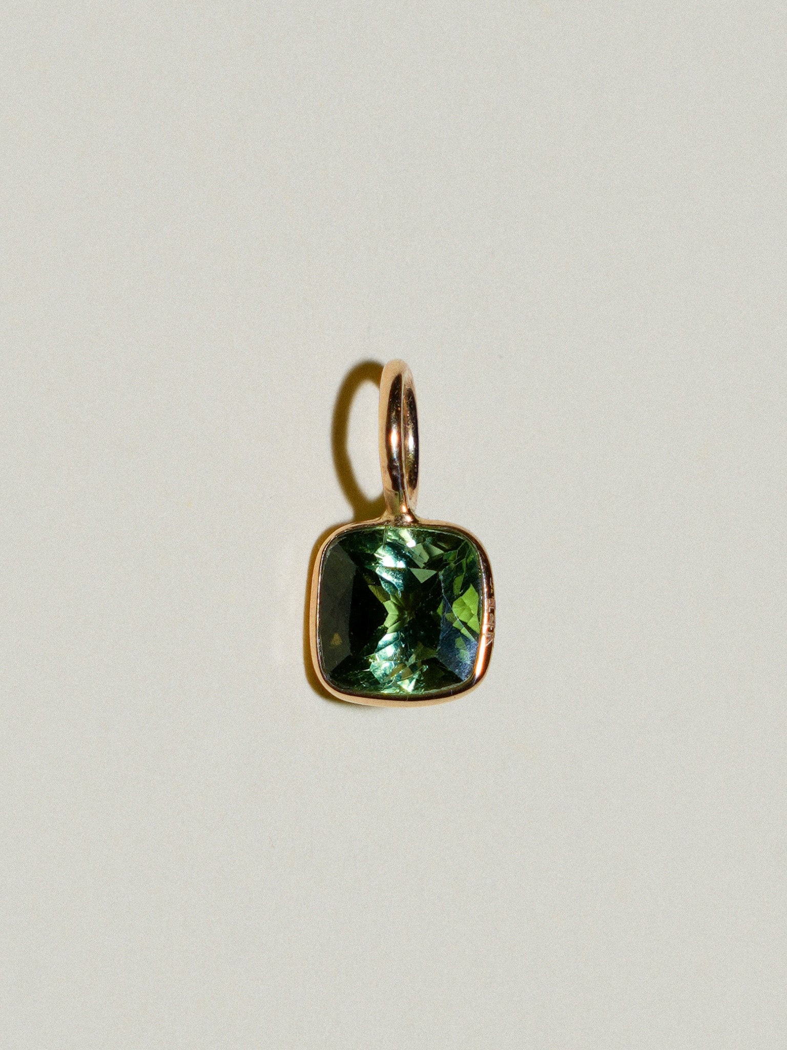Limon Green Tourmaline Cushion Cut Charm in Yellow 14k Gold