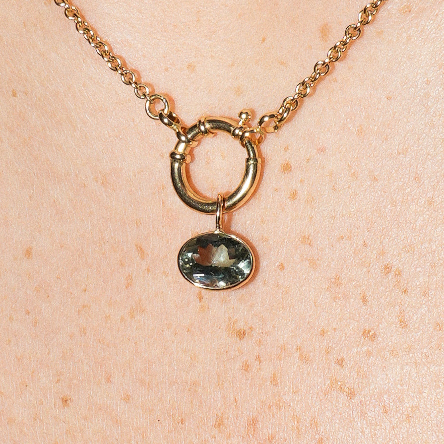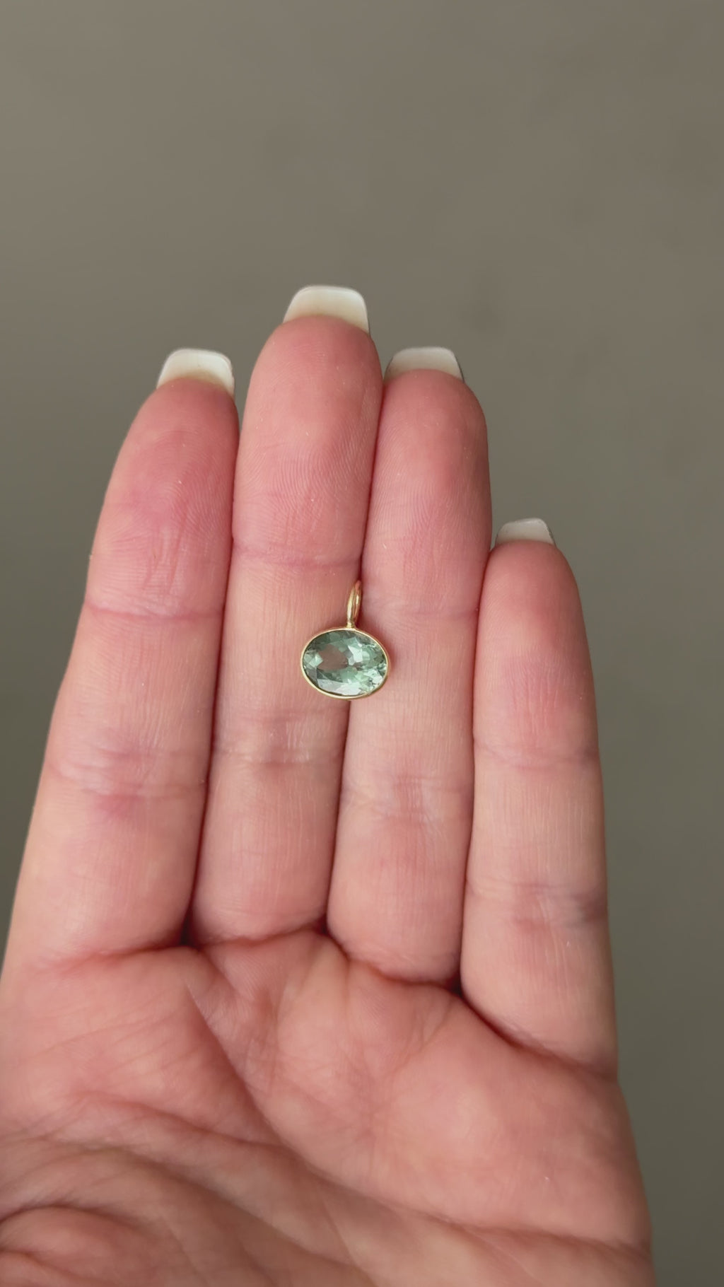 Eucalyptus Green Tourmaline East West Oval Cut Charm 2 in 14k Yellow Gold