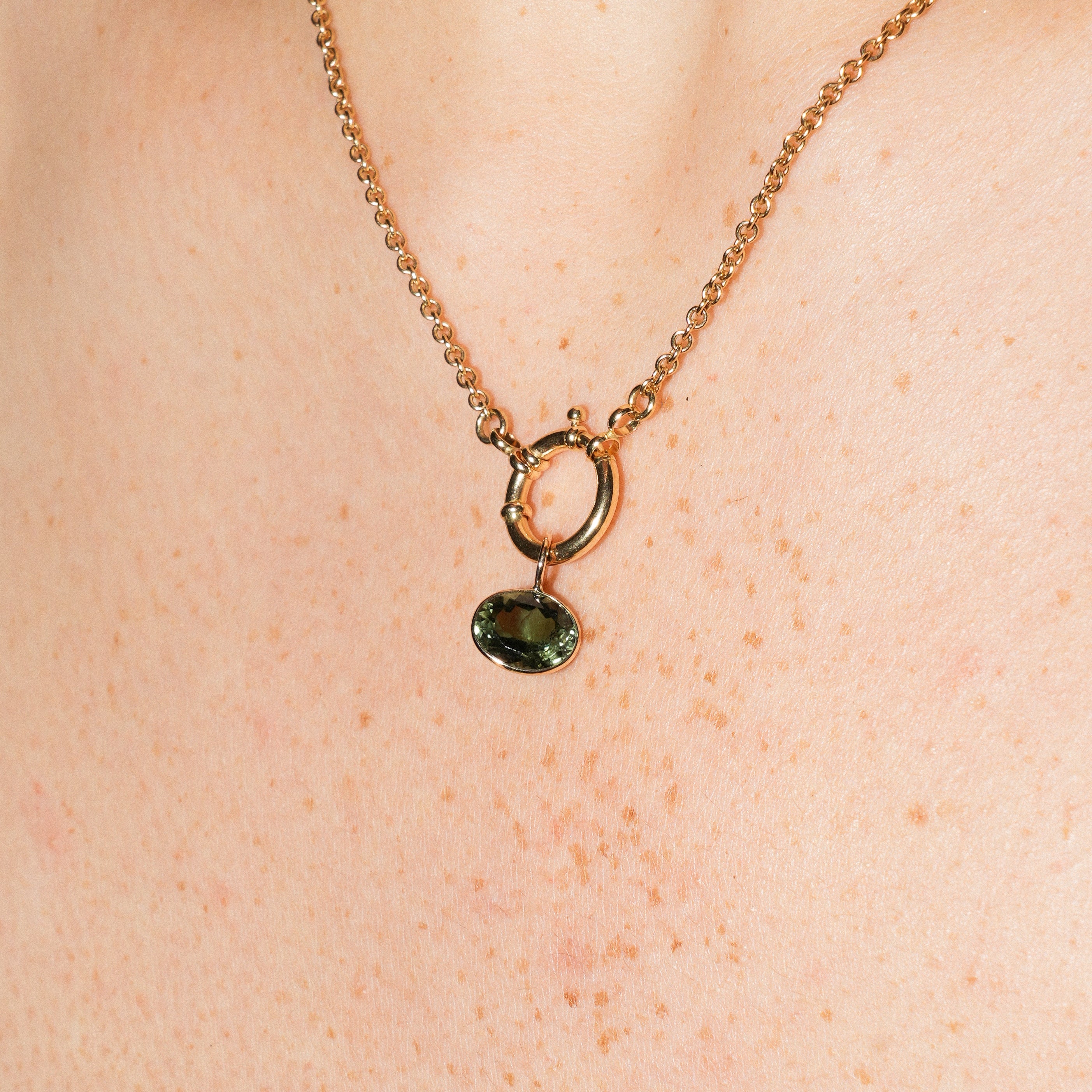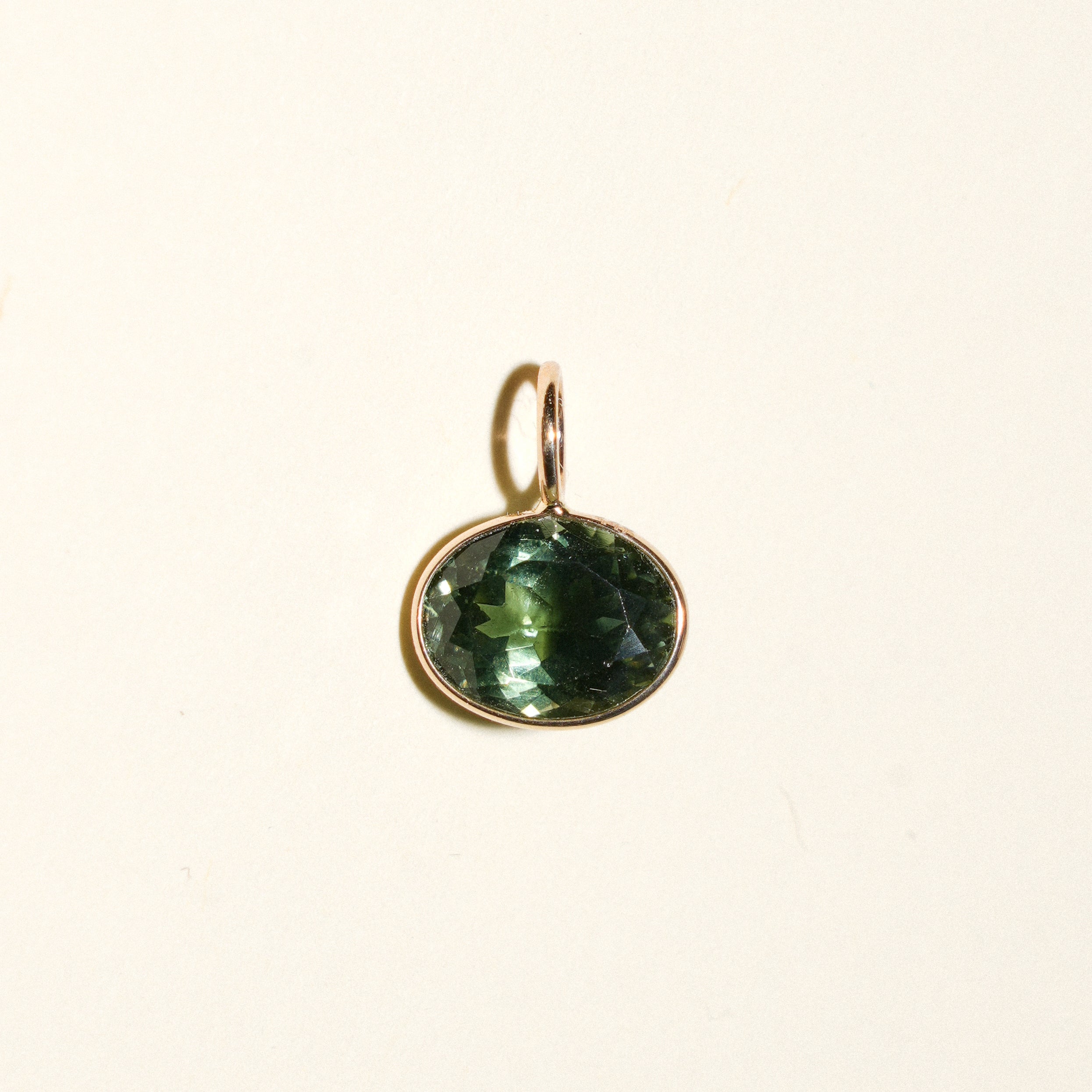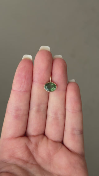 Grass Green Tourmaline East West Oval Cut Charm in 14k Yellow Gold