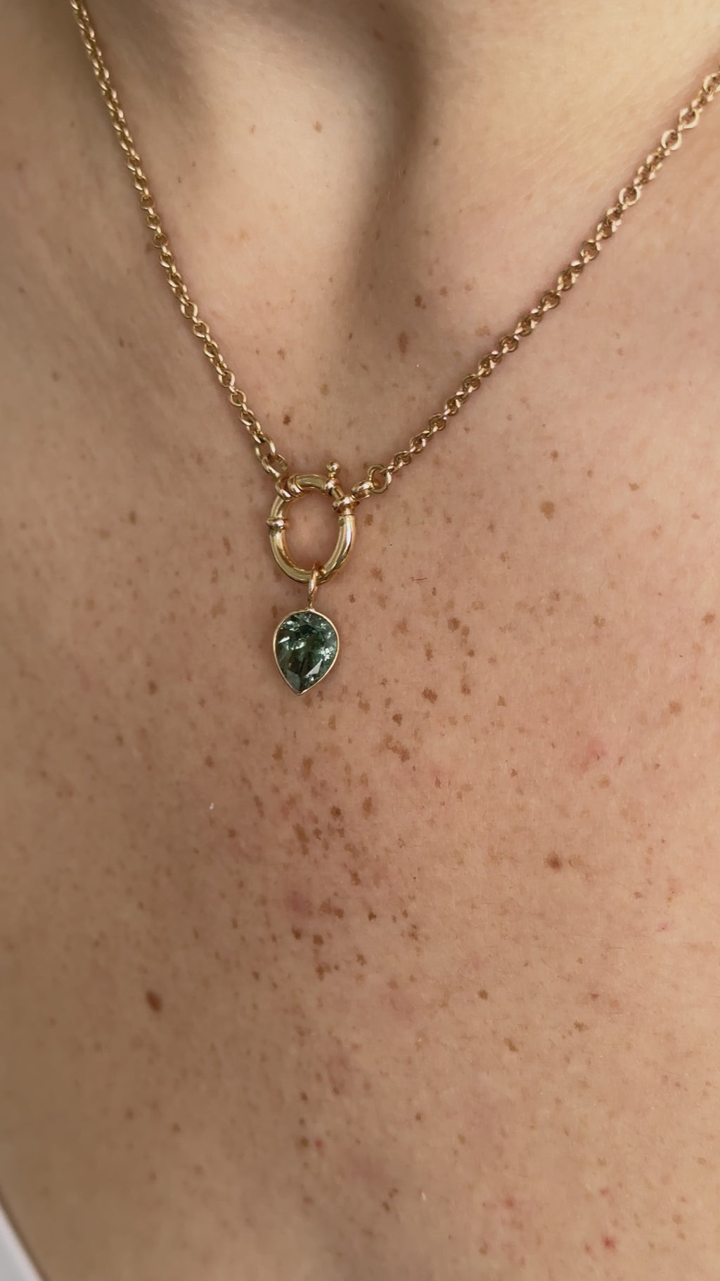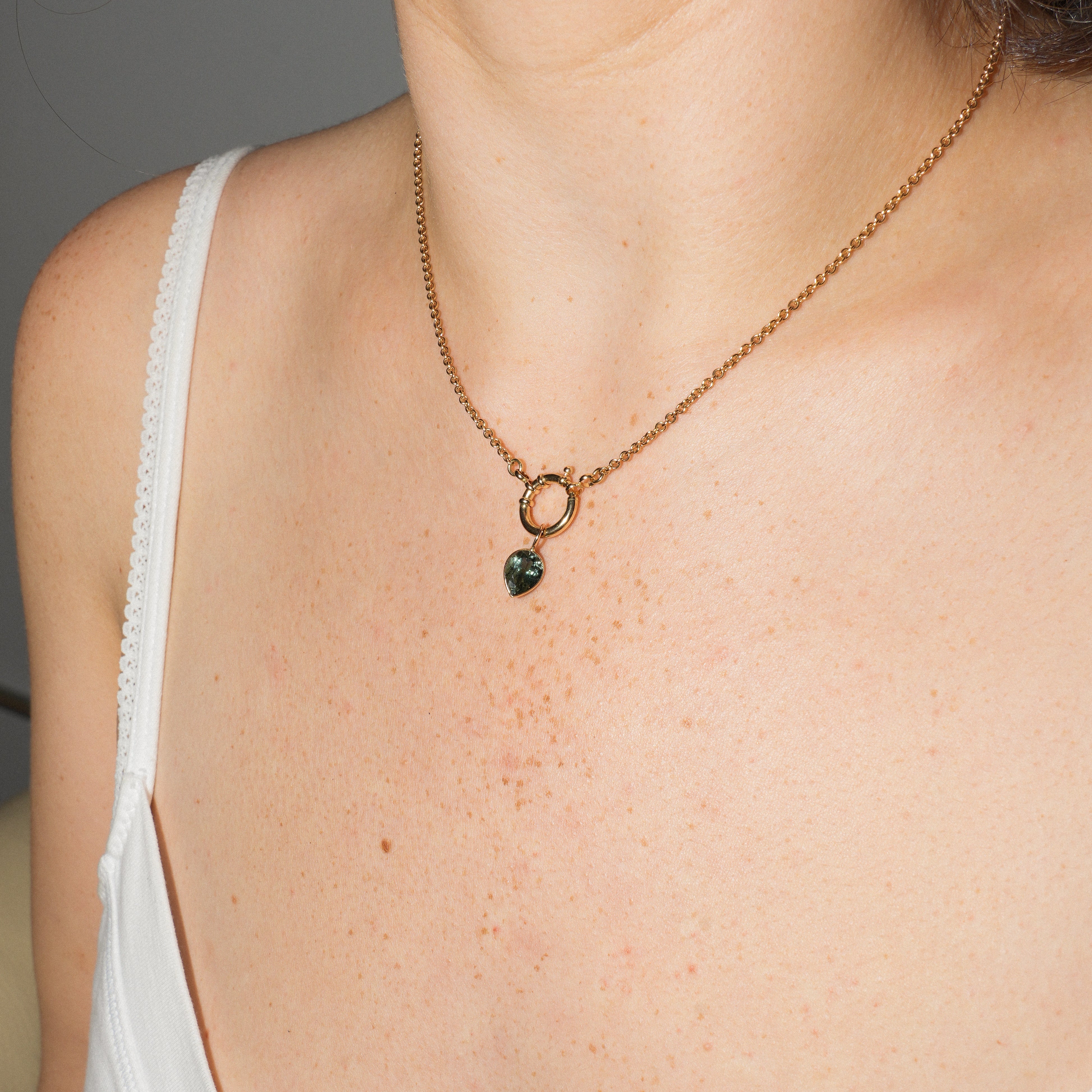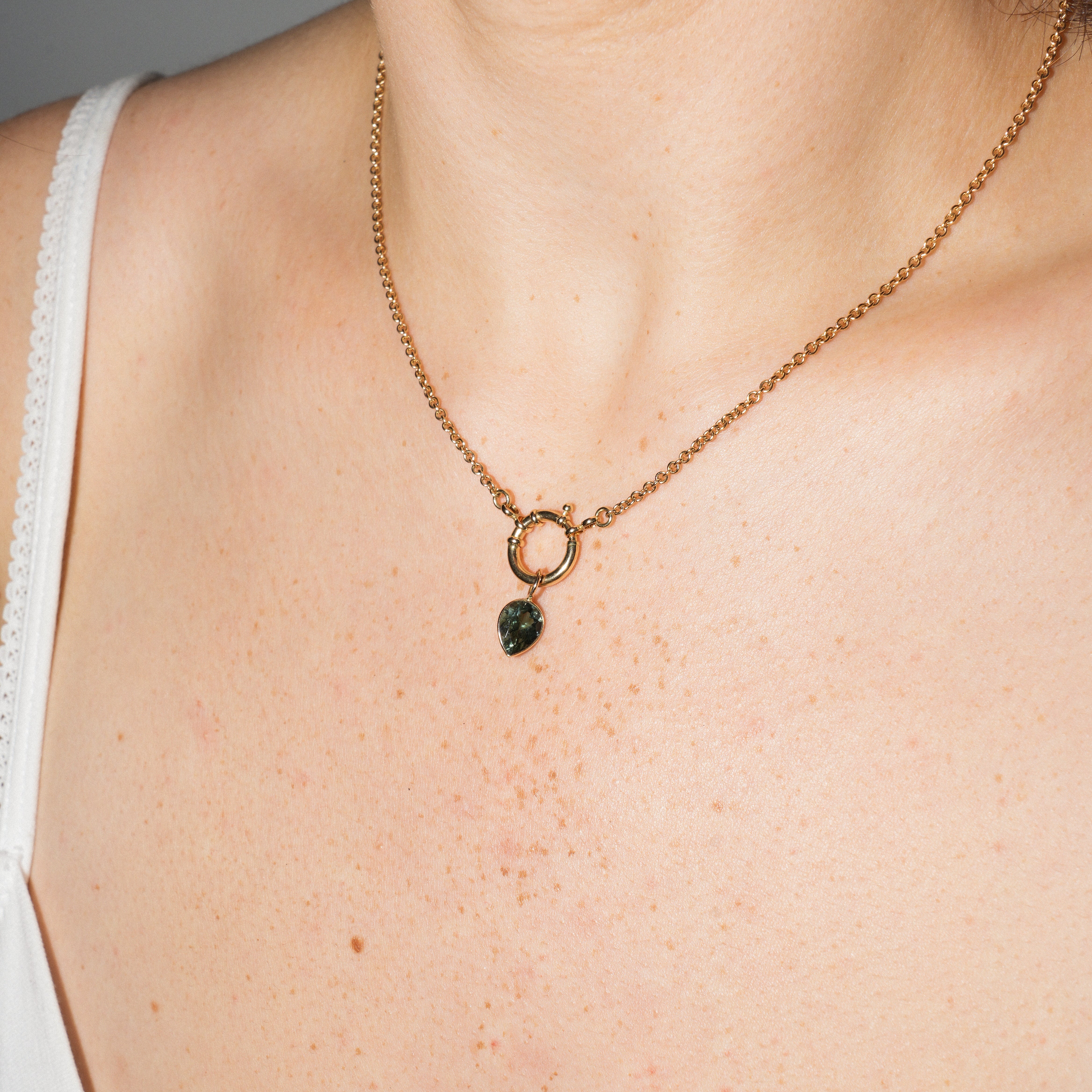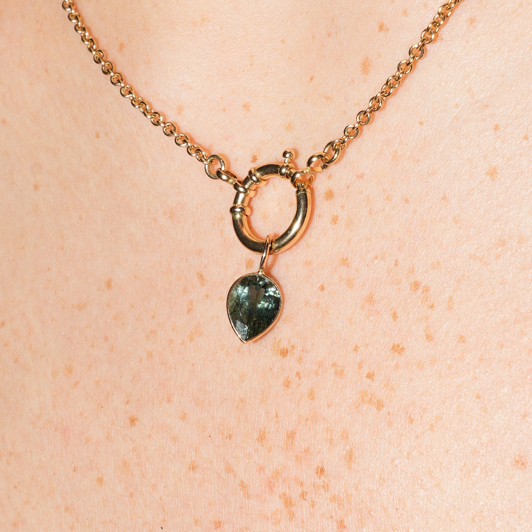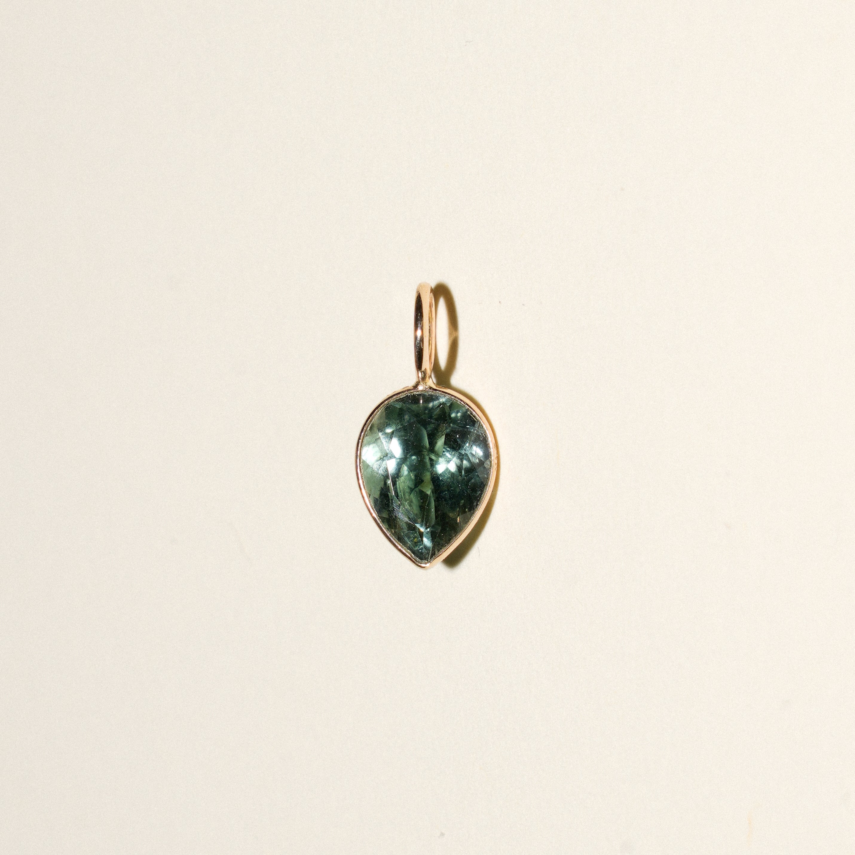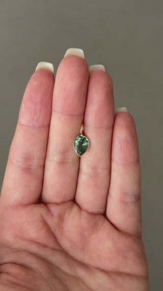 Teal Green Tourmaline Inverted Pear Cut Charm in 14k Yellow Gold