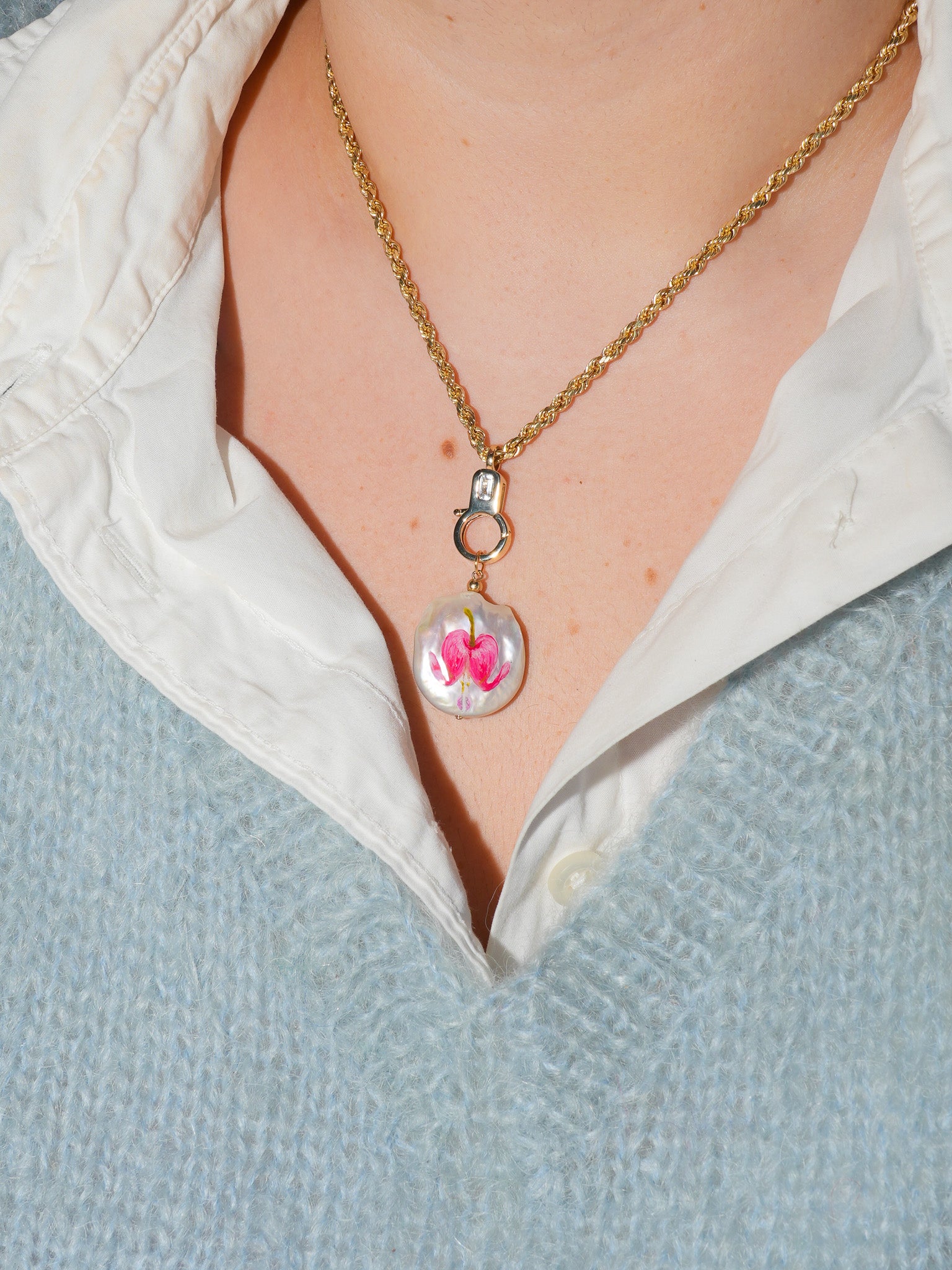This charm is part of our unique hand-painted freshwater pearl collection. Each charm made-to-order by our in house artists and unique! Please expect natural variation in each pearl.