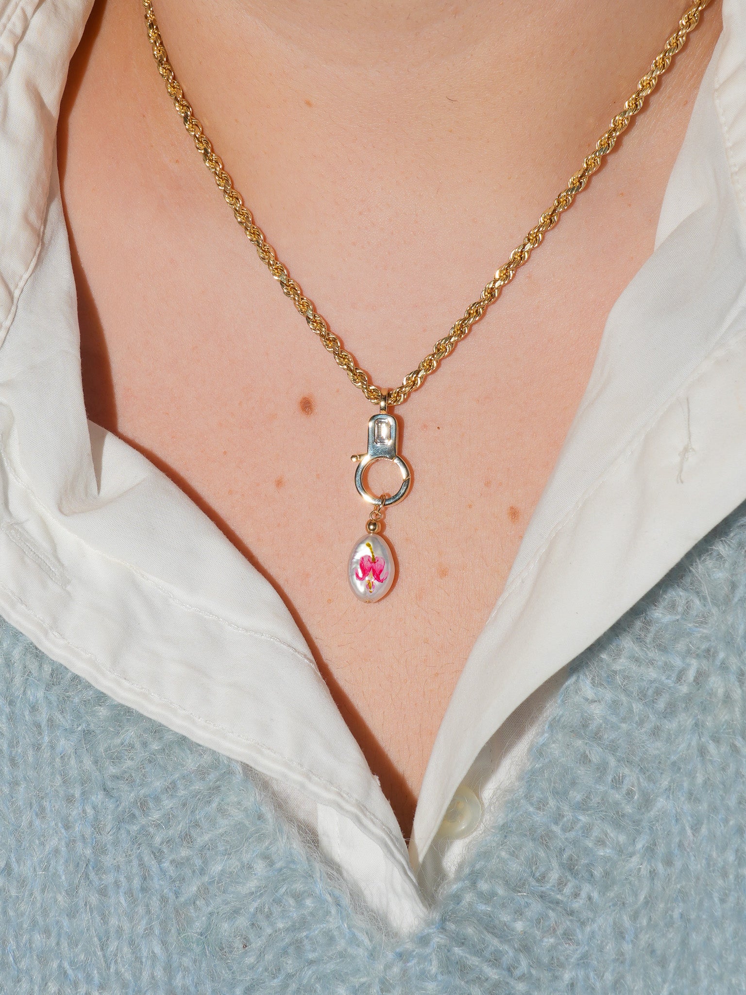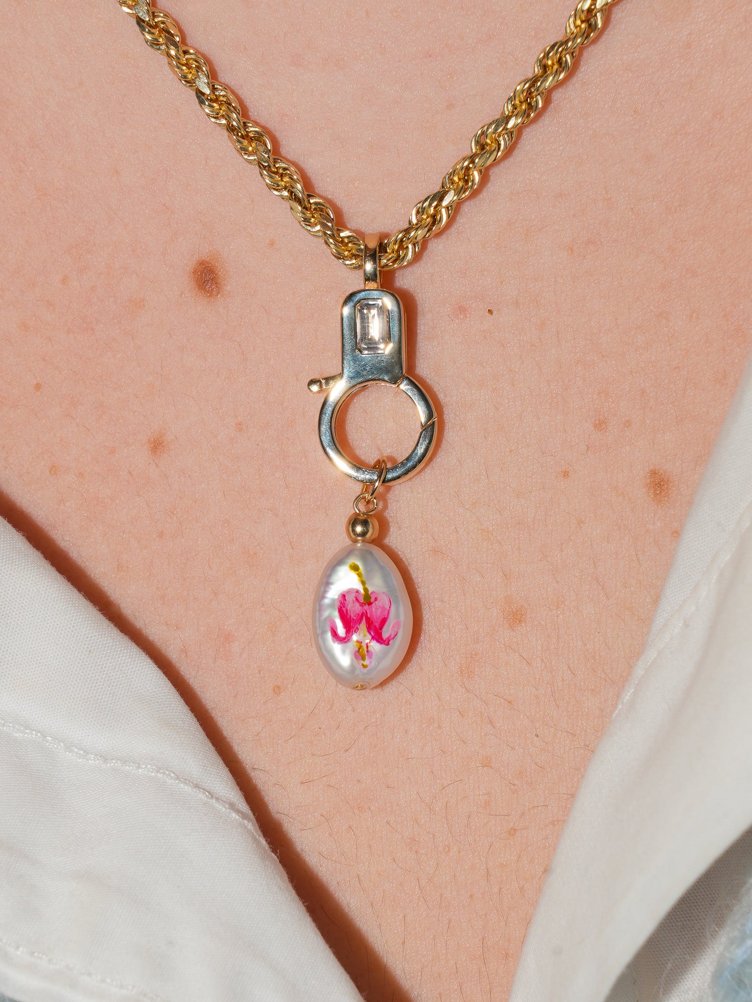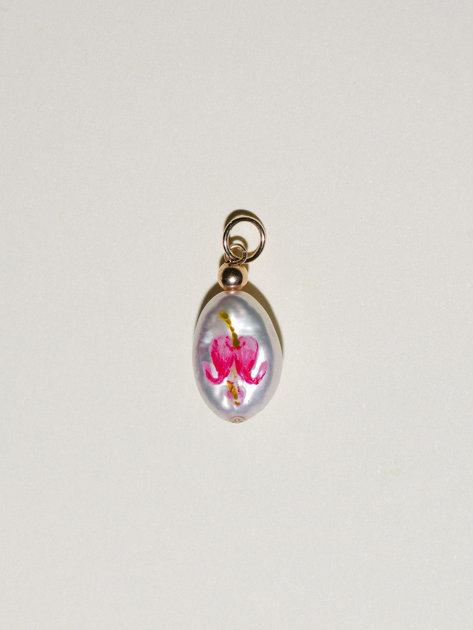 This charm is part of our unique hand-painted freshwater pearl collection. Each charm made-to-order by our in house artists and unique! Please expect natural variation in each pearl.