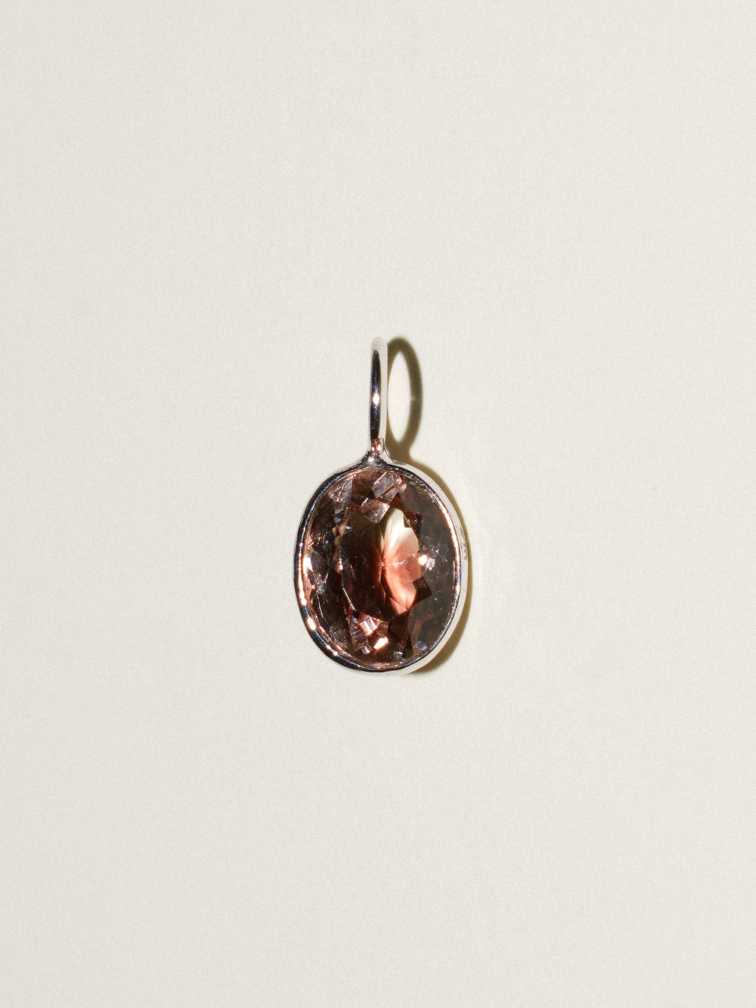 Soft Peach Sunstone Oval Cut Charm in White 14k Gold