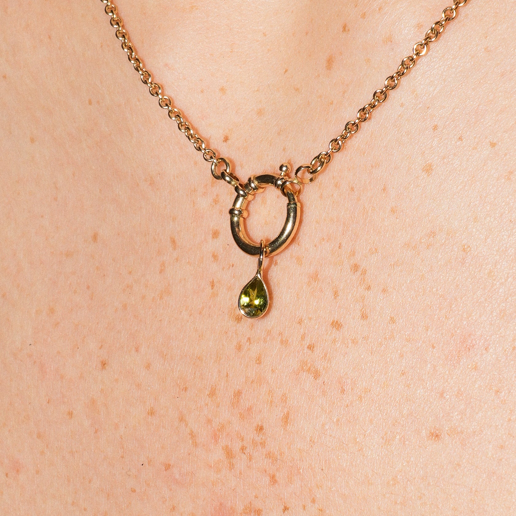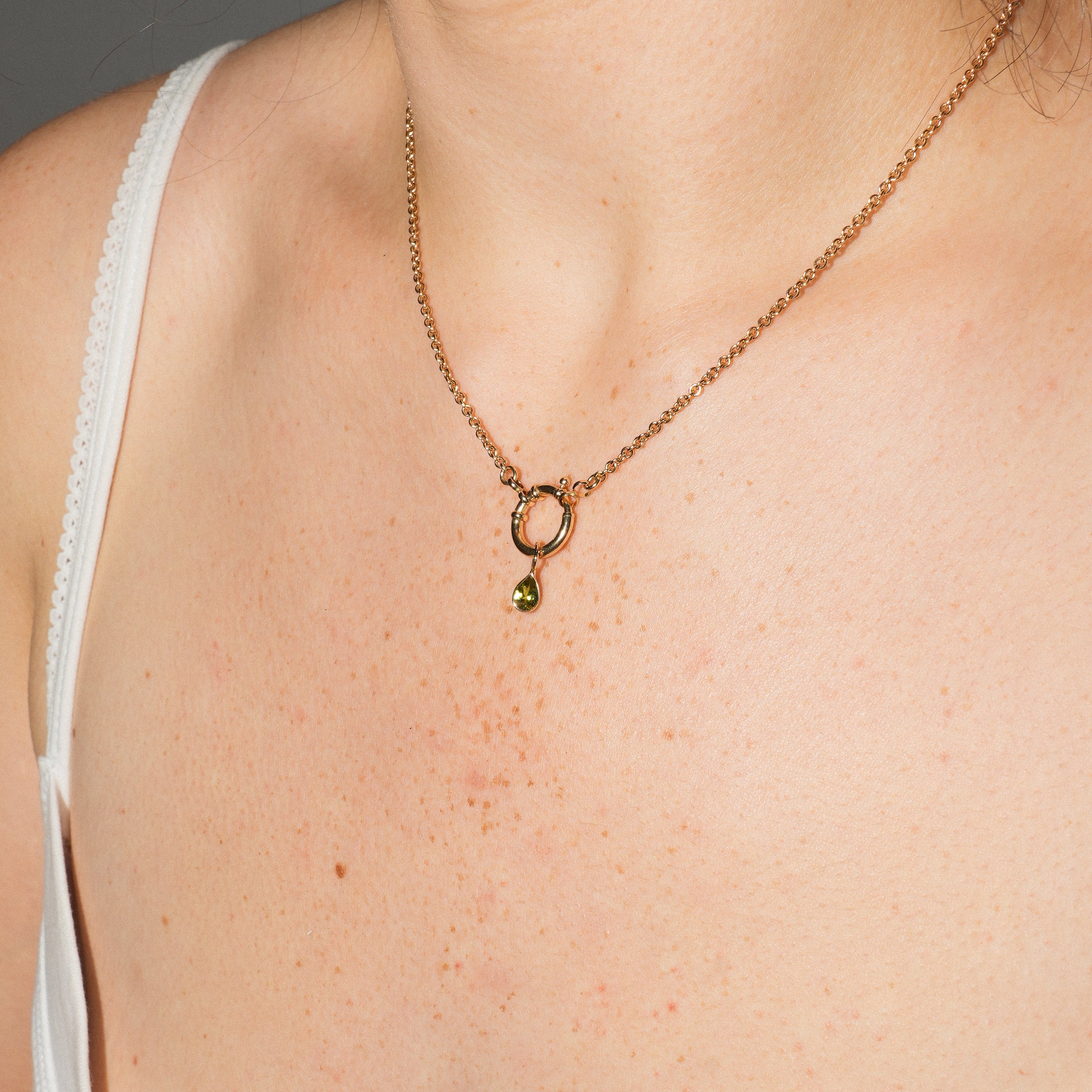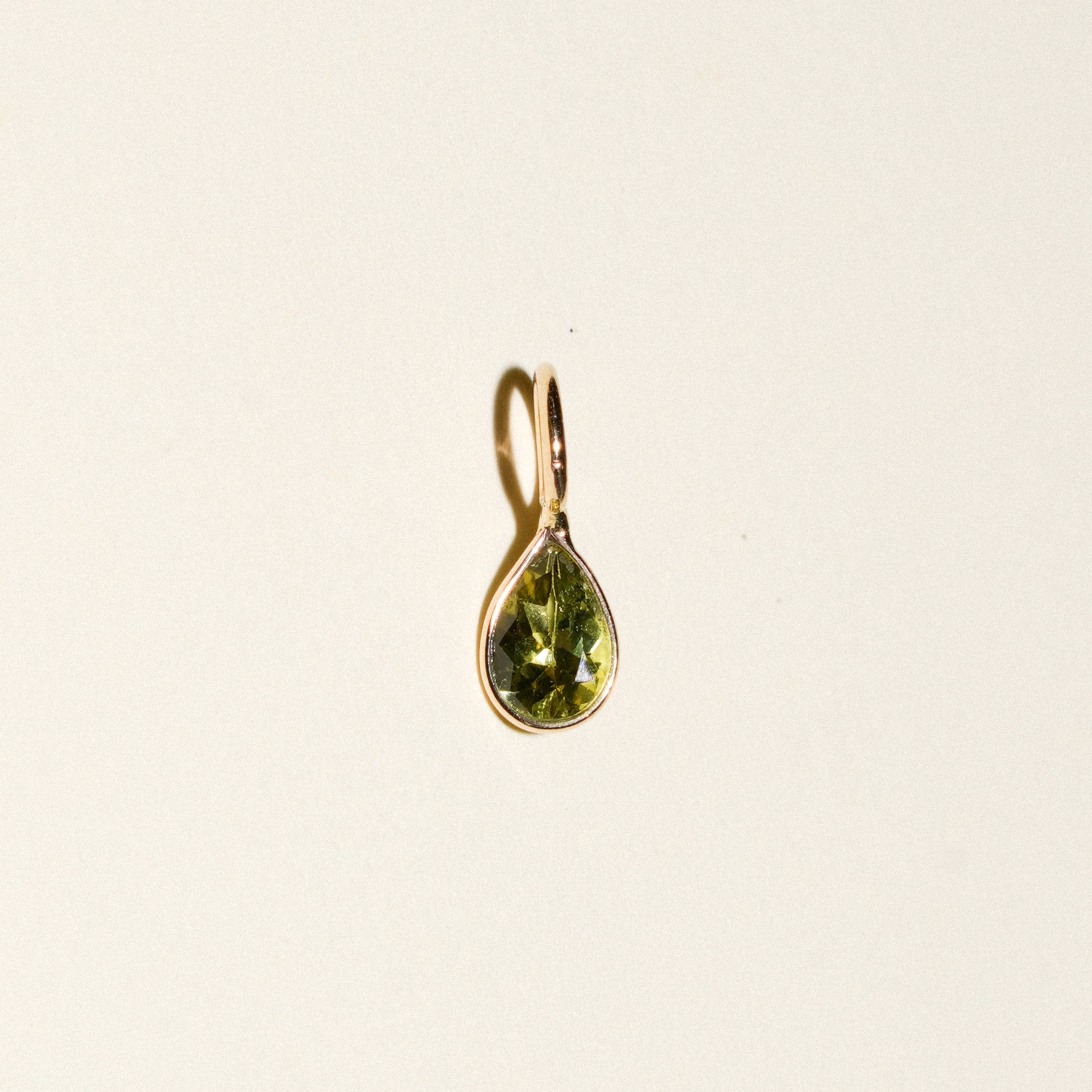 Lime Green Tourmaline Teardrop Cut Charm in Yellow 14k Gold