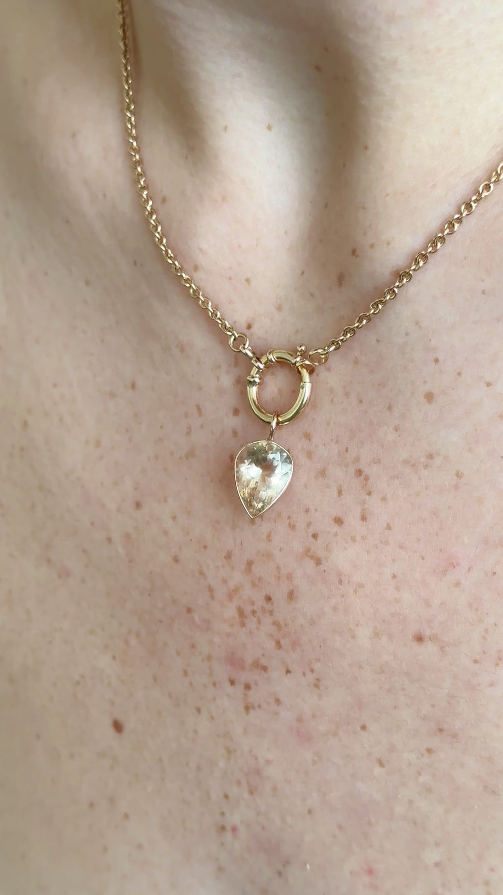 Peachy Yellow Heliodor Inverted Teardrop Cut Charm in 14k Yellow Gold