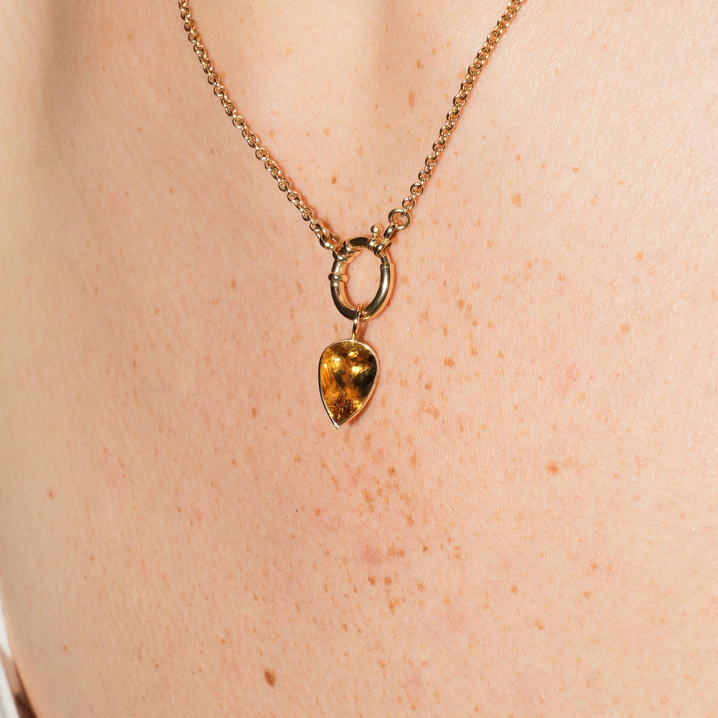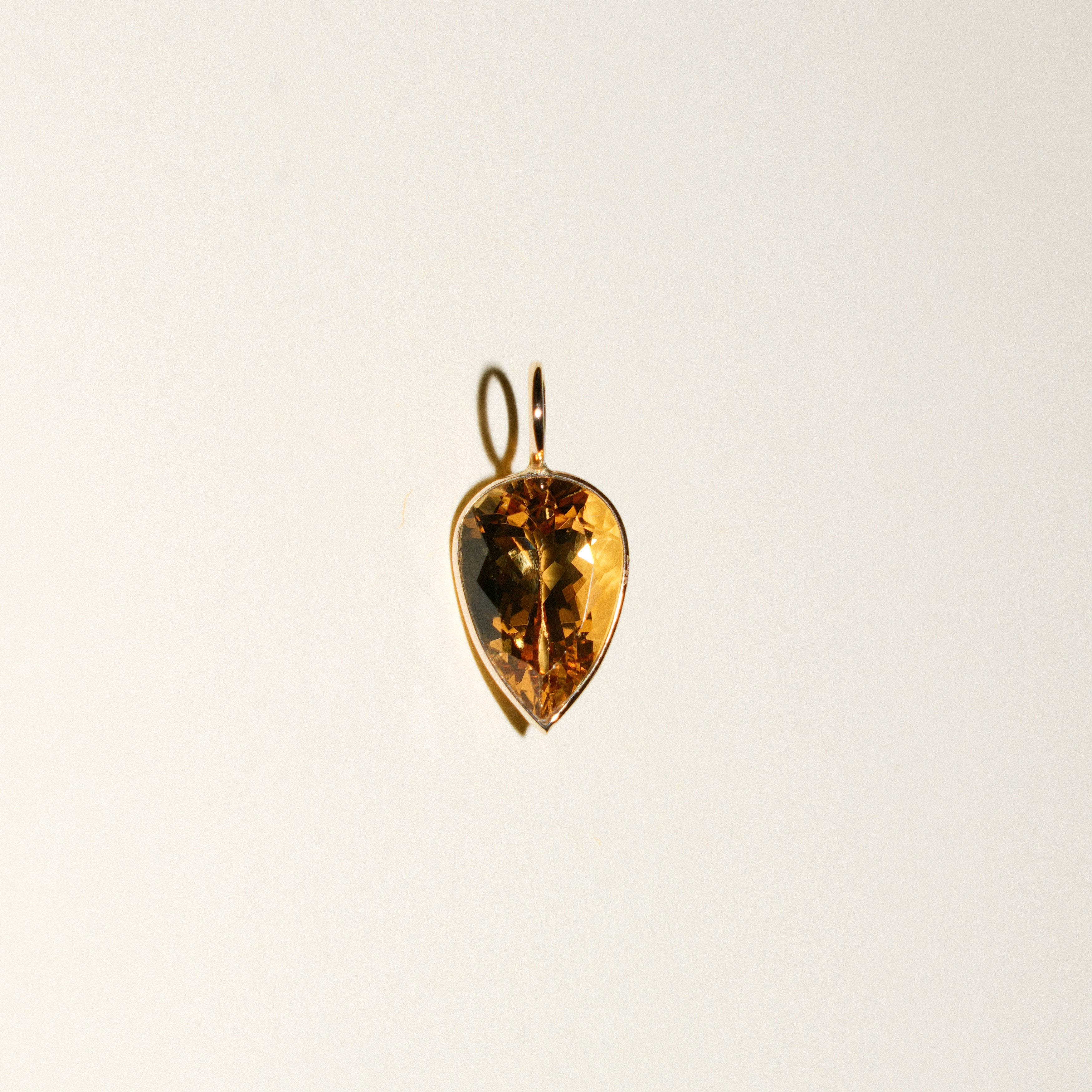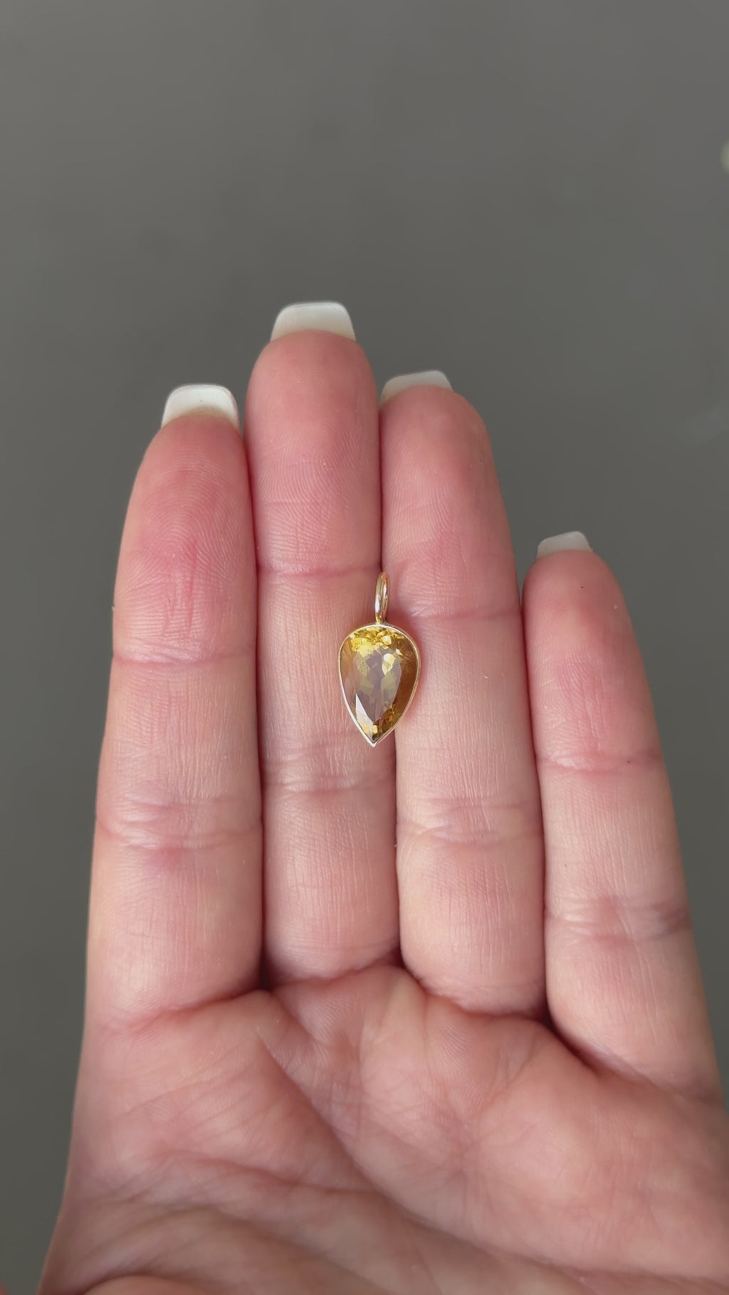 Sunset Heliodor Inverted Pear Cut Charm in Yellow 14k Gold