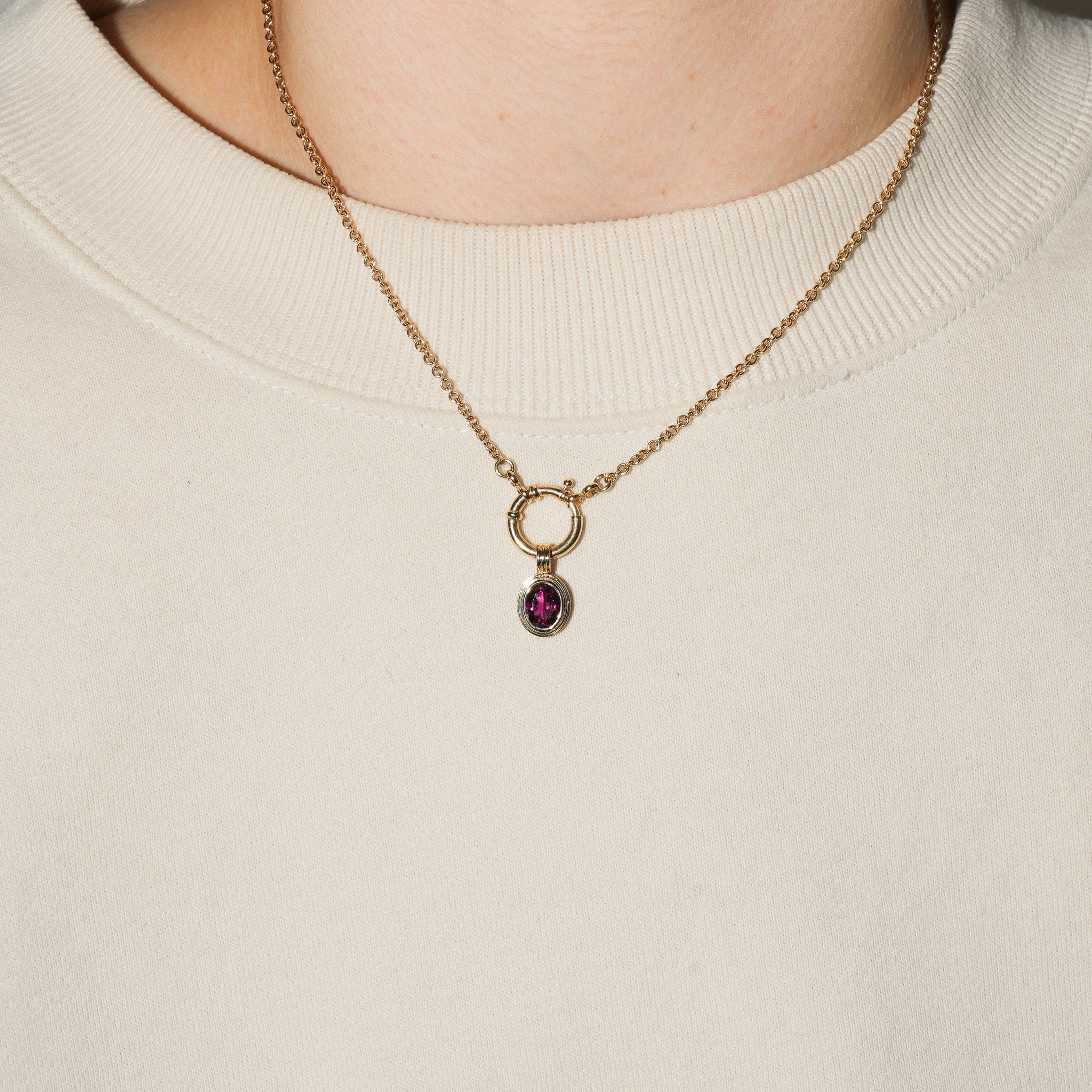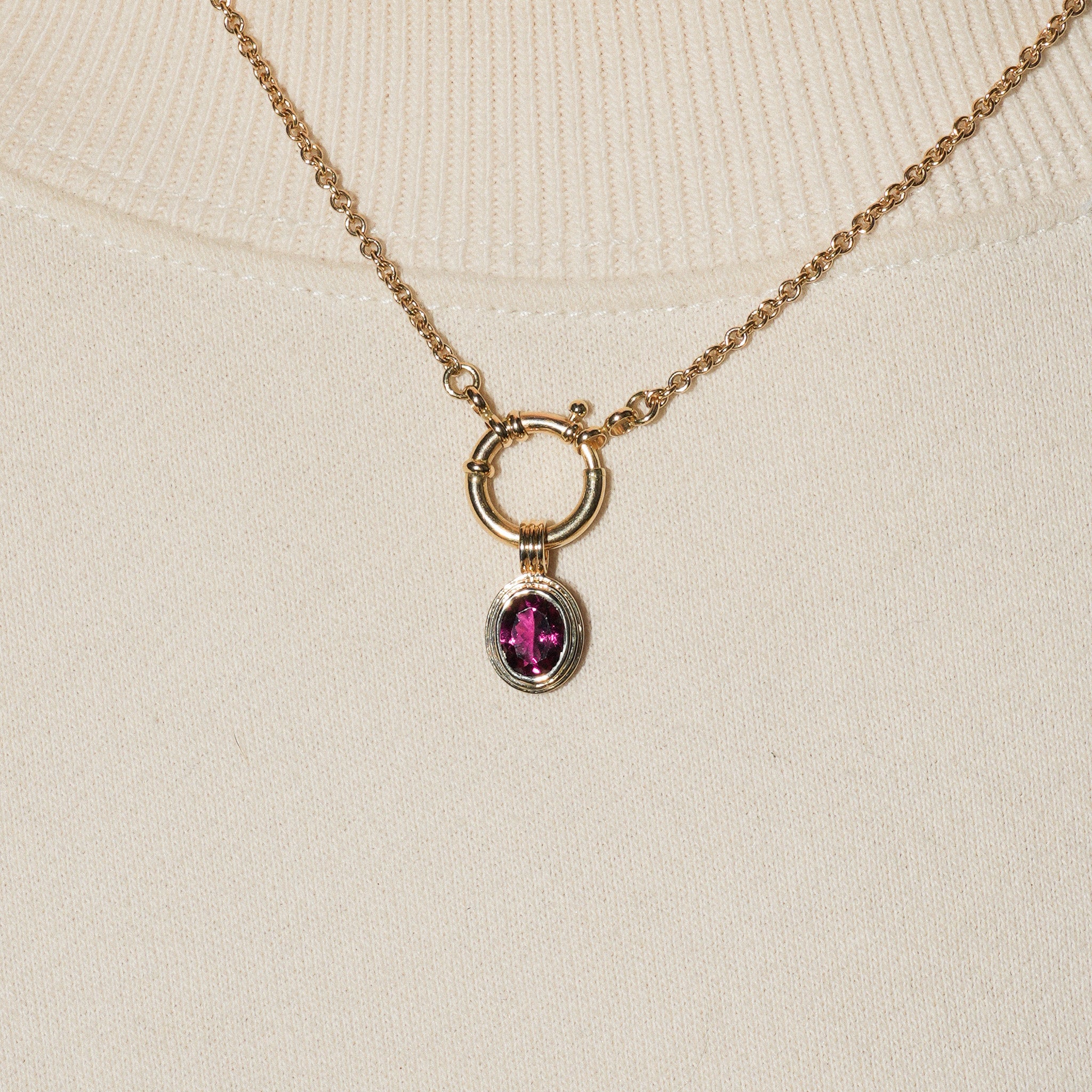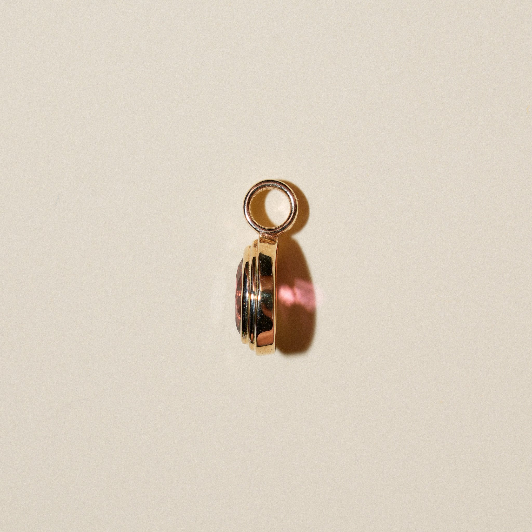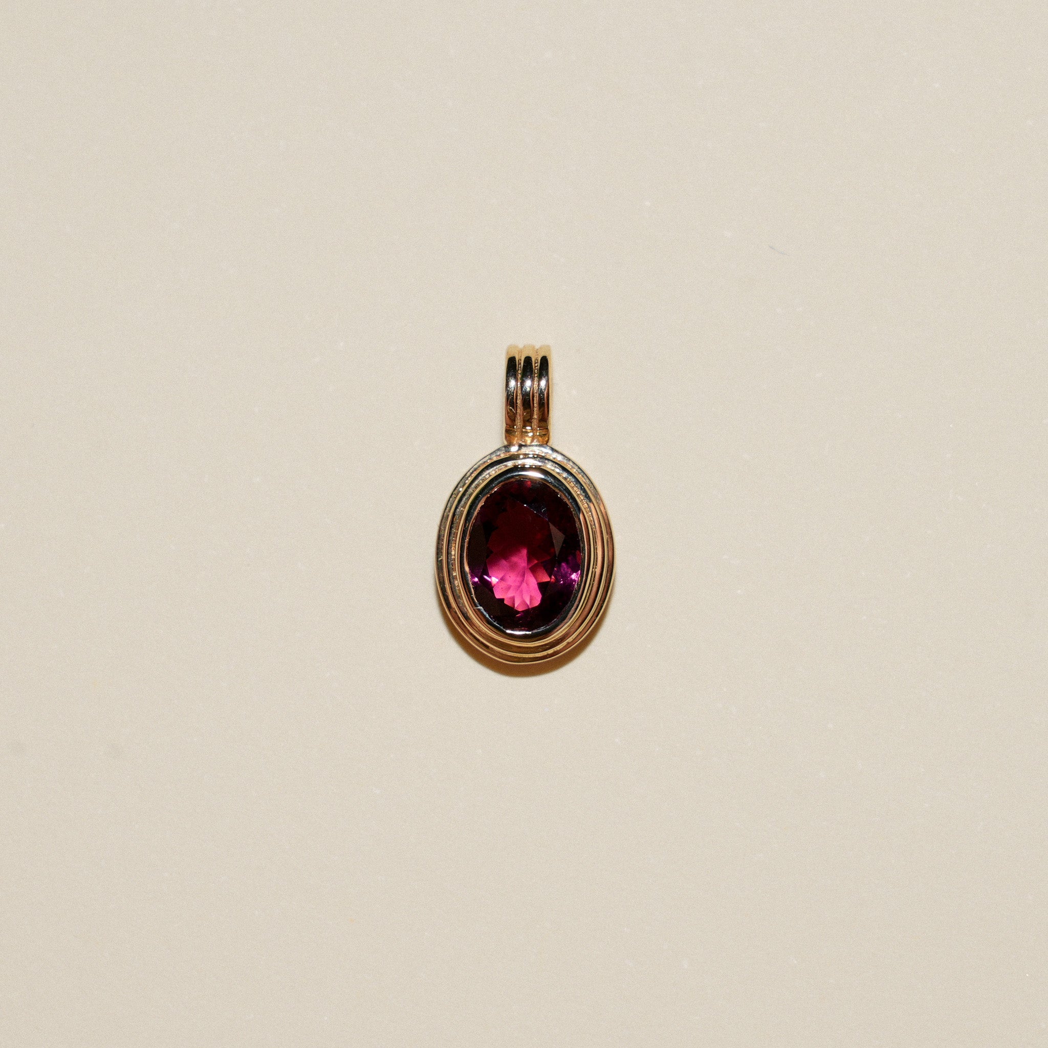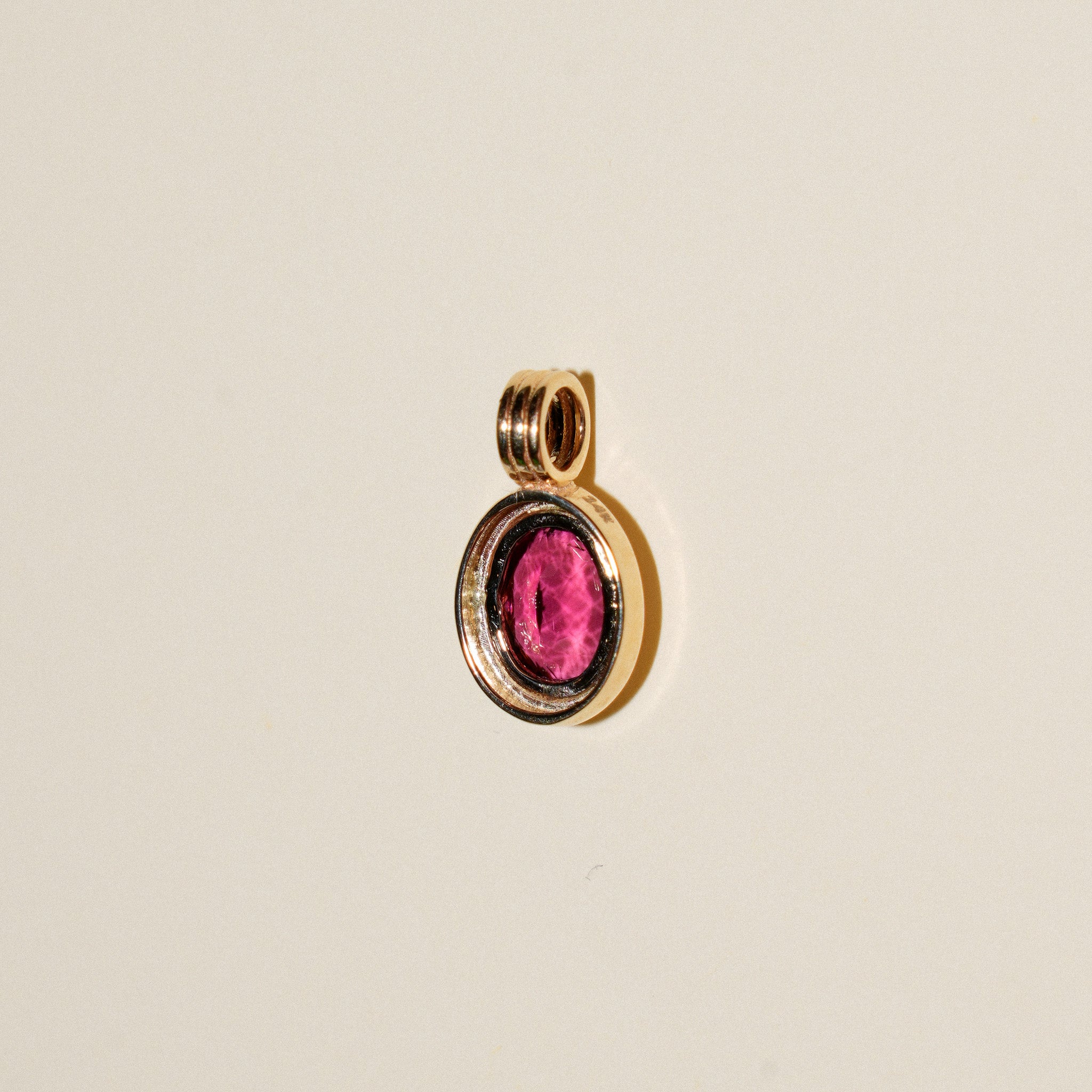Cerise Pink Tourmaline Triple Oval Cut Charm in Yellow 14k Gold