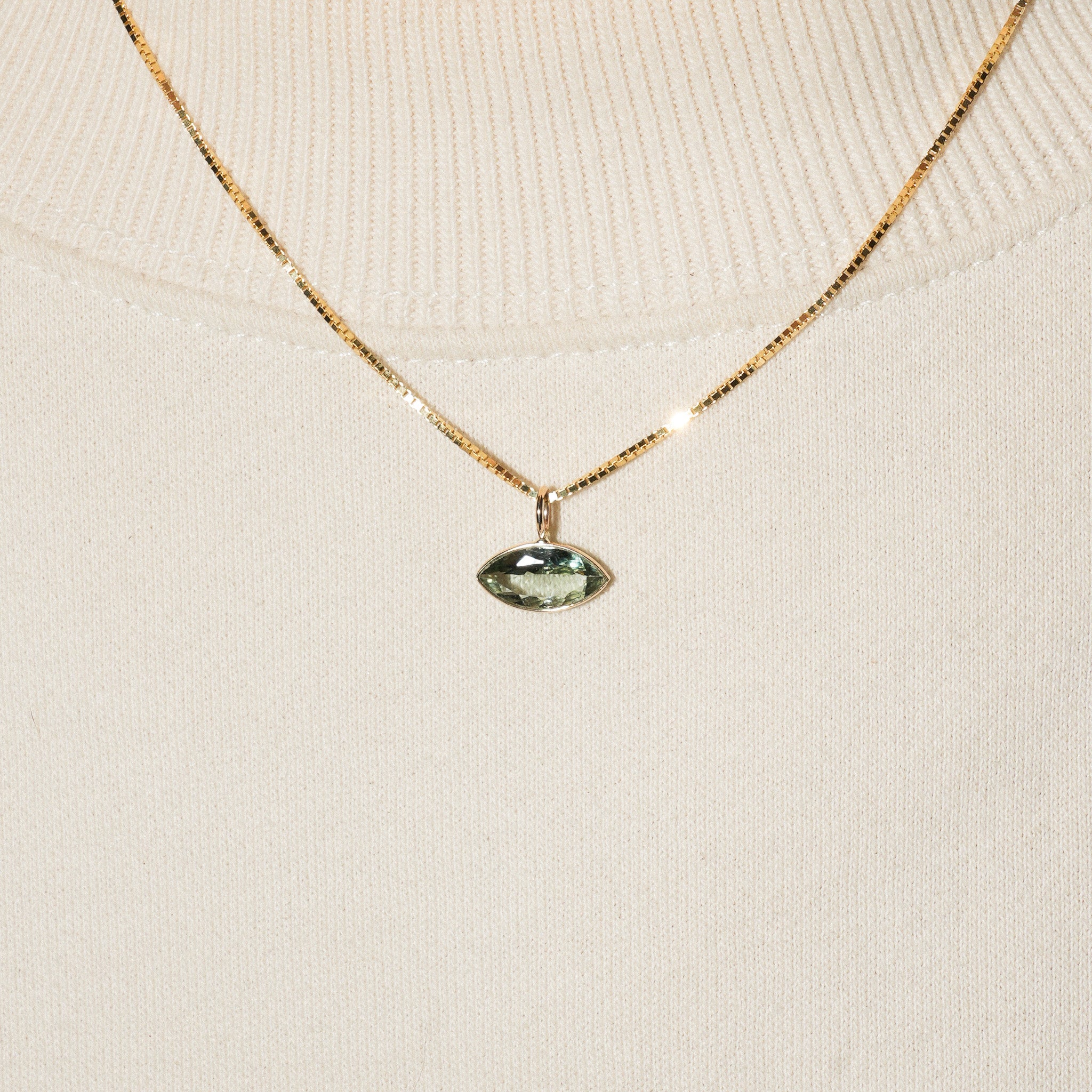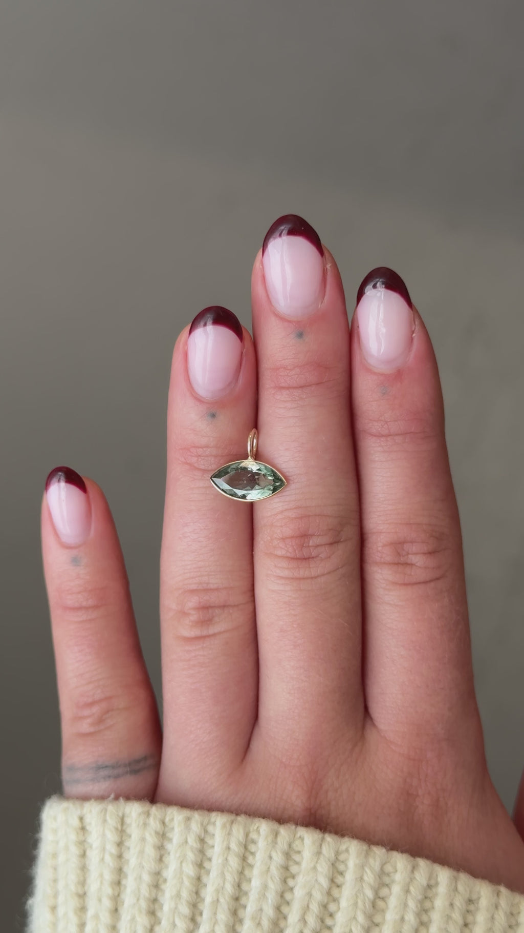 Hushed Green Tourmaline East to West Marquise Cut Charm in Yellow 14k Gold