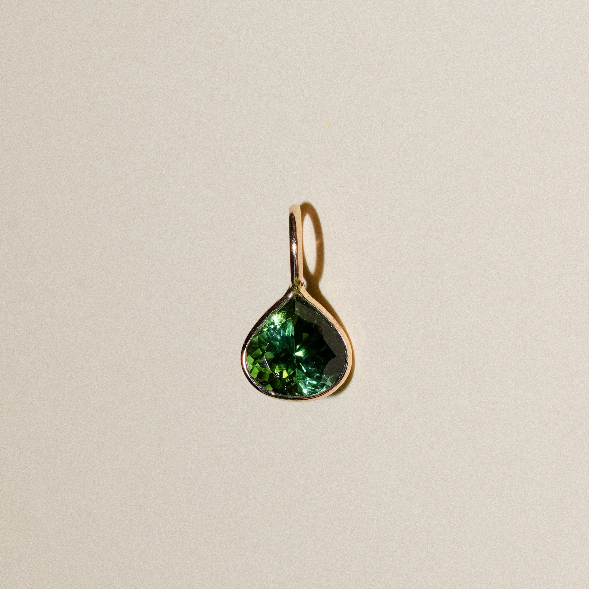 Eden Green Tourmaline Pear Cut Charm in Yellow 14k Gold
