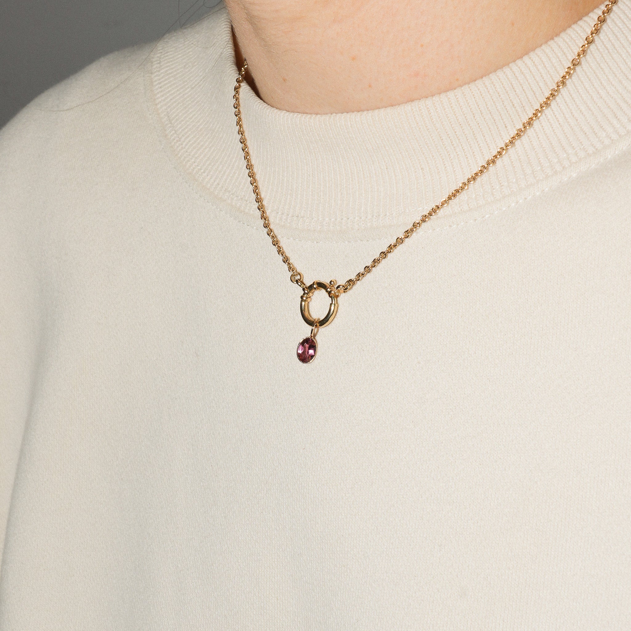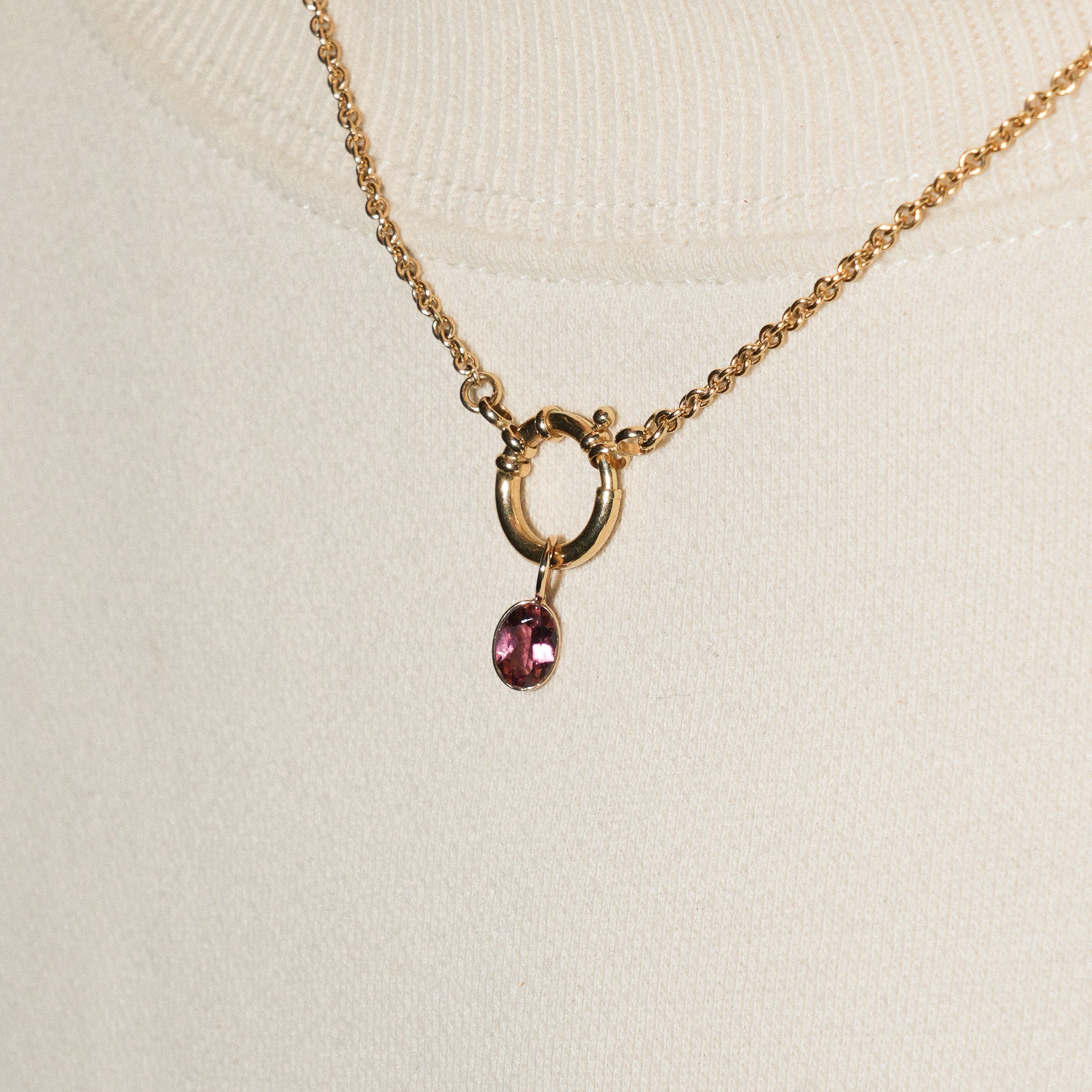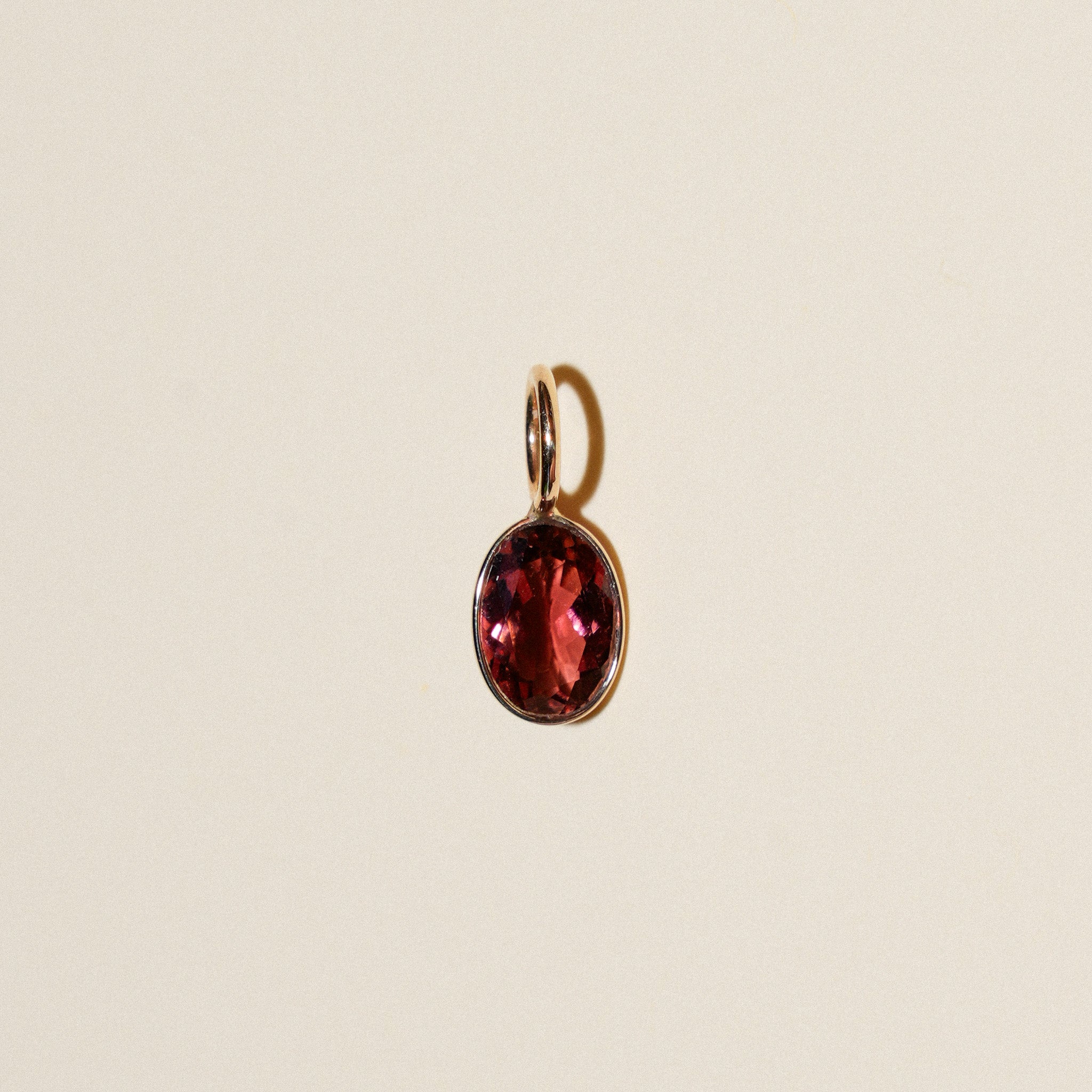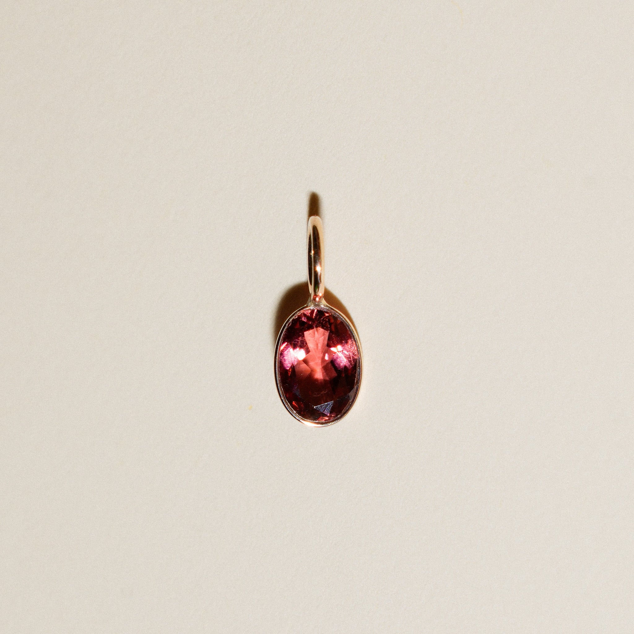 Party Punch Pink Tourmaline Oval Cut Charm in Yellow 14k Gold