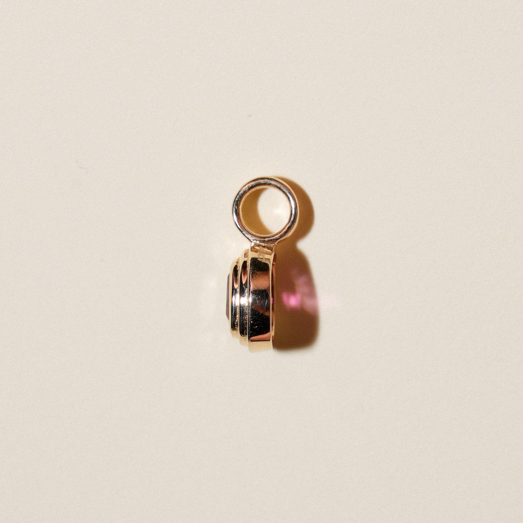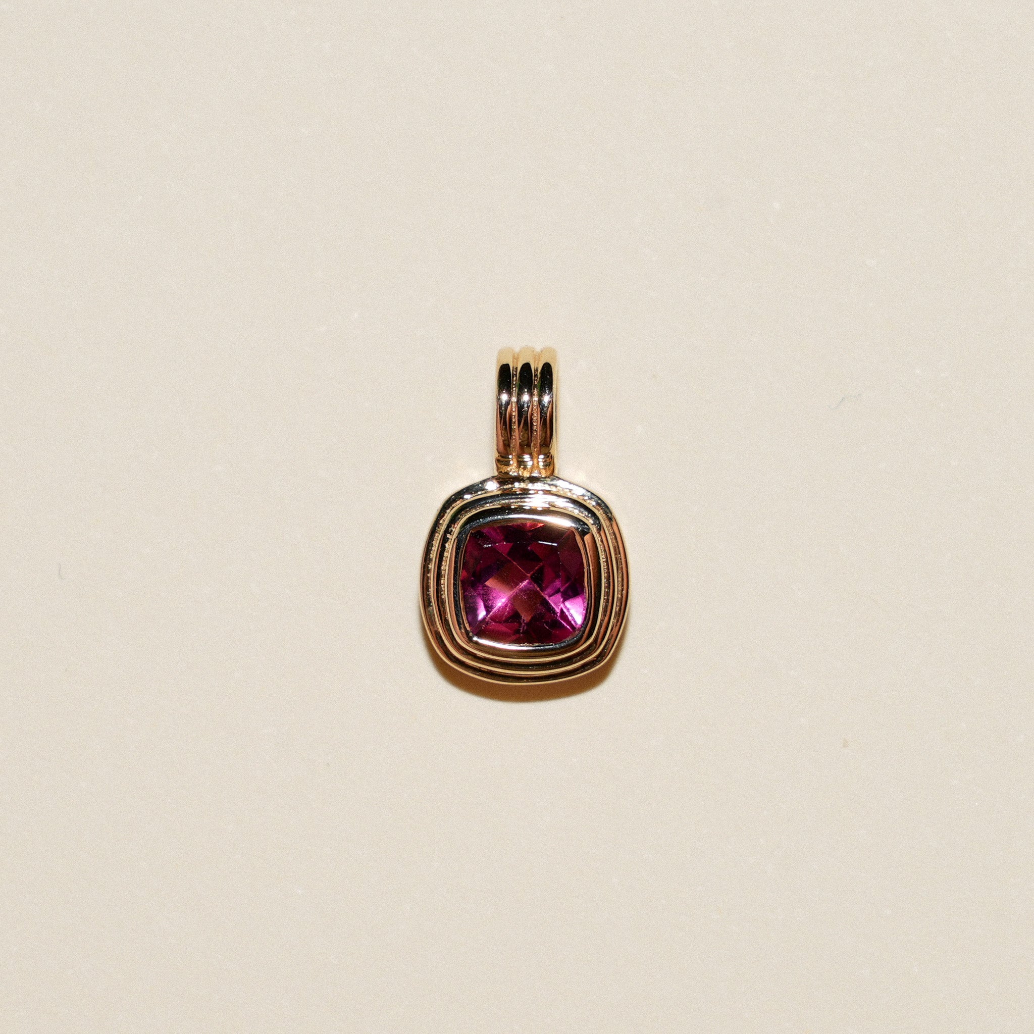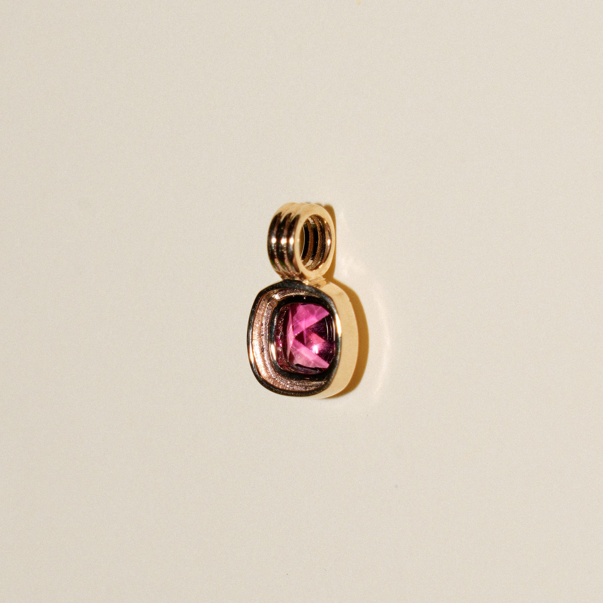 Pink Yarrow Tourmaline Triple Cushion Cut Charm in Yellow 14k Gold