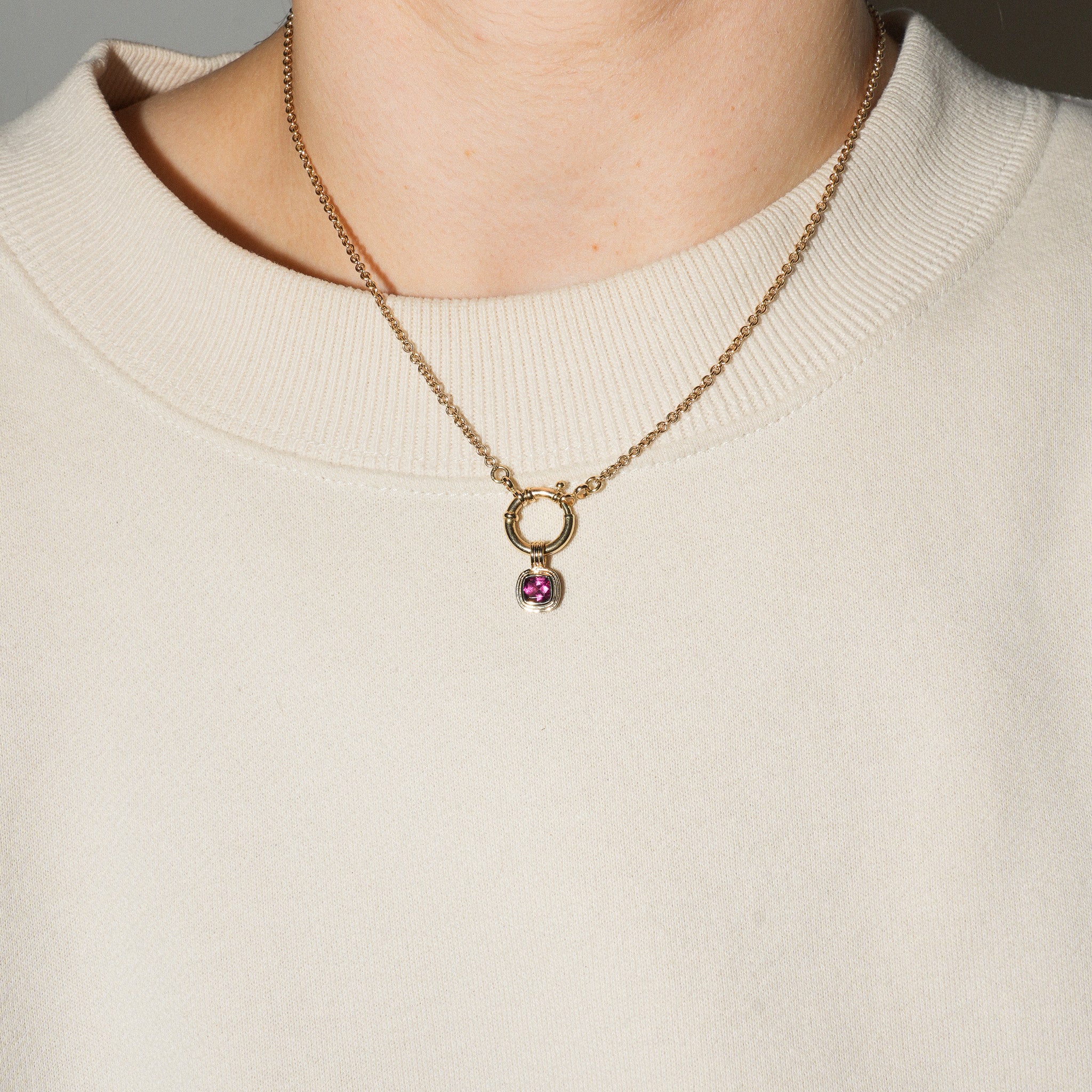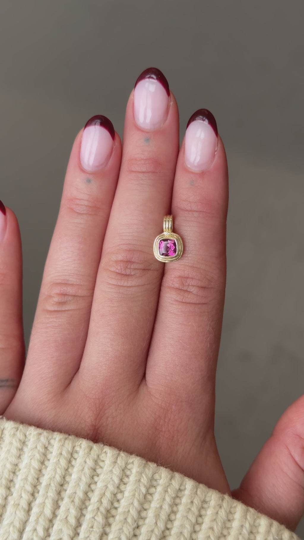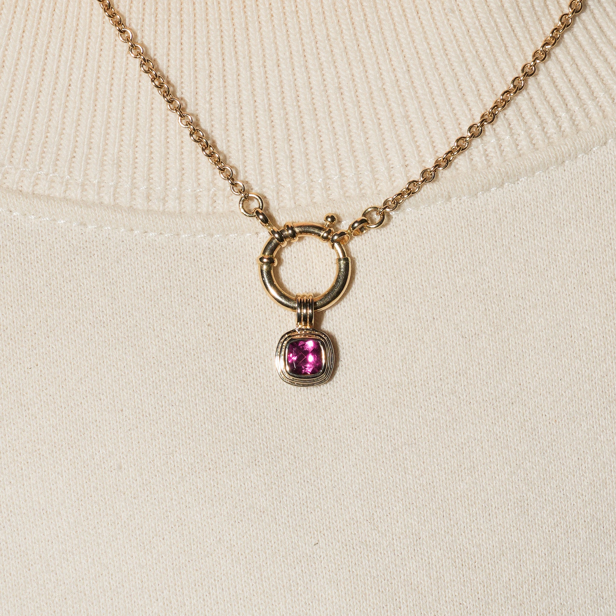 Pink Yarrow Tourmaline Triple Cushion Cut Charm in Yellow 14k Gold