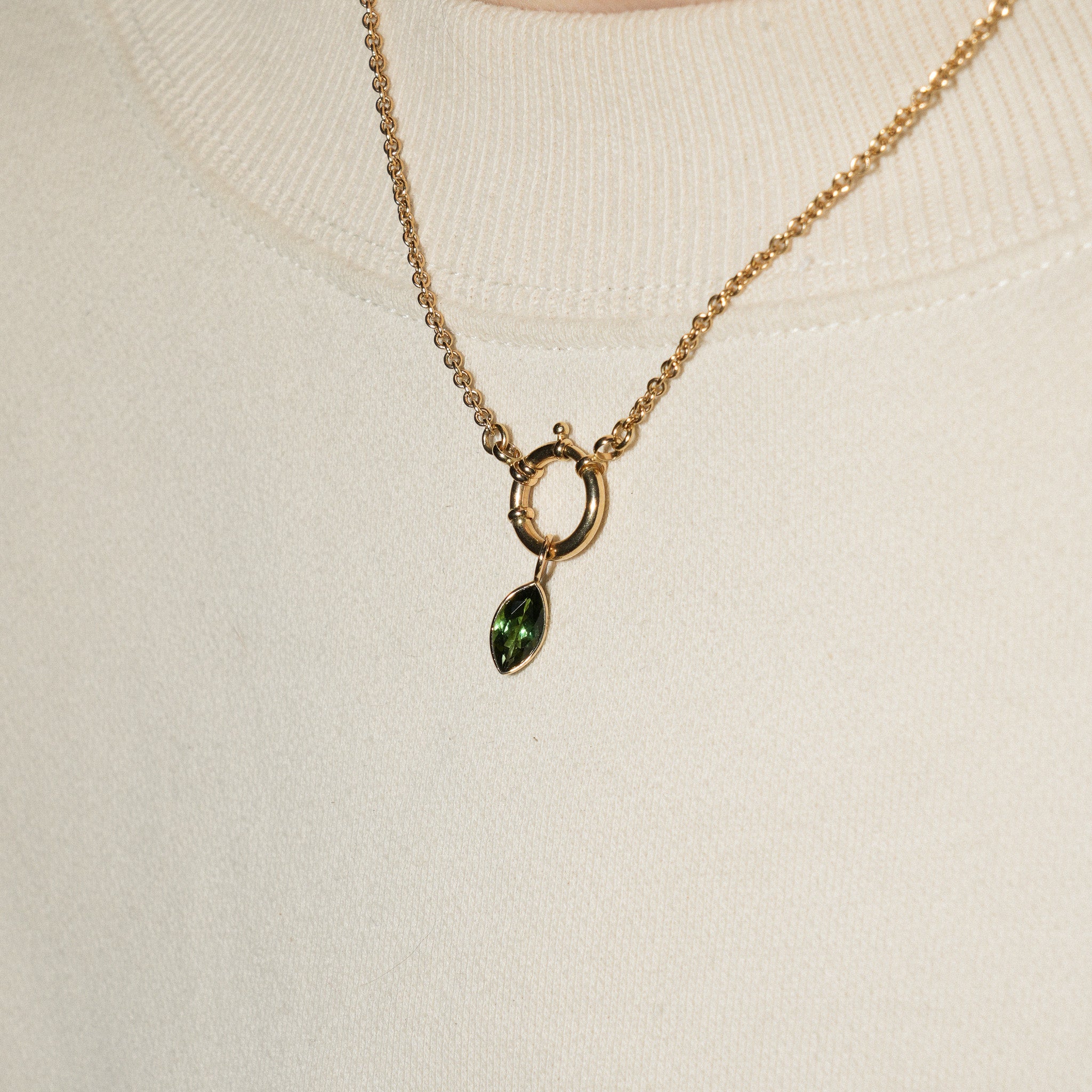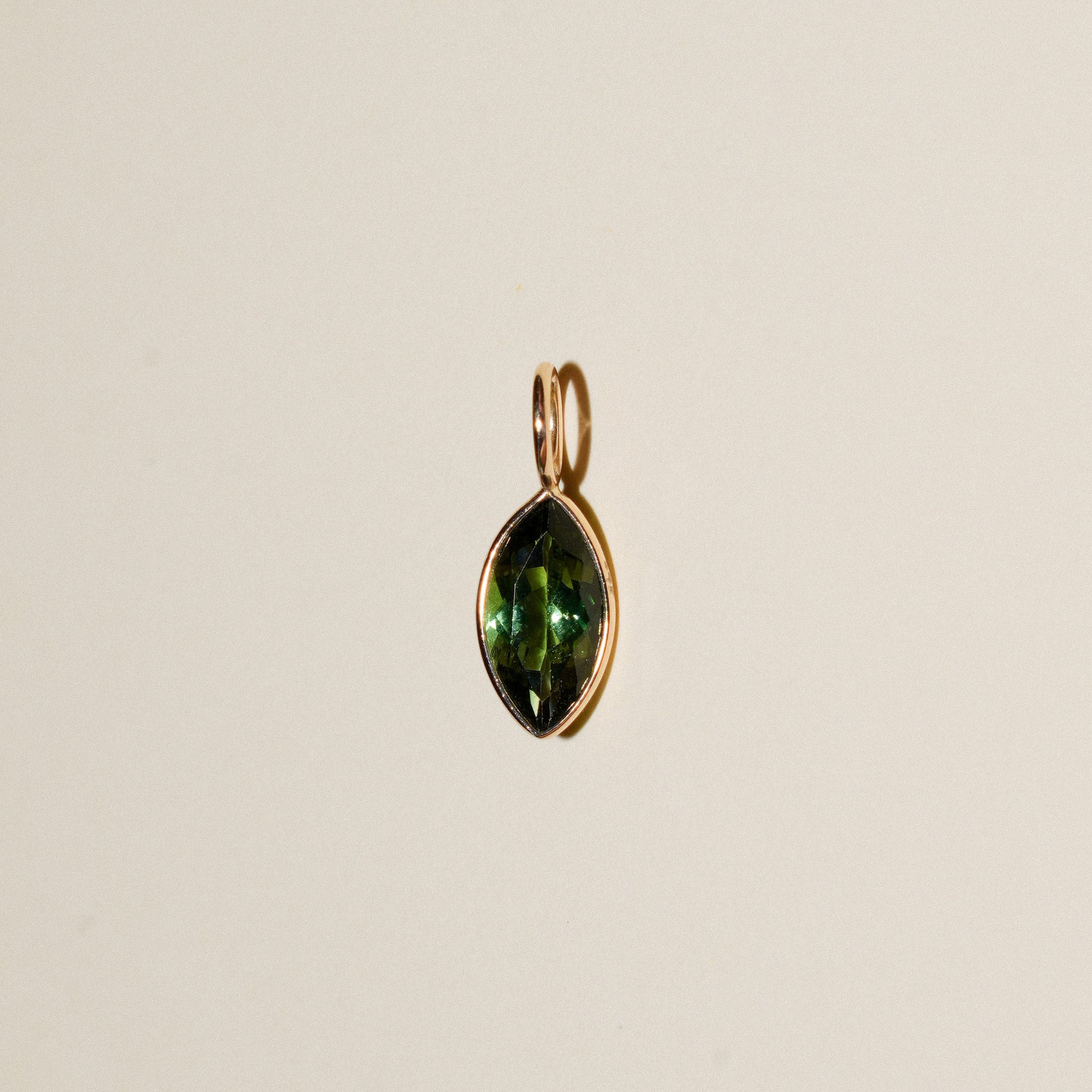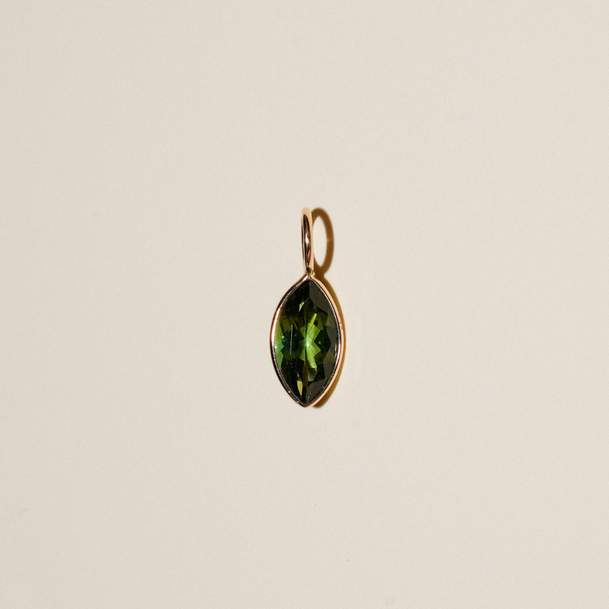 Sycamore Green Tourmaline Marquise Cut Charm in Yellow 14k Gold