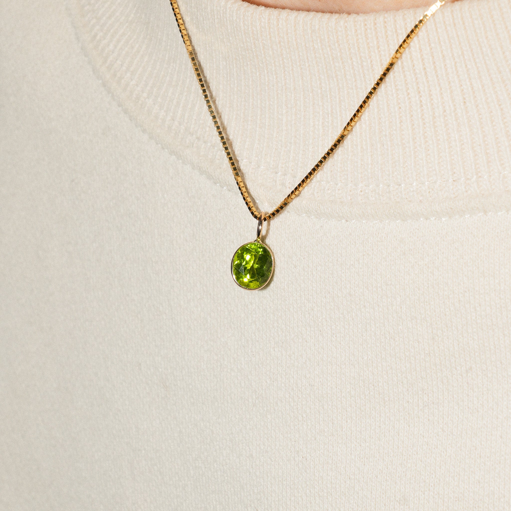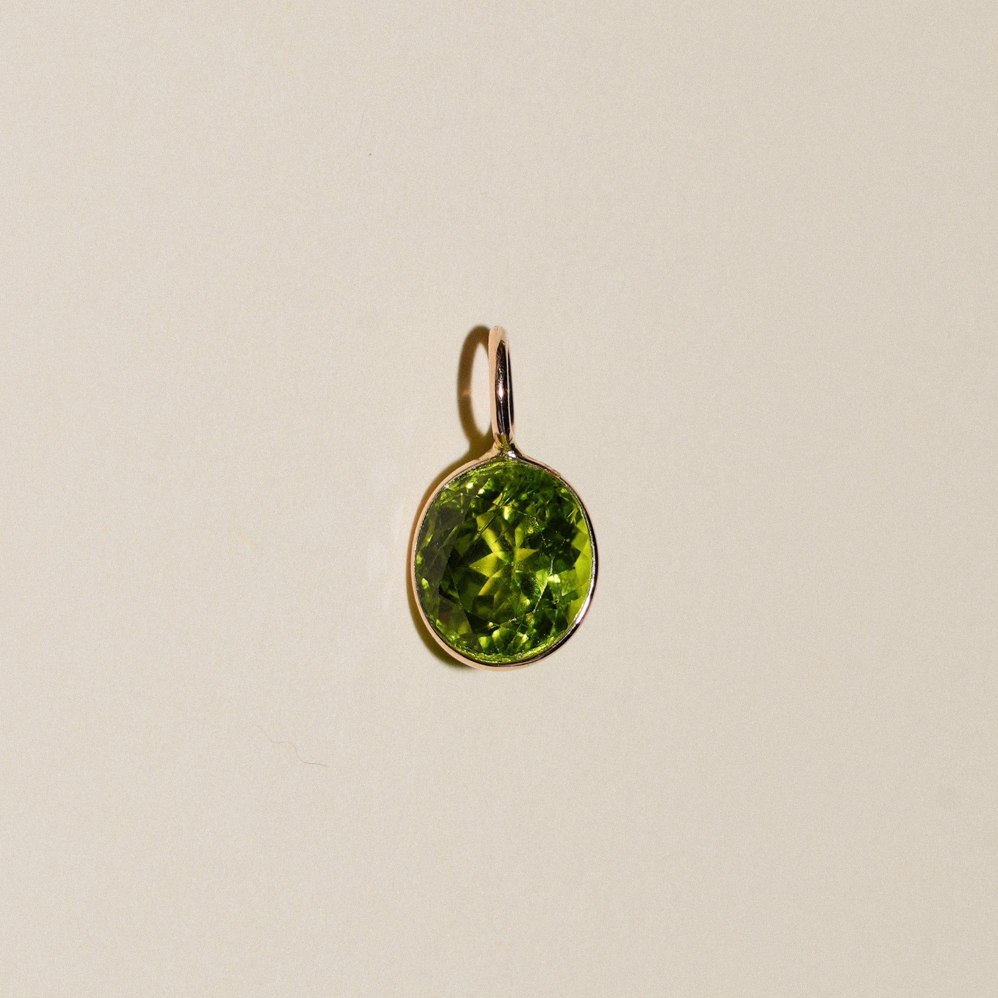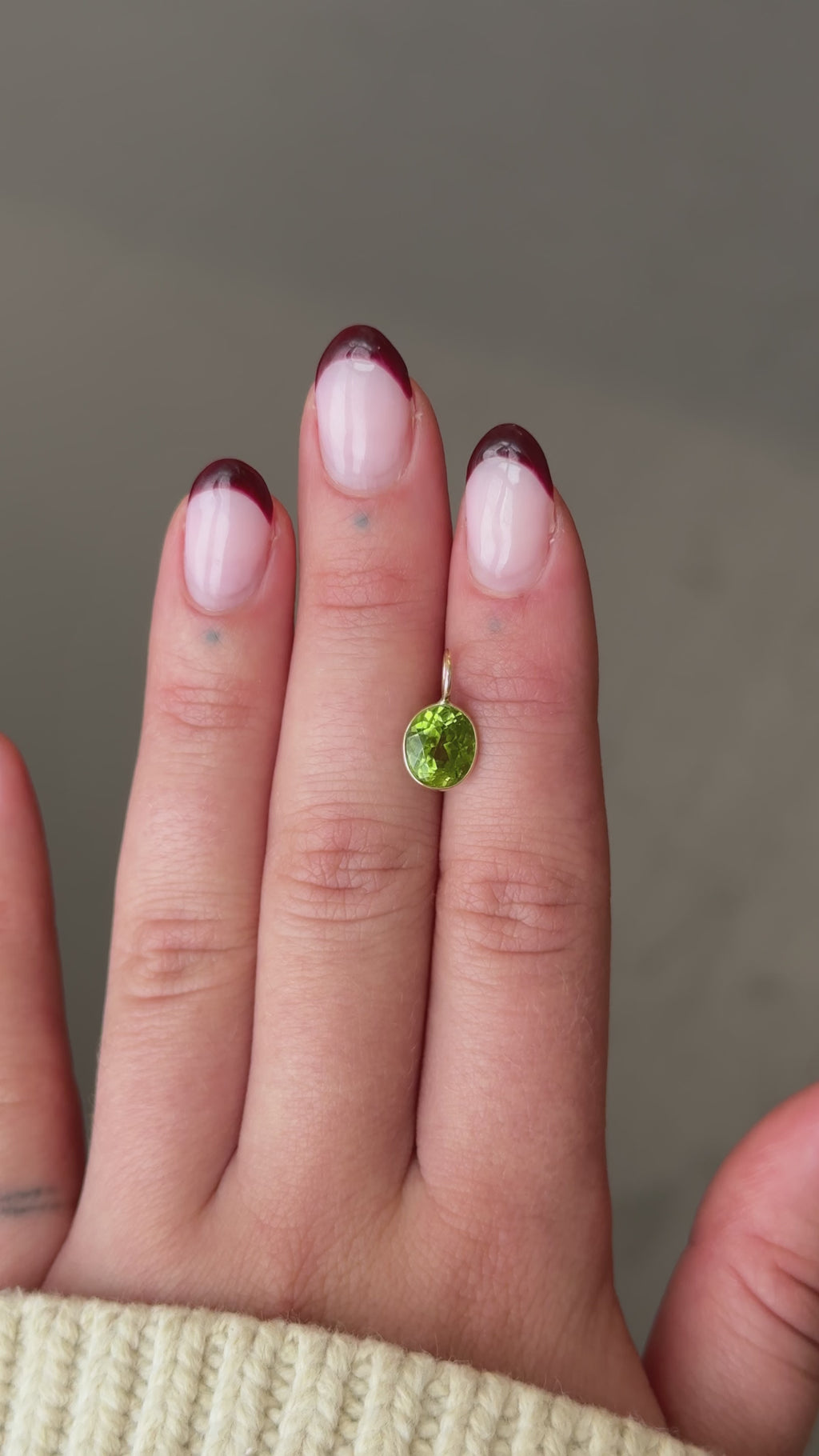 White Grape Peridot Oval Cut Charm in Yellow 14k Gold