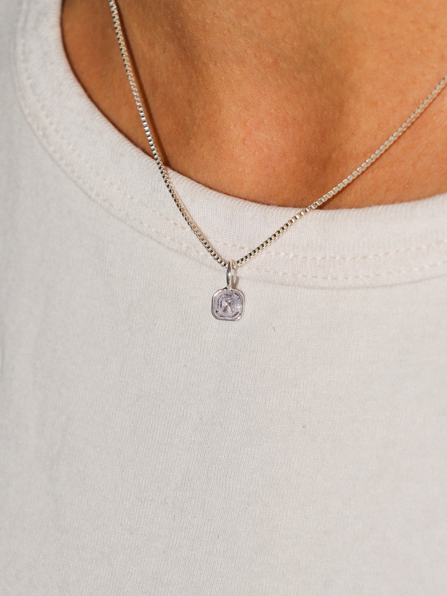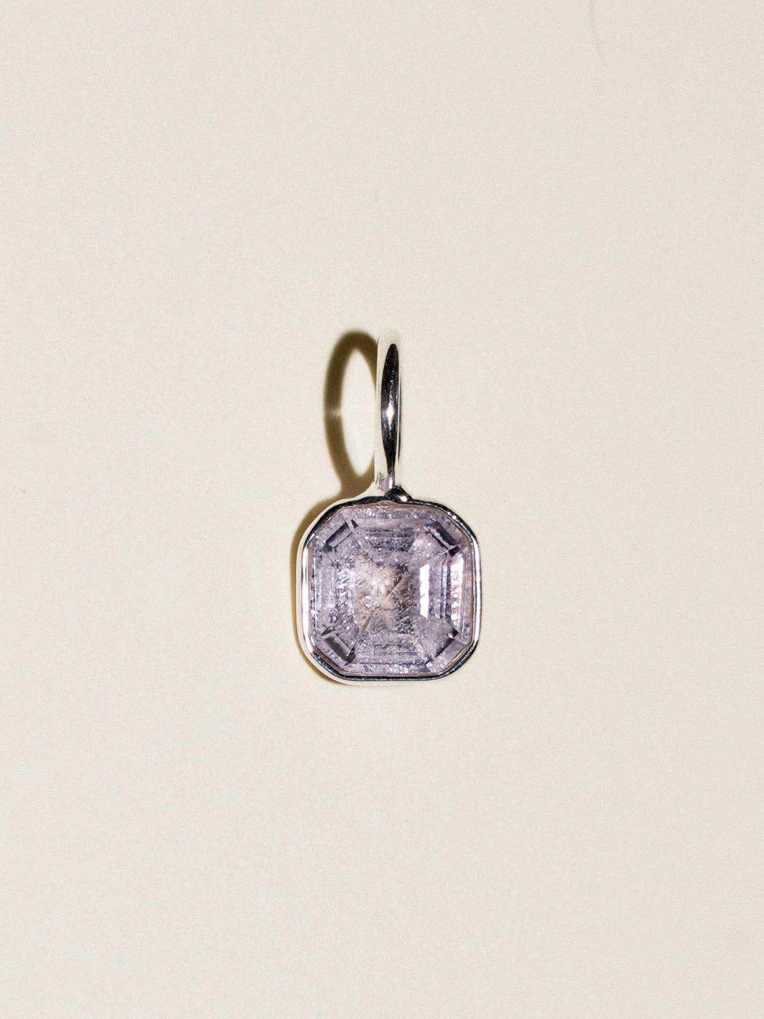 Snow Kiss Spinel Square Cut Charm in Sterling Silver