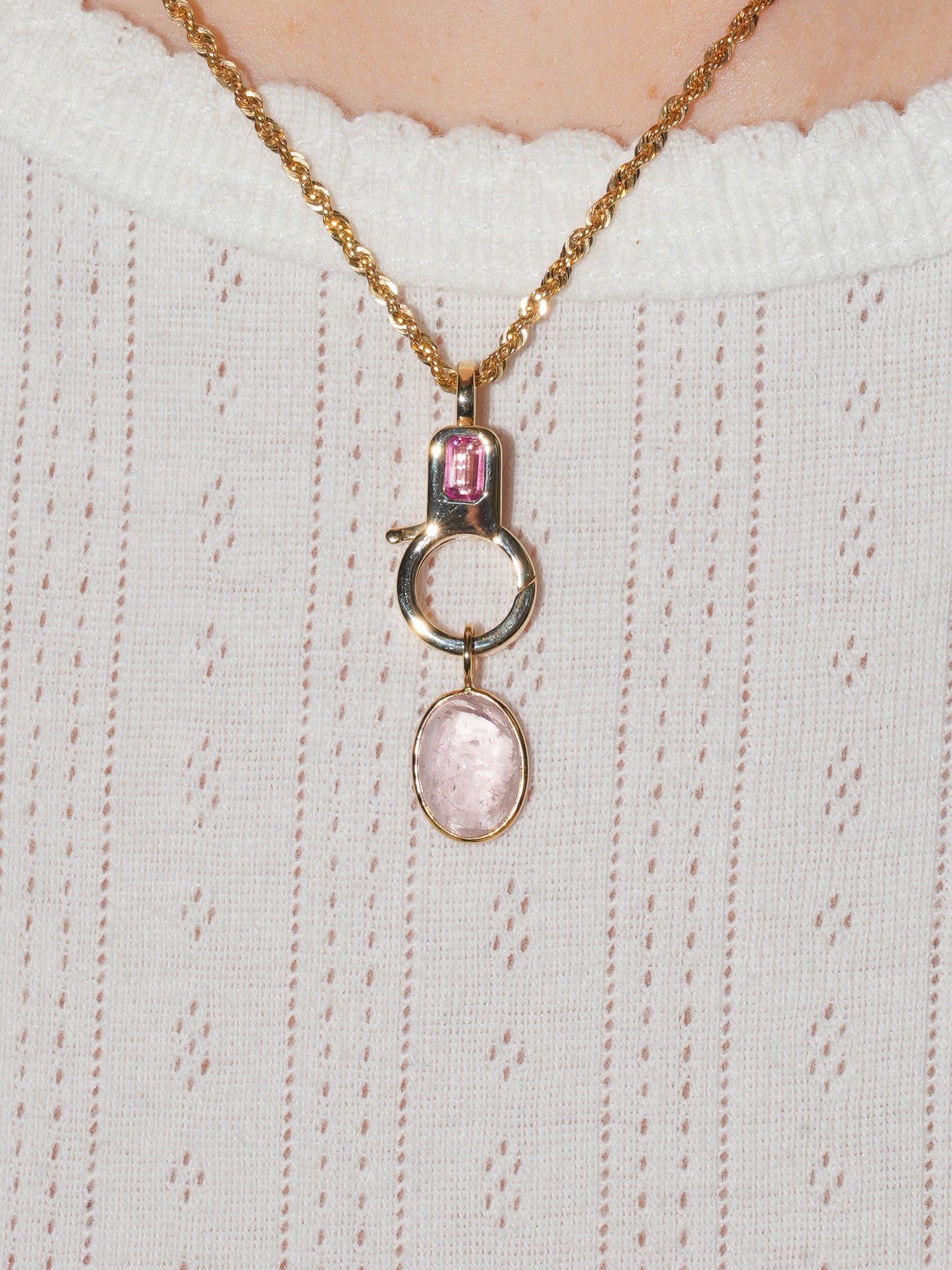 Angelic Morganite Oval Cabochon Charm in Yellow 14k Gold