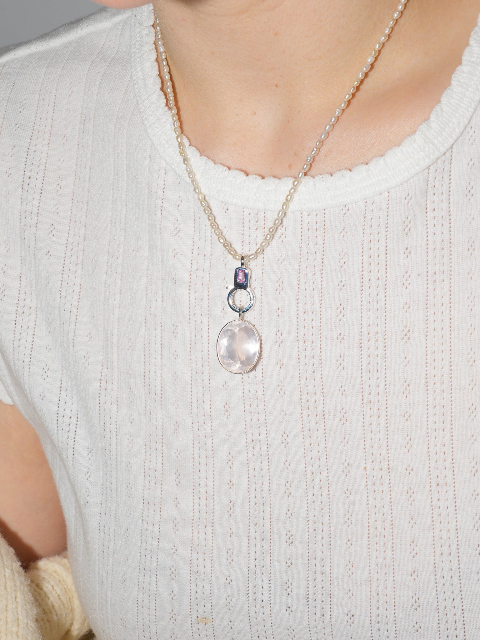 Cherish Rose Quartz Oval Cut Charm in Sterling Silver