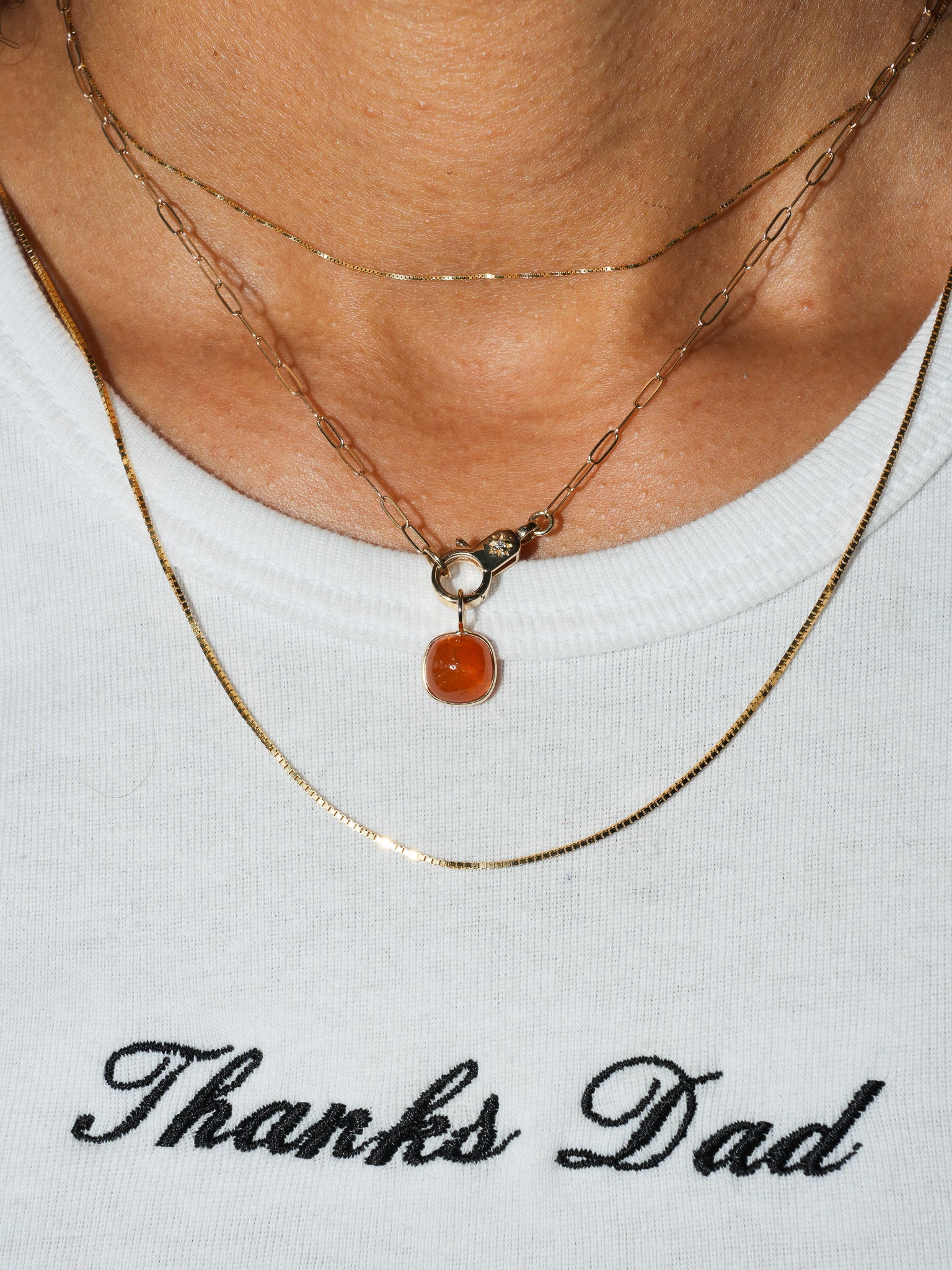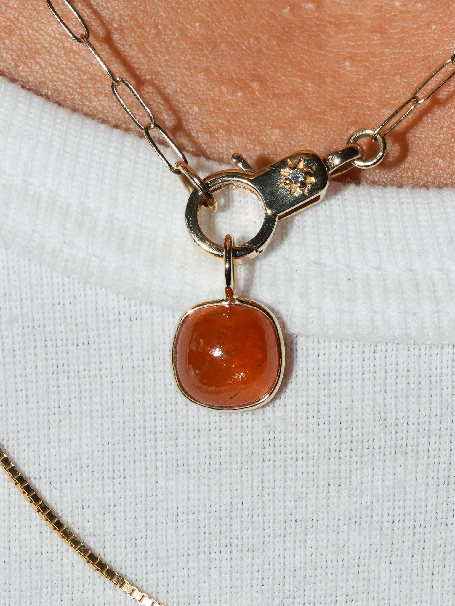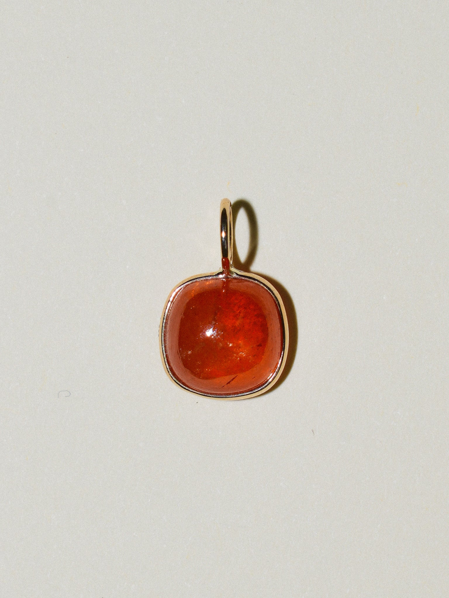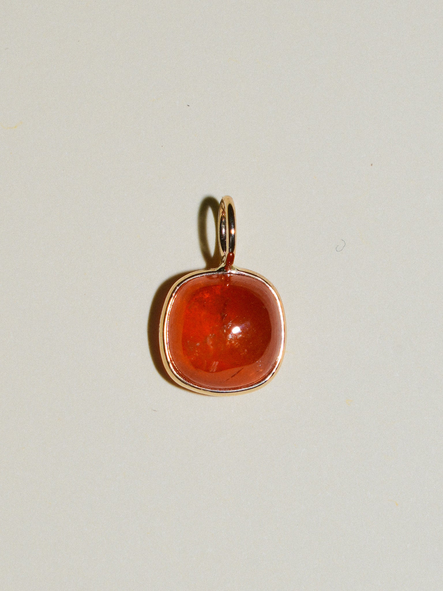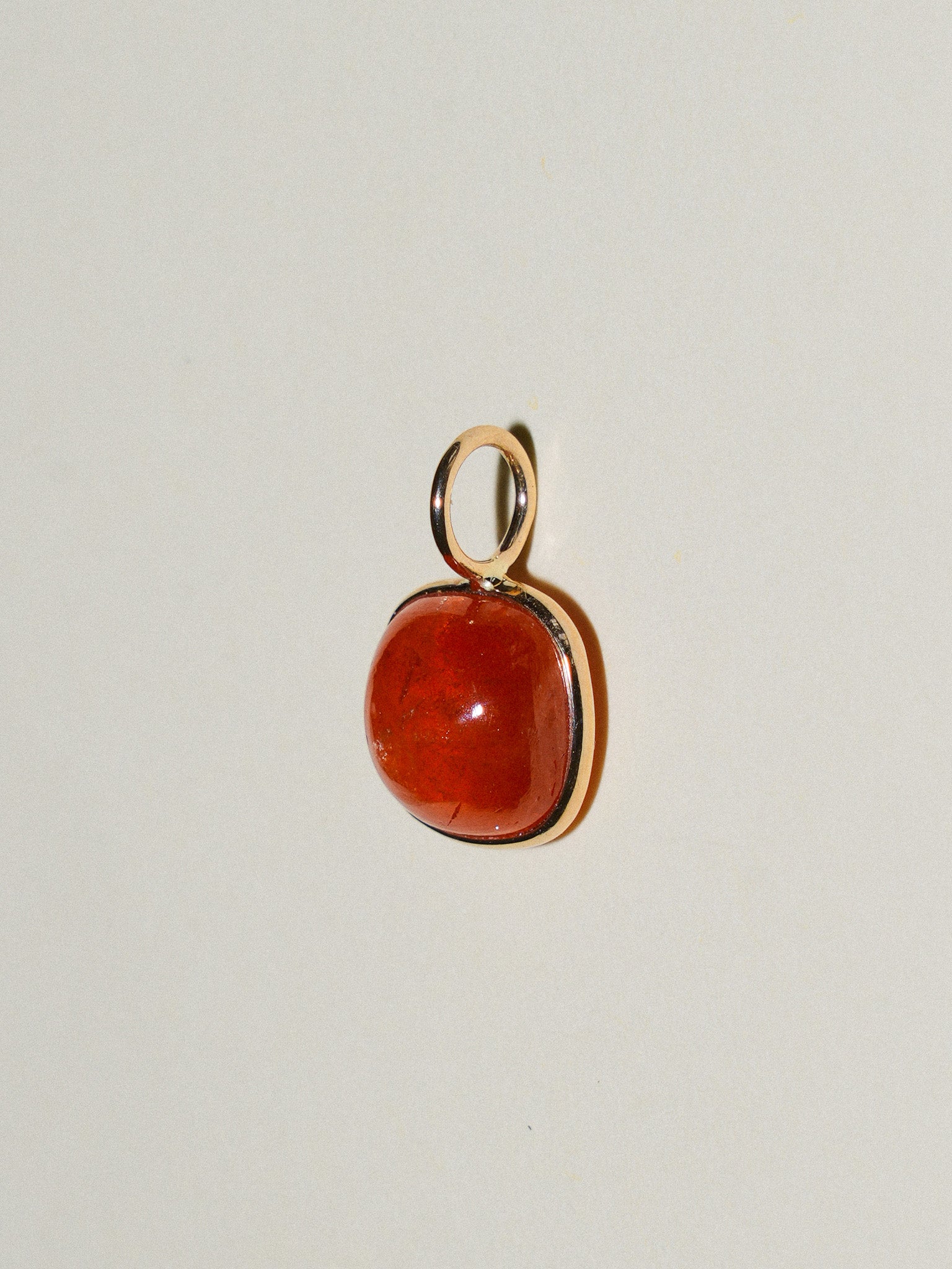 Gelee Orange Garnet Cushion Cabochon Charm in Yellow 14k Gold