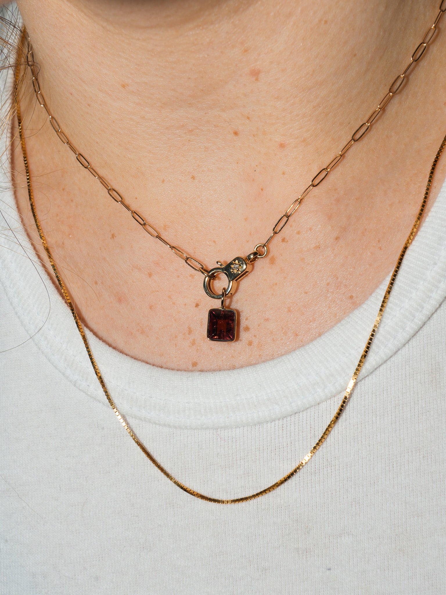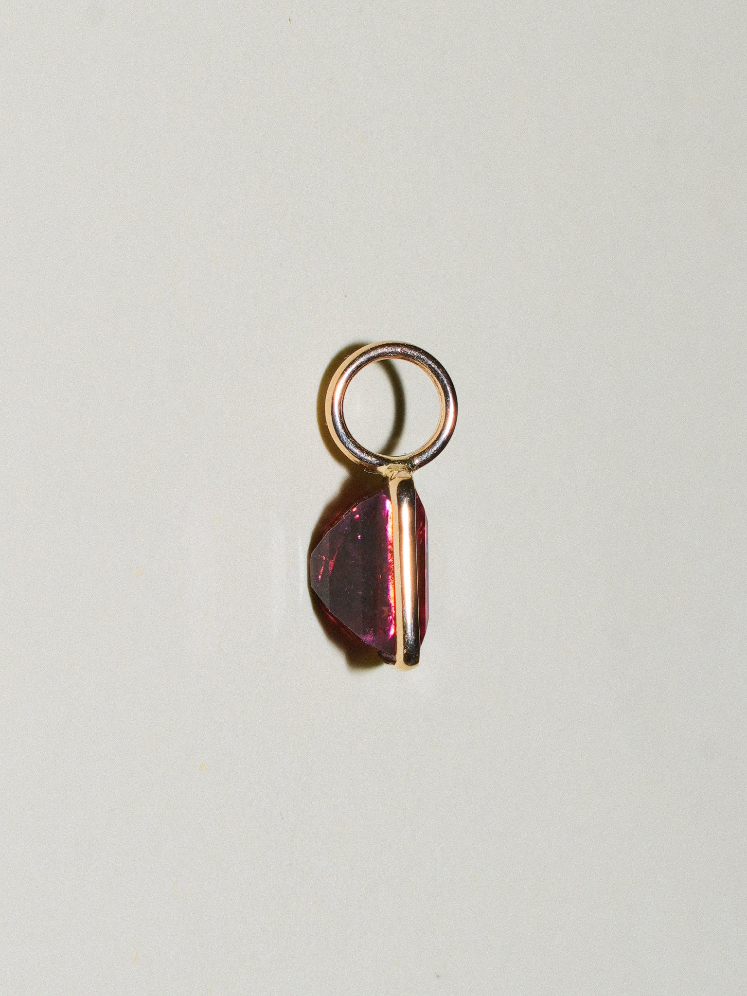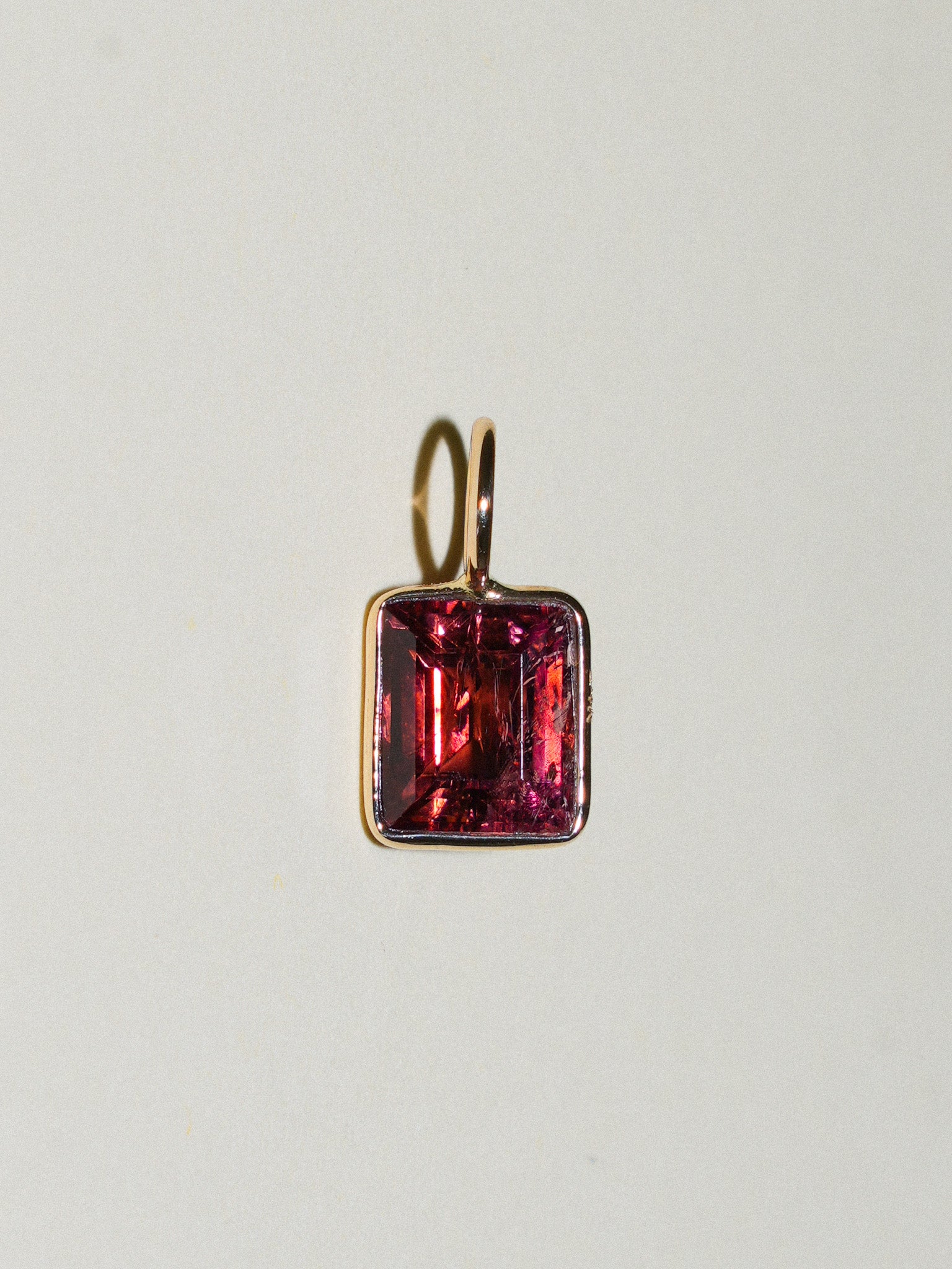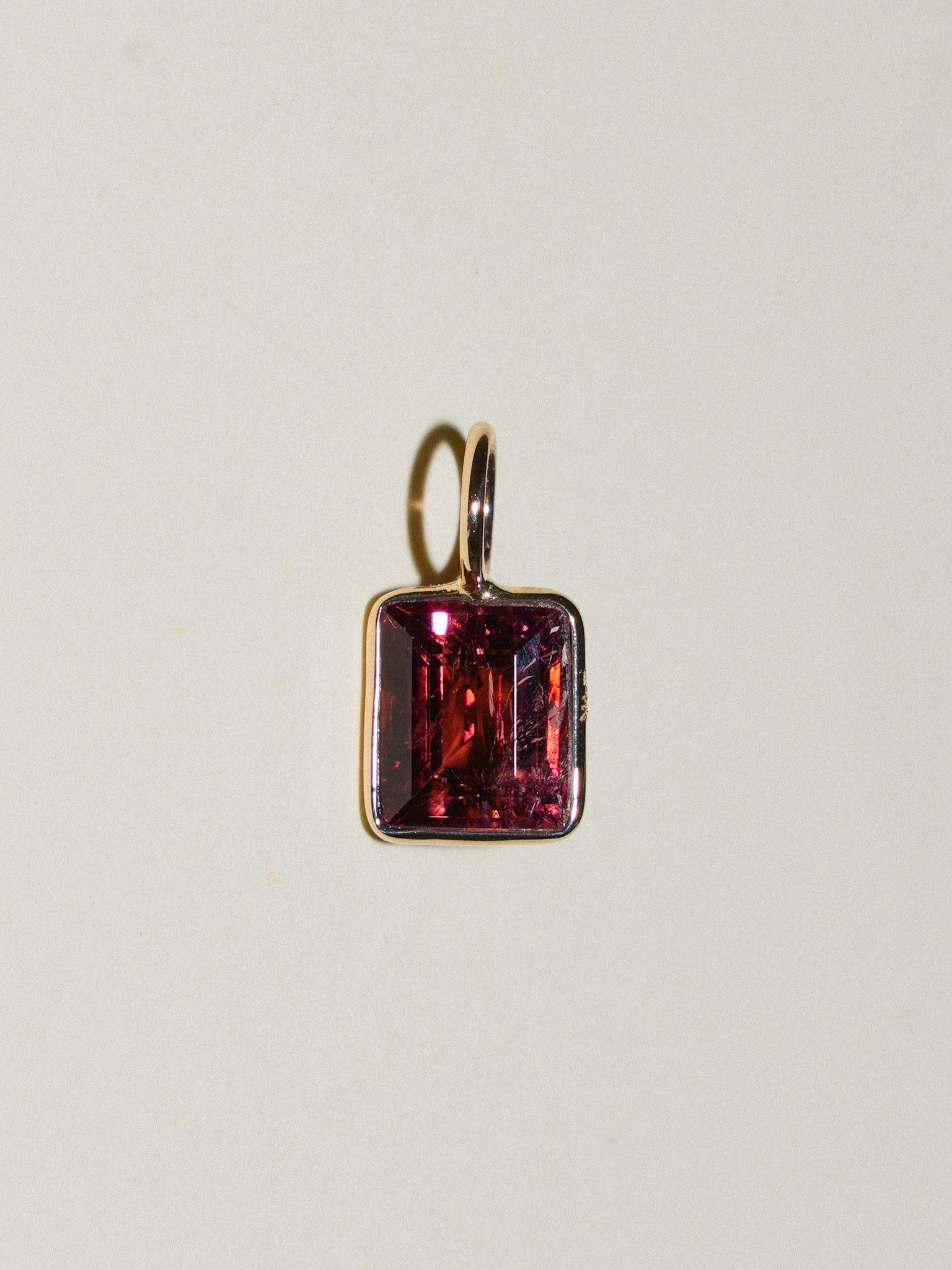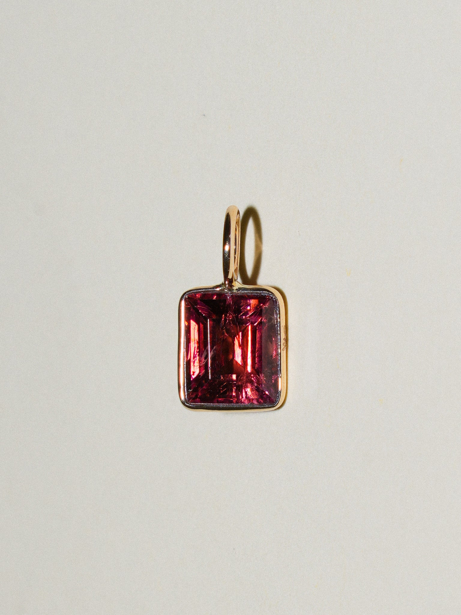 Flip Flop Pink Tourmaline Emerald Cut Charm in Yellow 14k Gold