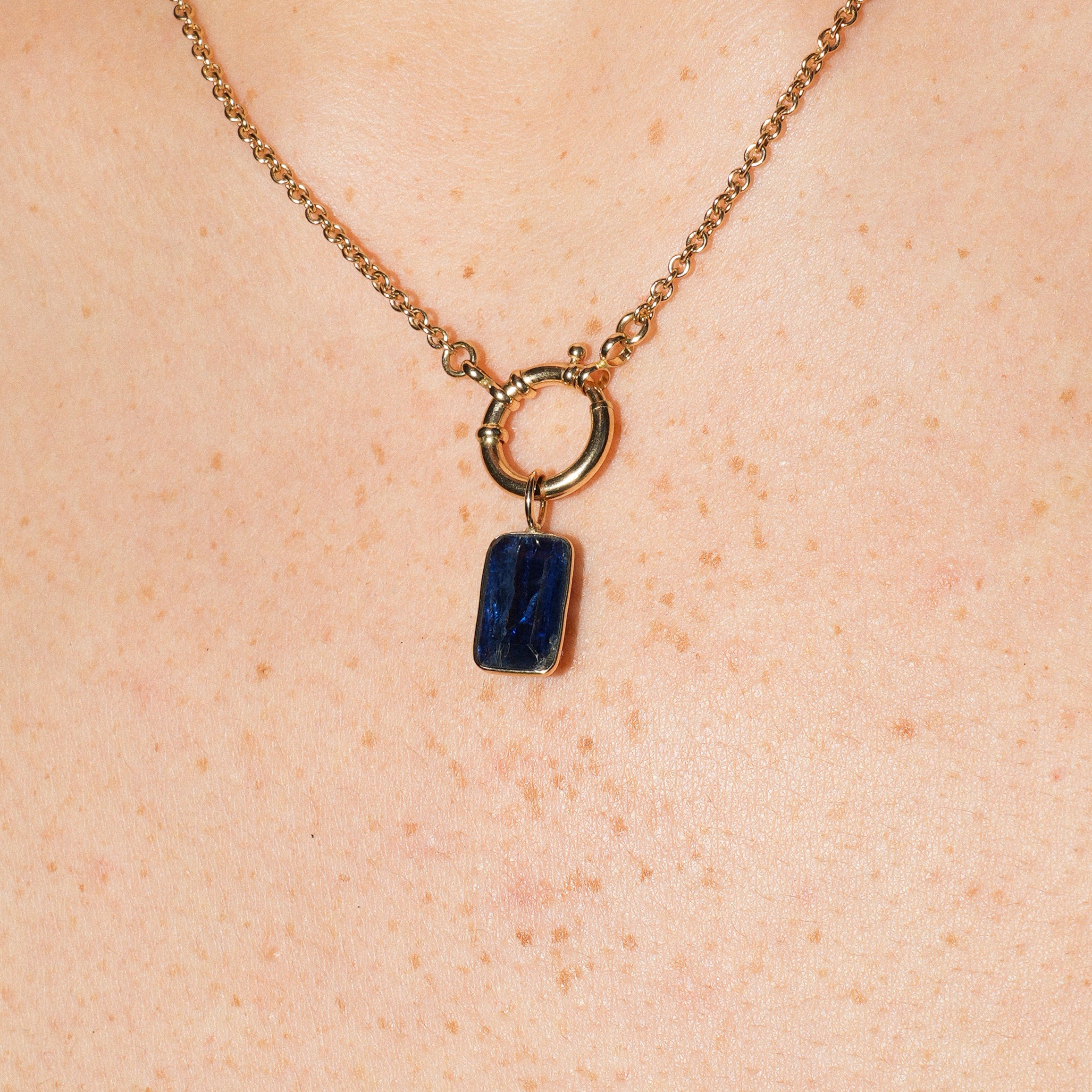 Blue Kyanite Emerald Cut Charm in 14k Yellow Gold