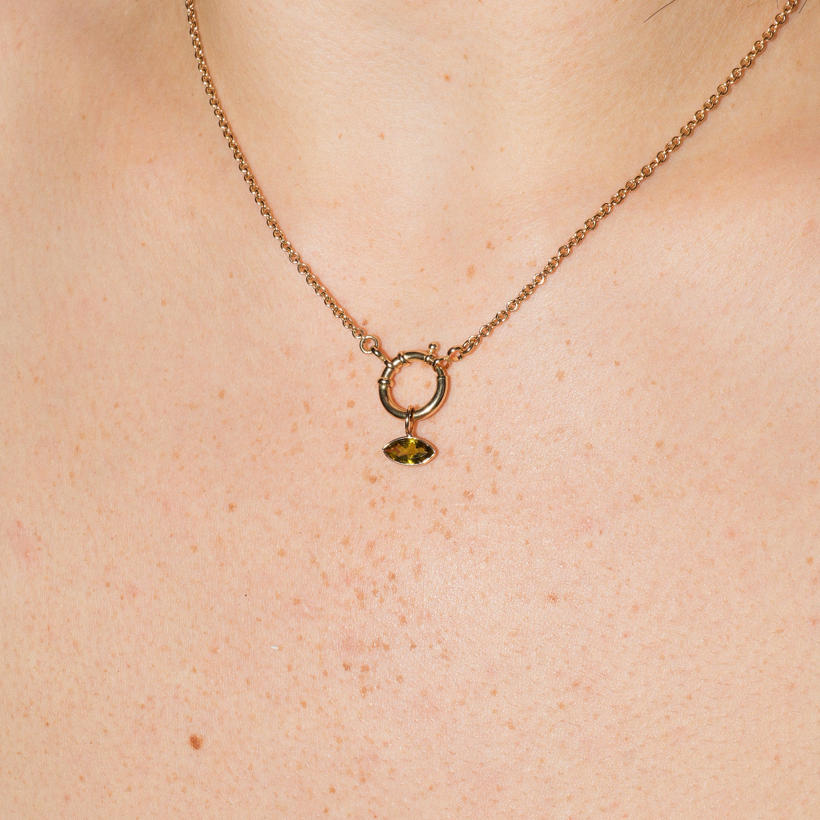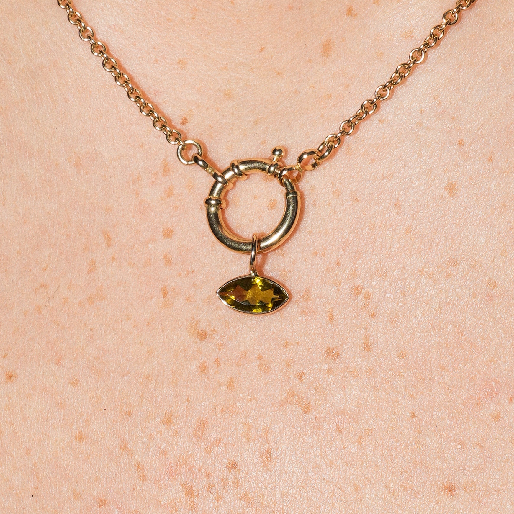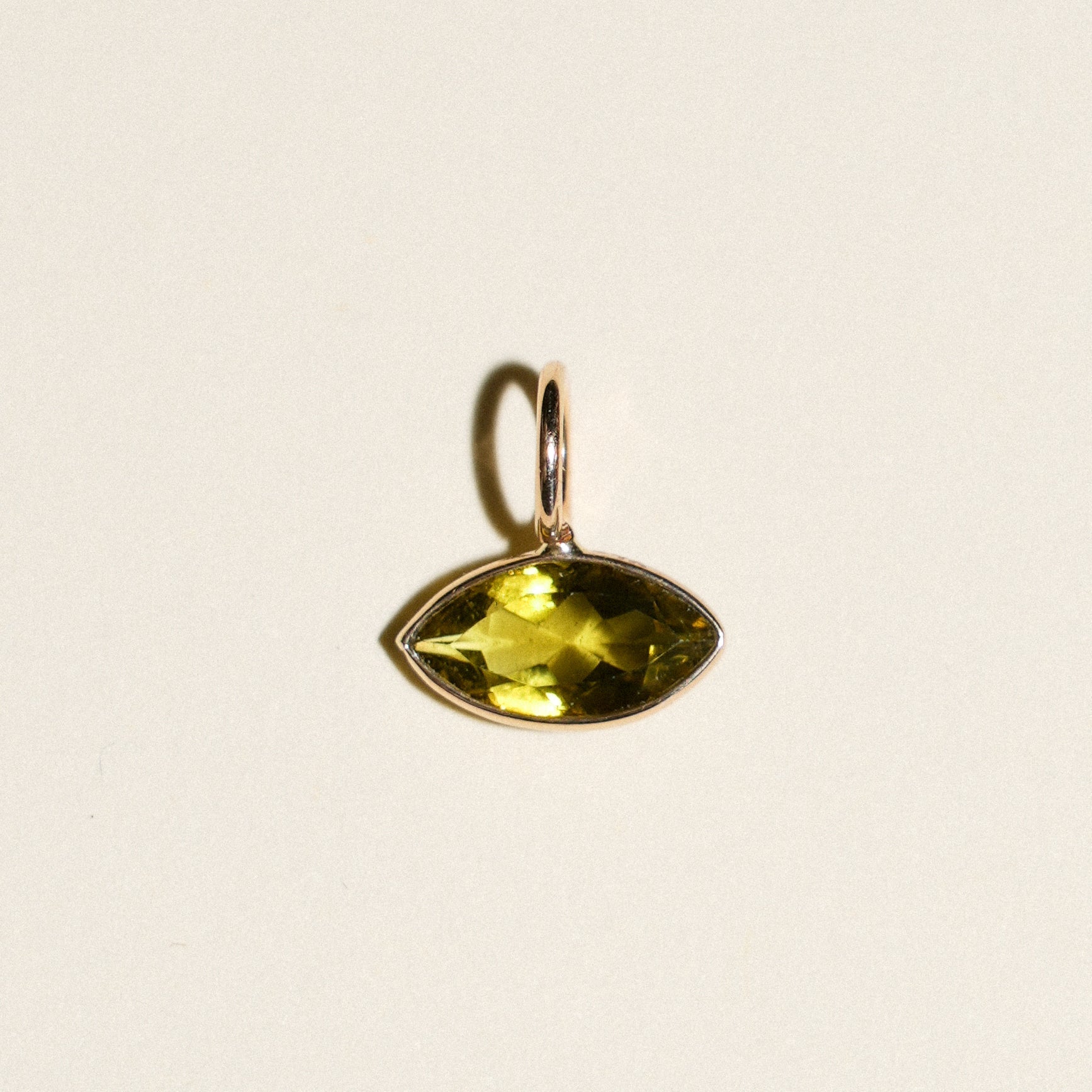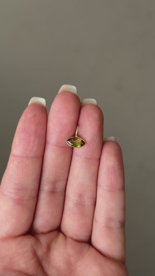 Avocado Green Tourmaline East West Marquise Cut Charm in 14k Yellow Gold