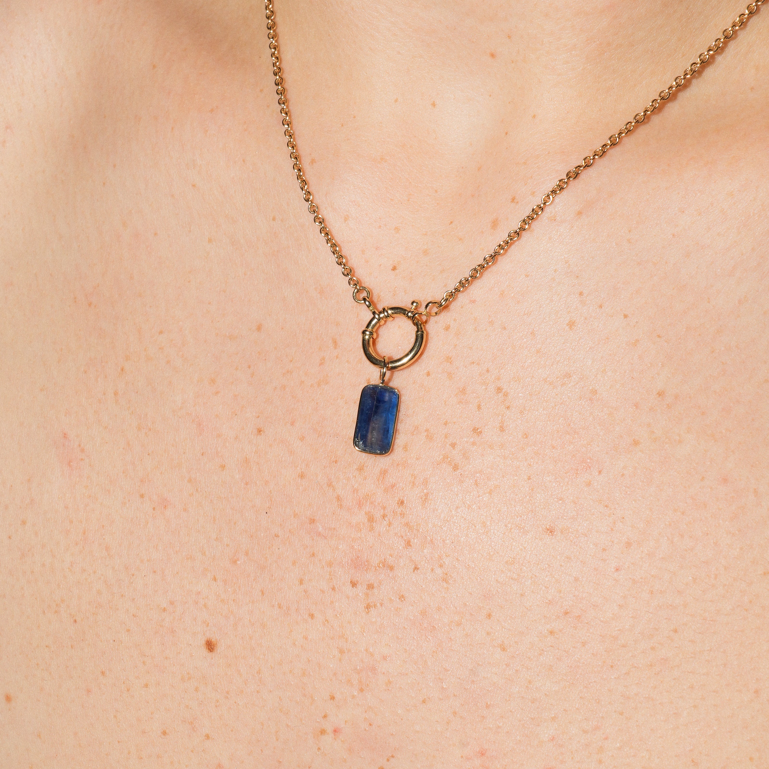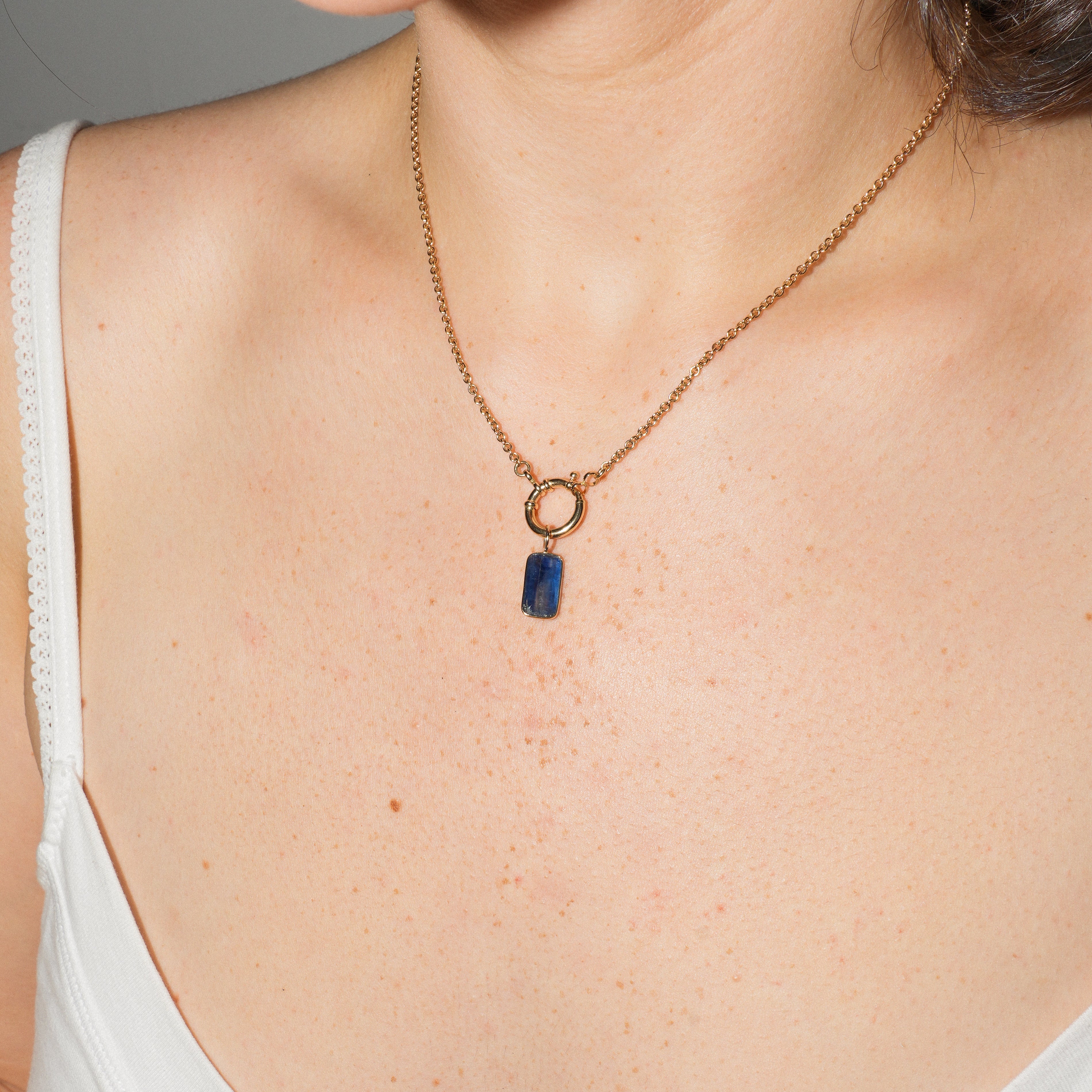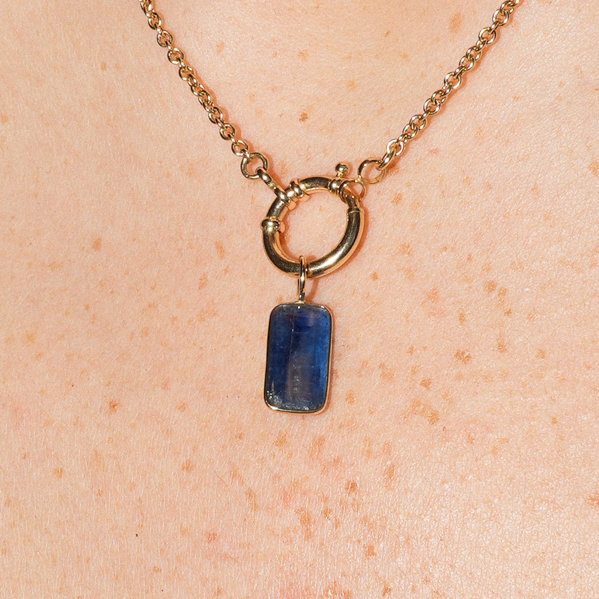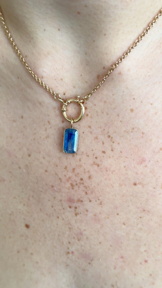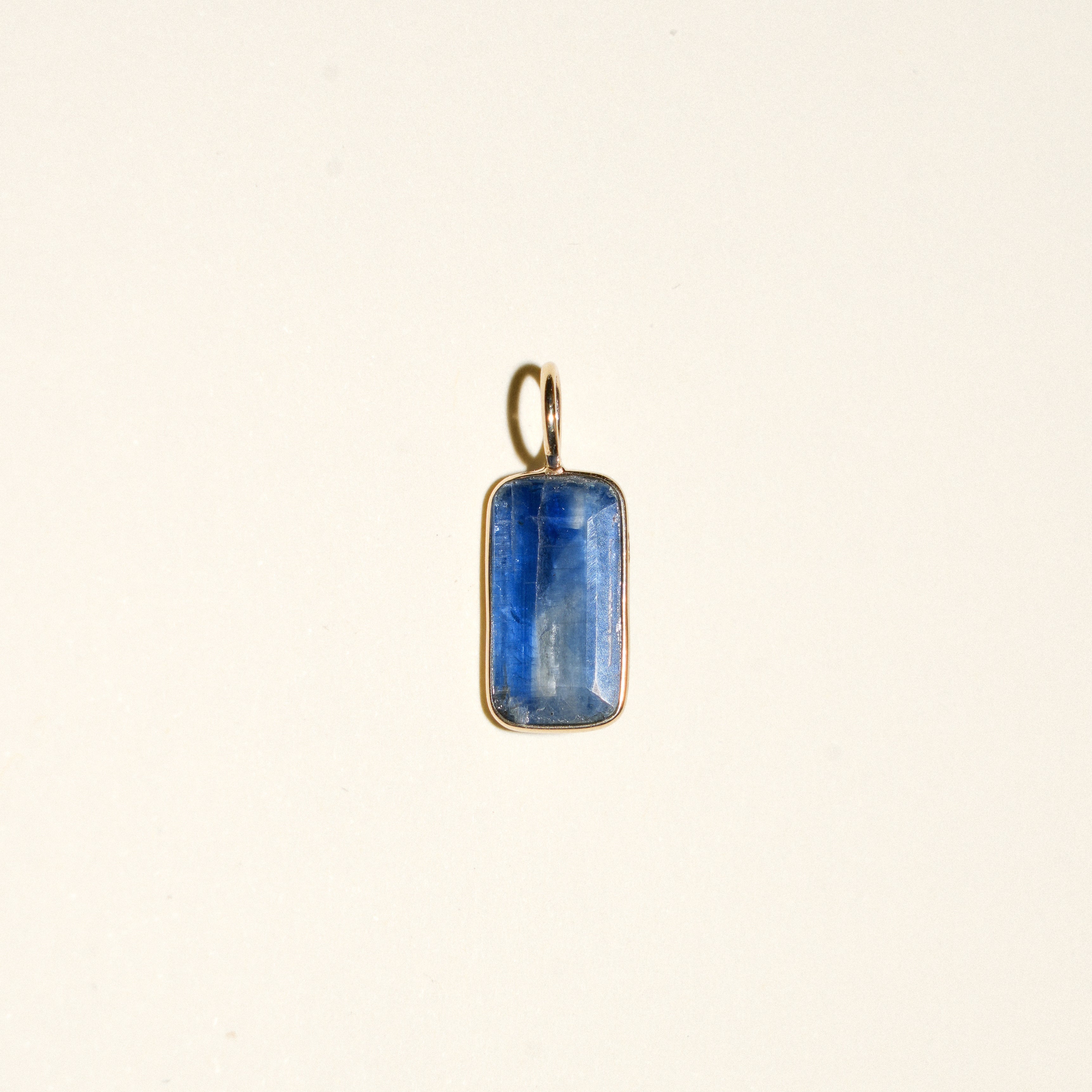 Blue Kyanite Emerald Cut Charm 2 in 14k Yellow Gold