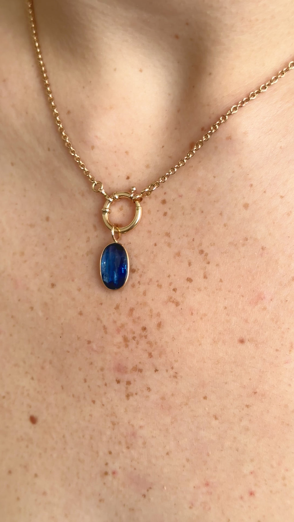 Blue Kyanite Oval Cut Charm in 14k Yellow Gold