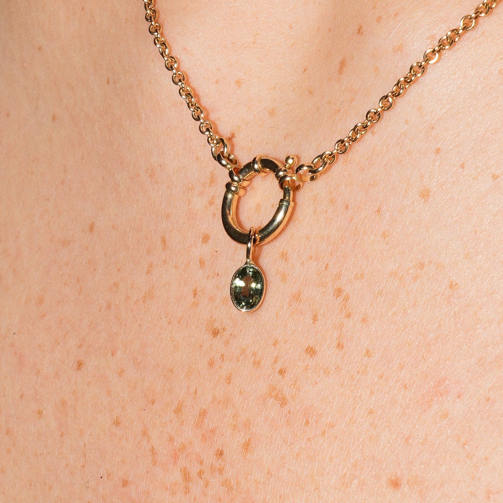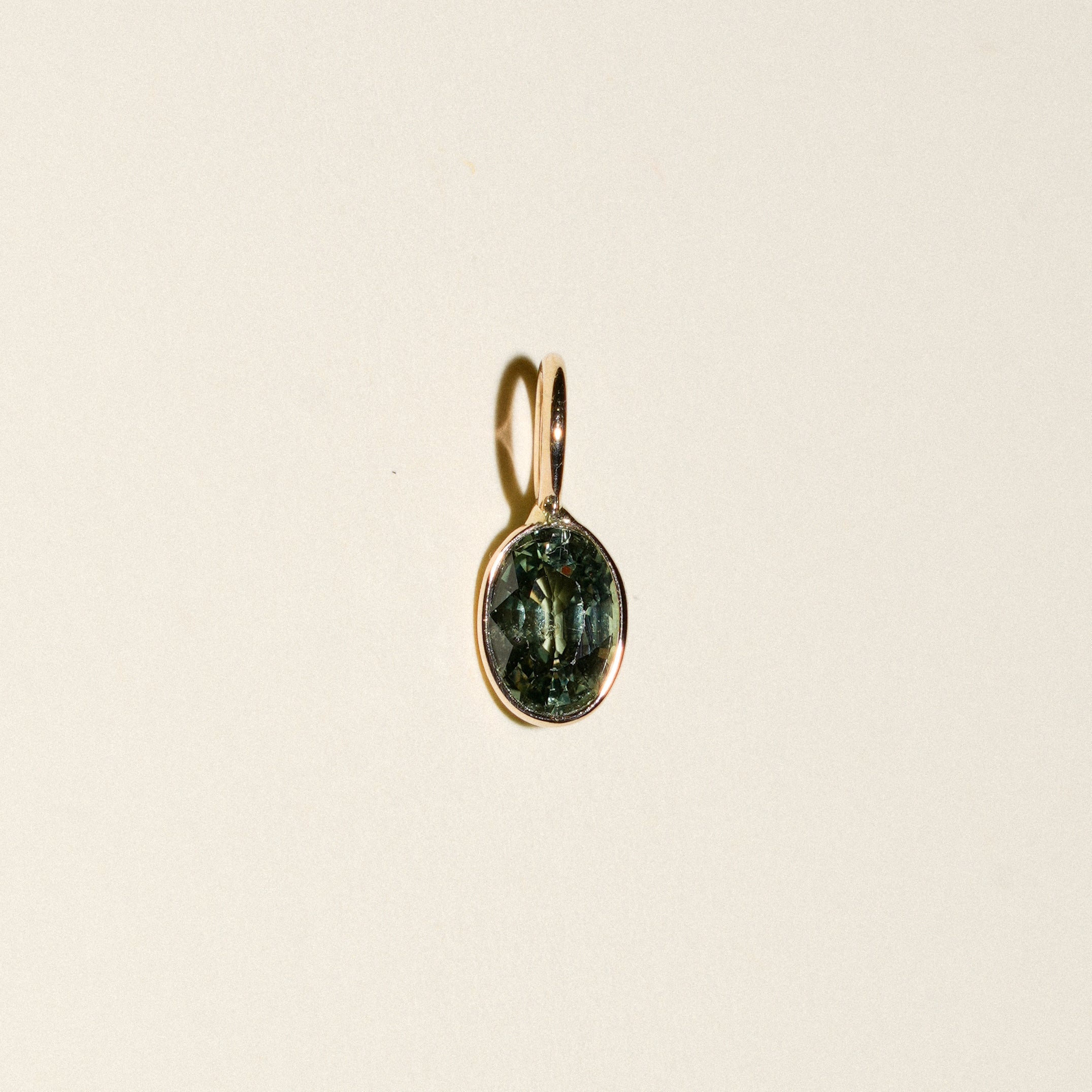 Cactus Green Sapphire Oval Cut Charm in Yellow 14k Gold