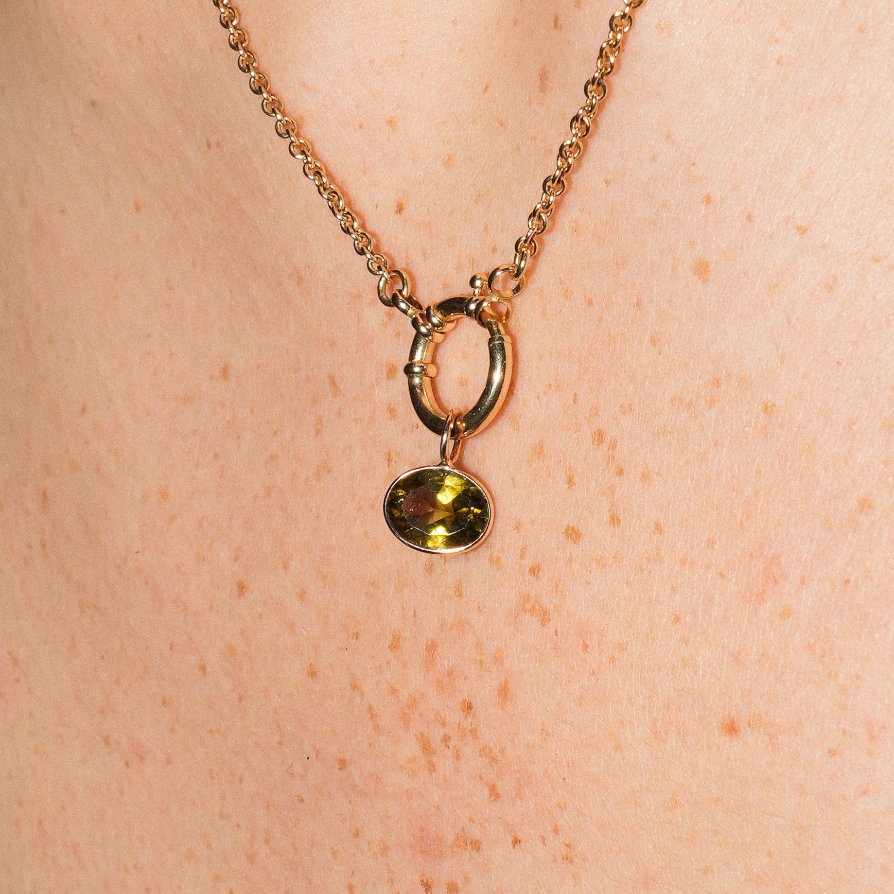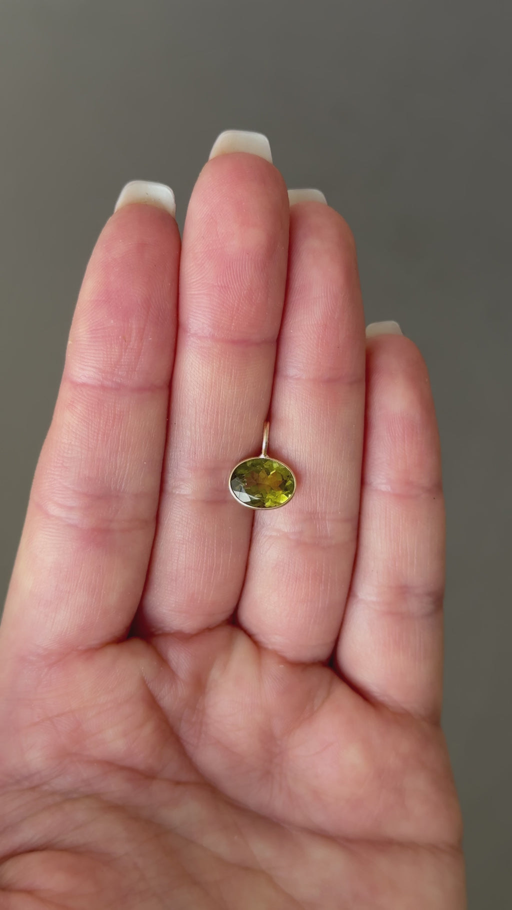 Golden Cypress Green Tourmaline East West Oval Cut Charm in Yellow 14k Gold